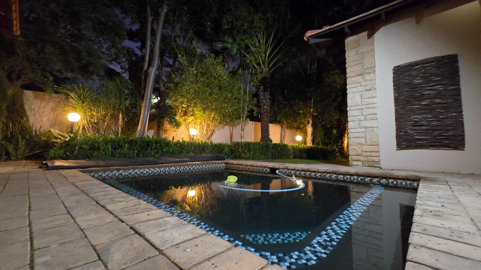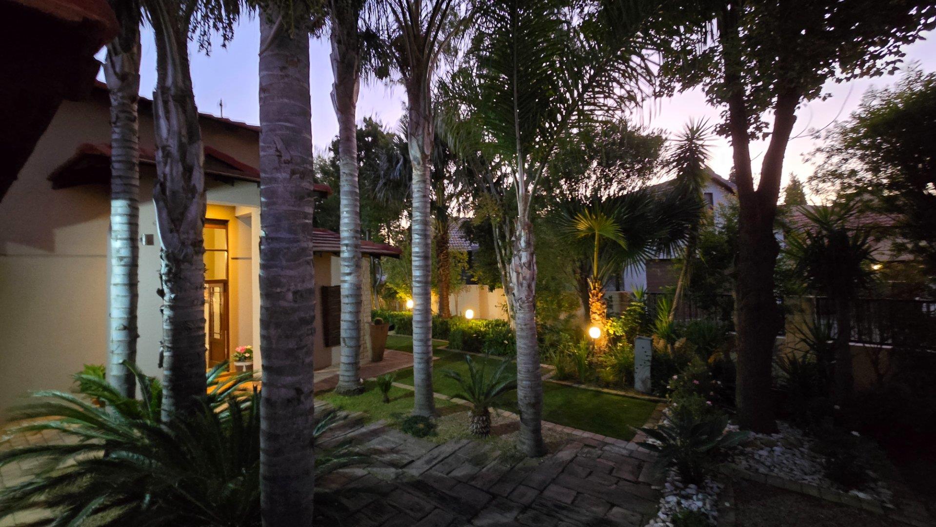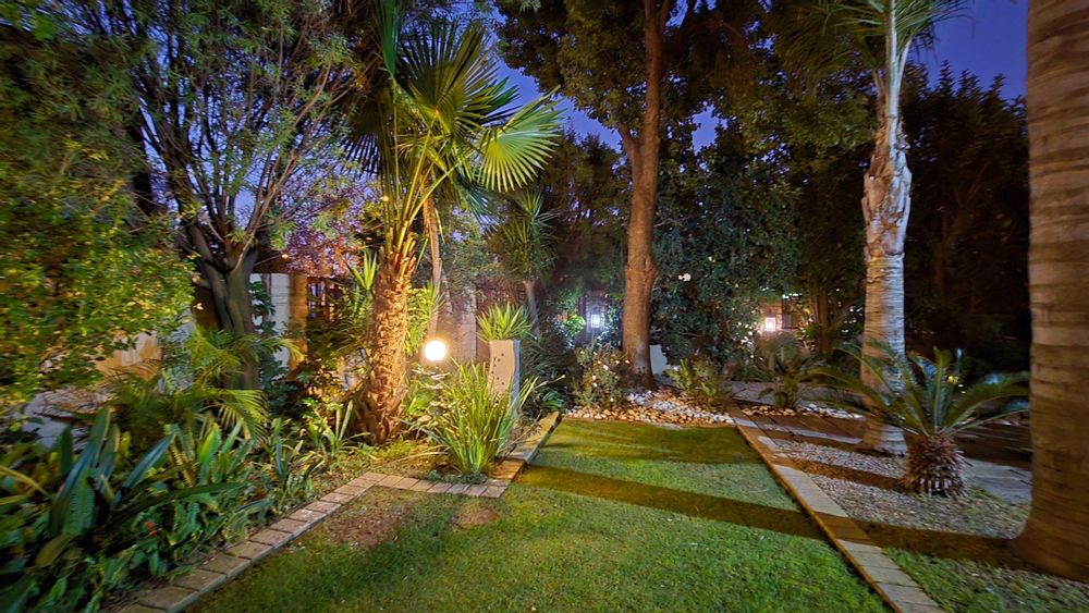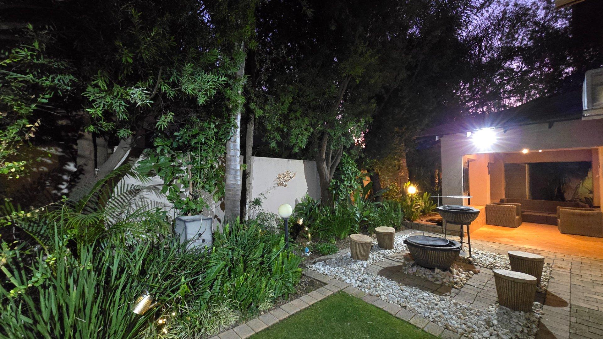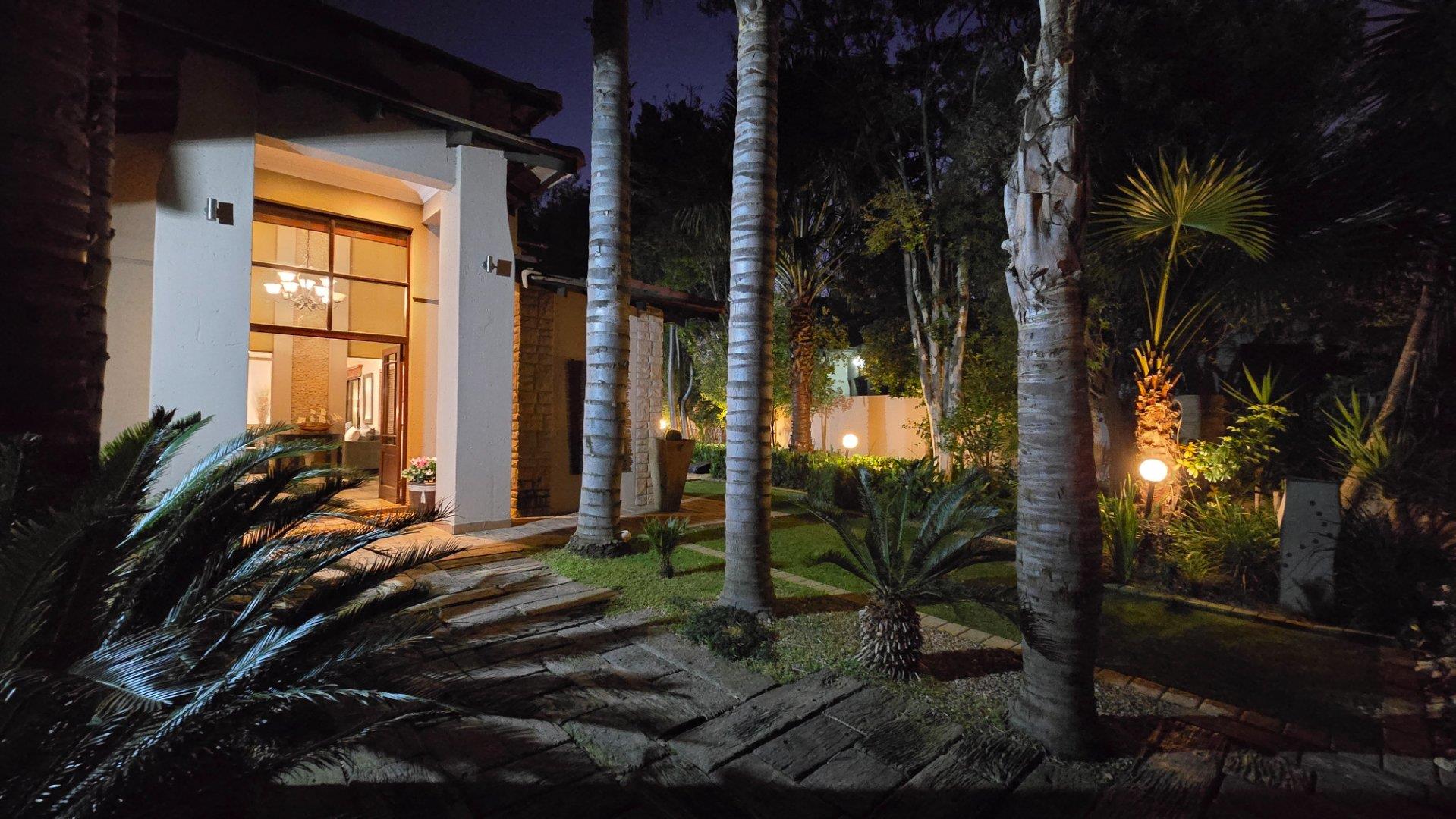 The private garden creates an authentic retreat feel, complete with palm trees and a black marblelite pool. An expansive outdoor entertainment area includes a boma and patio, both capable of being enclosed with awnings to suit all-weather enjoyment.