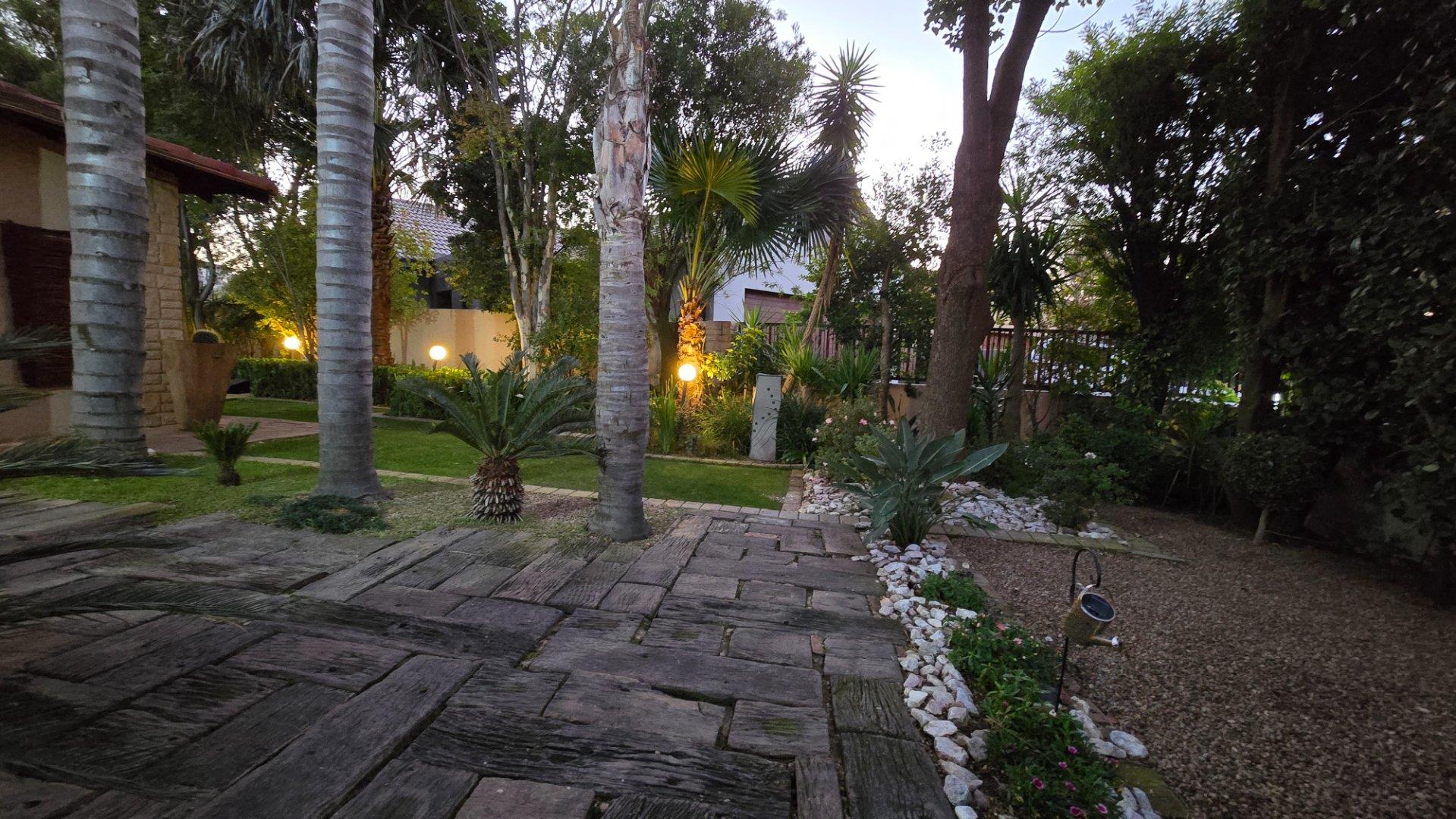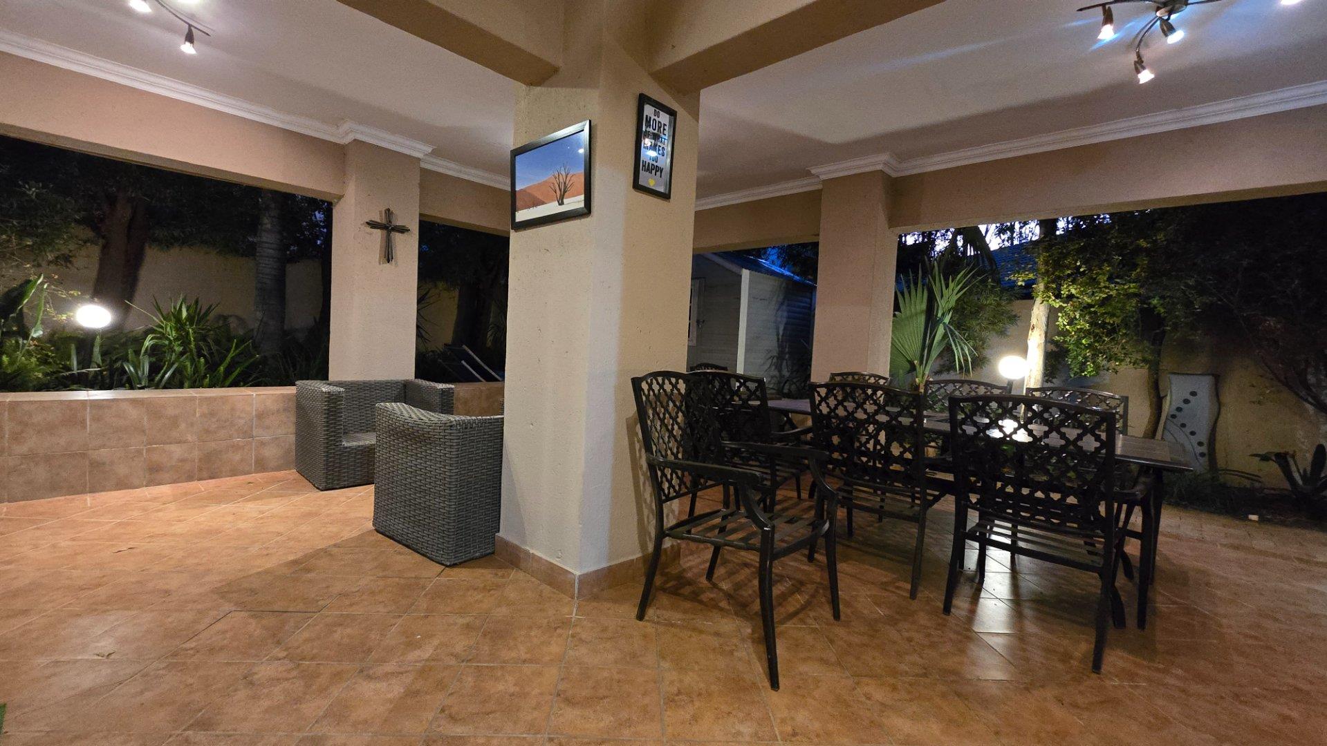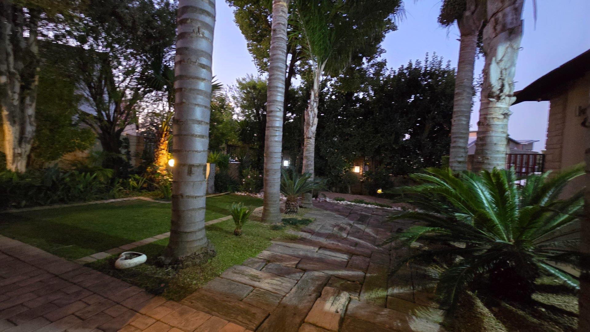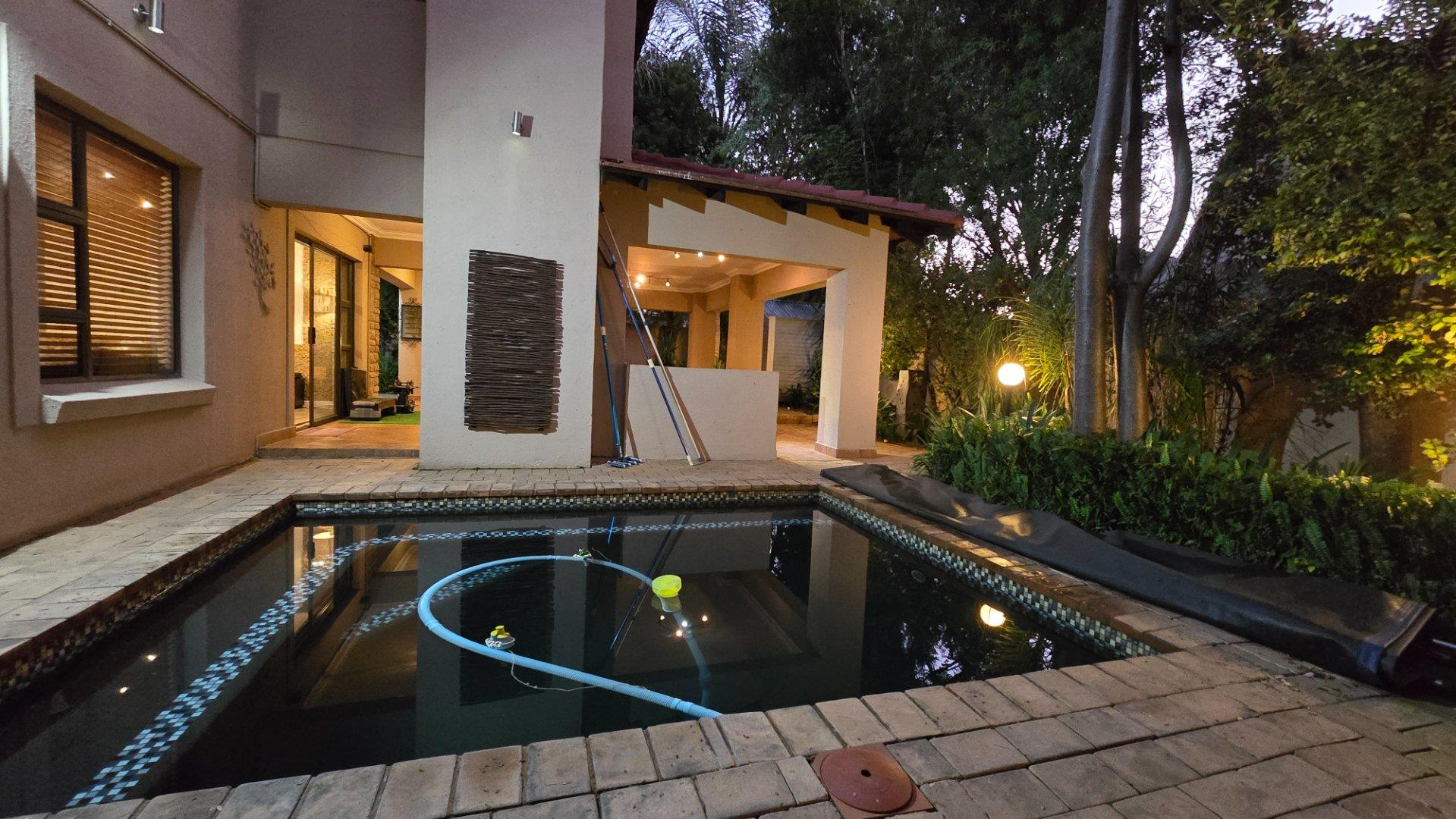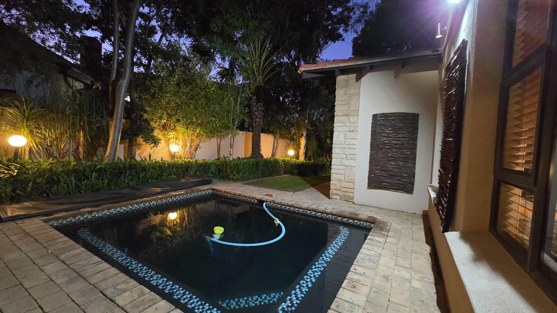 The private garden creates an authentic retreat feel, complete with palm trees and a black marblelite pool. An expansive outdoor entertainment area includes a boma and patio, both capable of being enclosed with awnings to suit all-weather enjoyment.