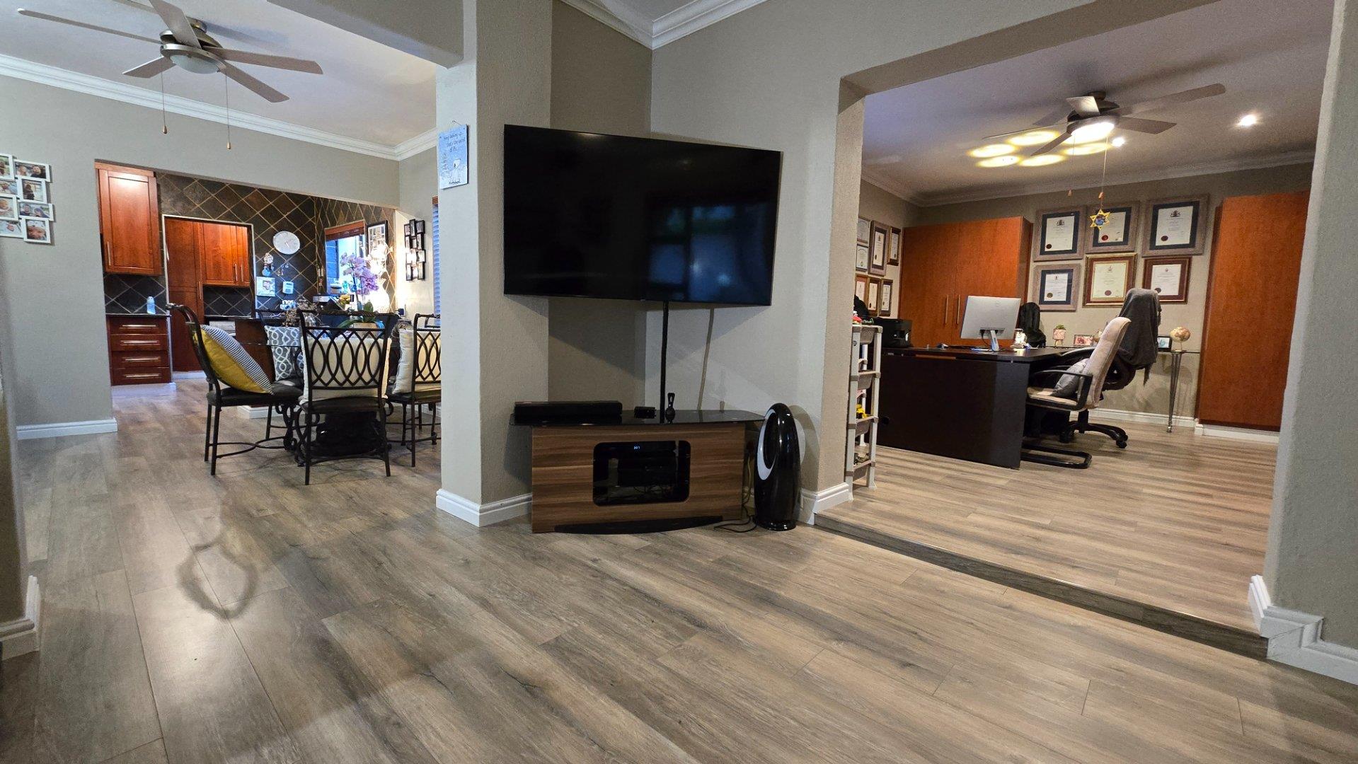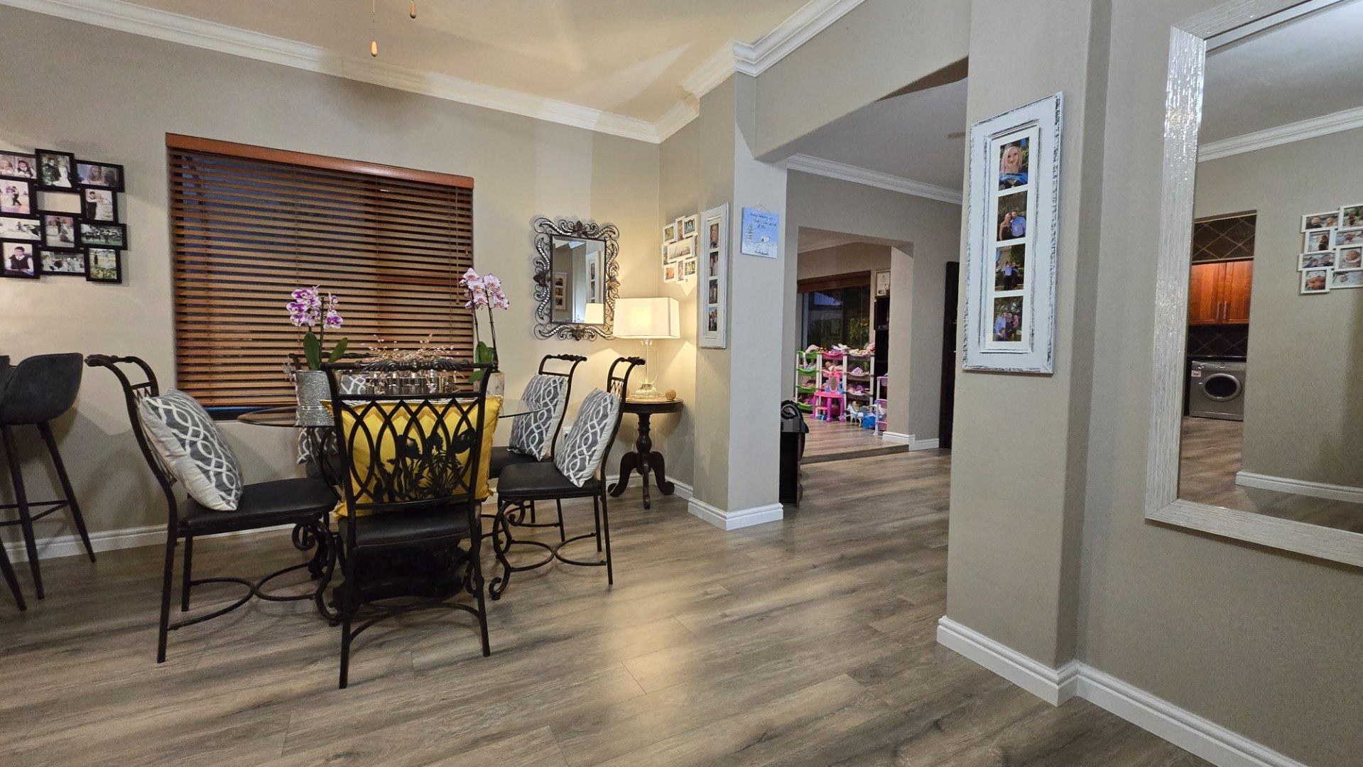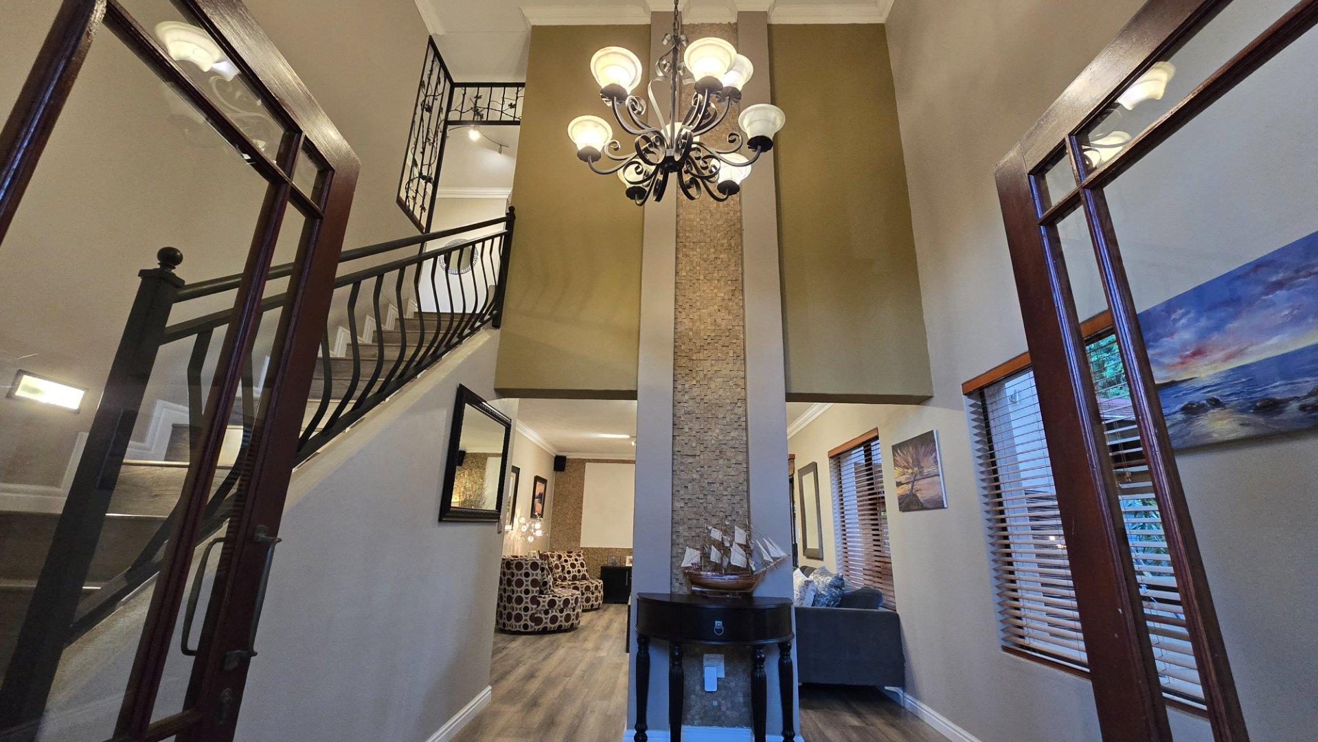 Step through the grand double-volume entrance into a spacious open-plan layout where the TV room flows seamlessly into the dining area and kitchen. The kitchen features elegant rosewood cabinetry and a generous pantry. The Warm white lighting enhances the inviting atmosphere, while a pajama lounge and office/study corner offer flexible lifestyle options