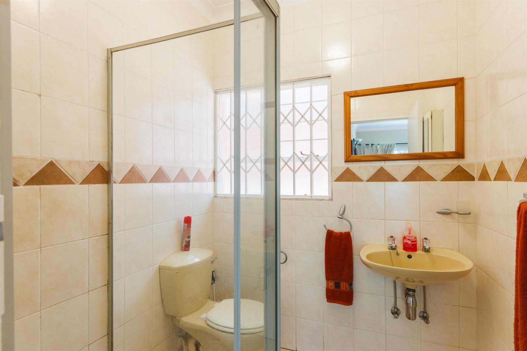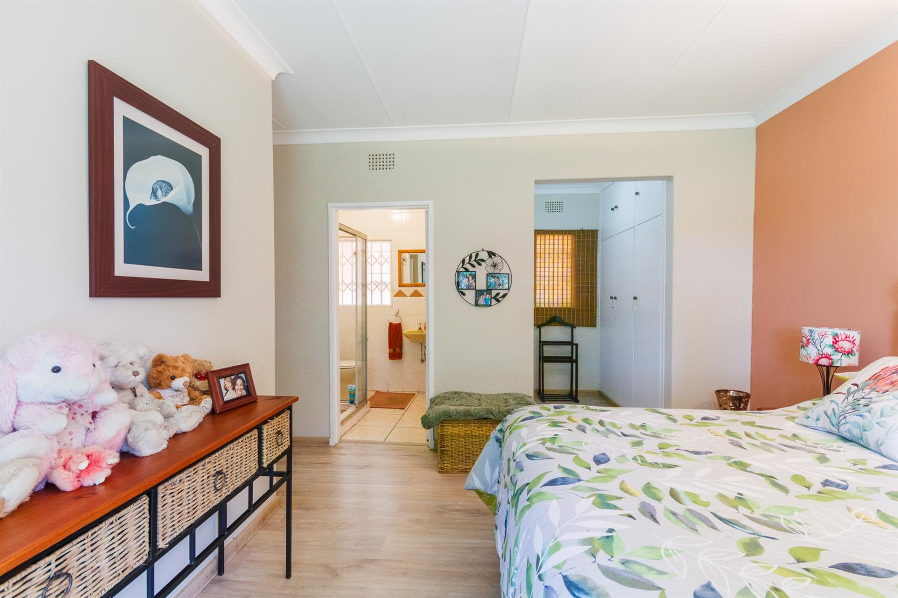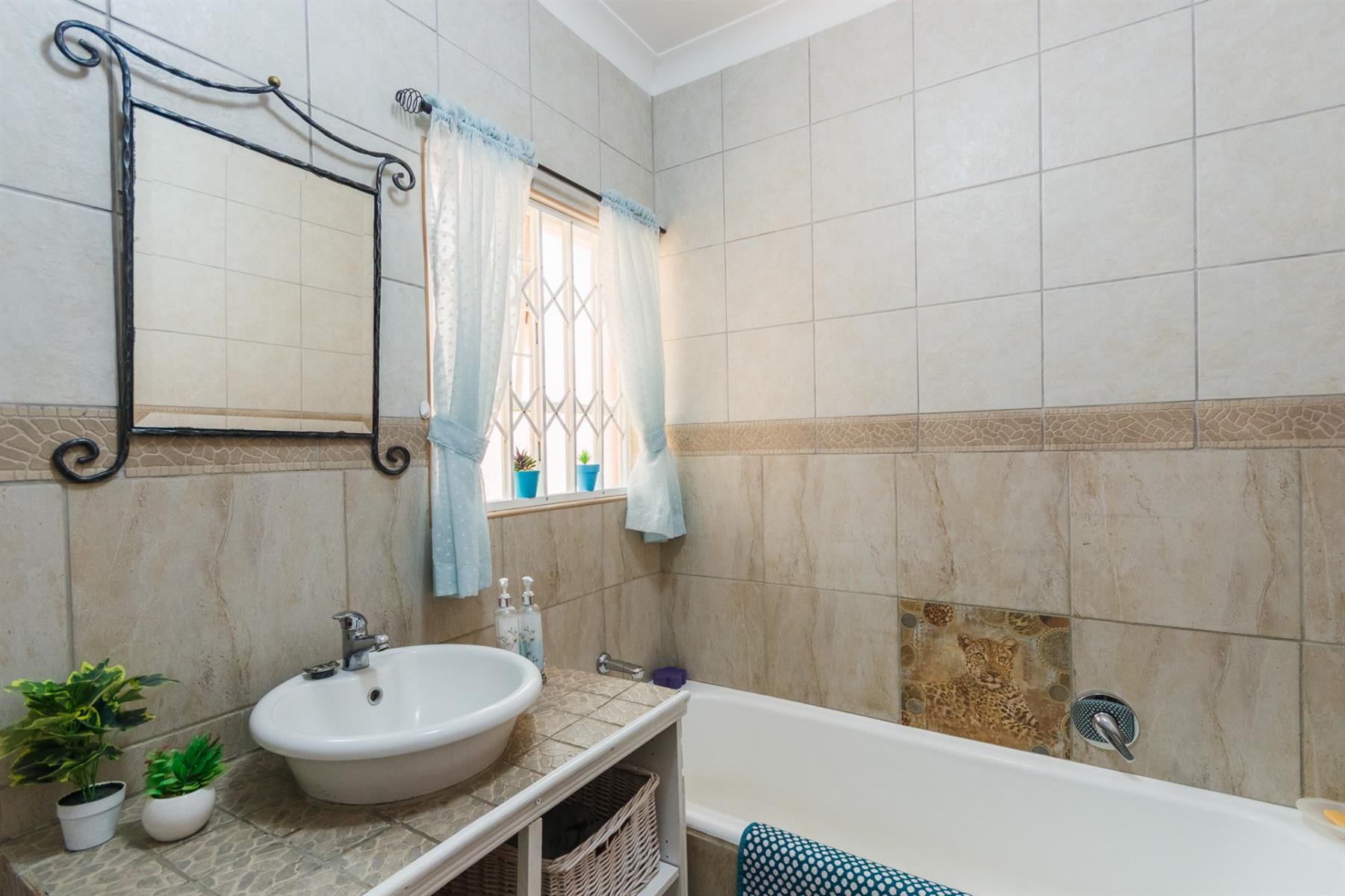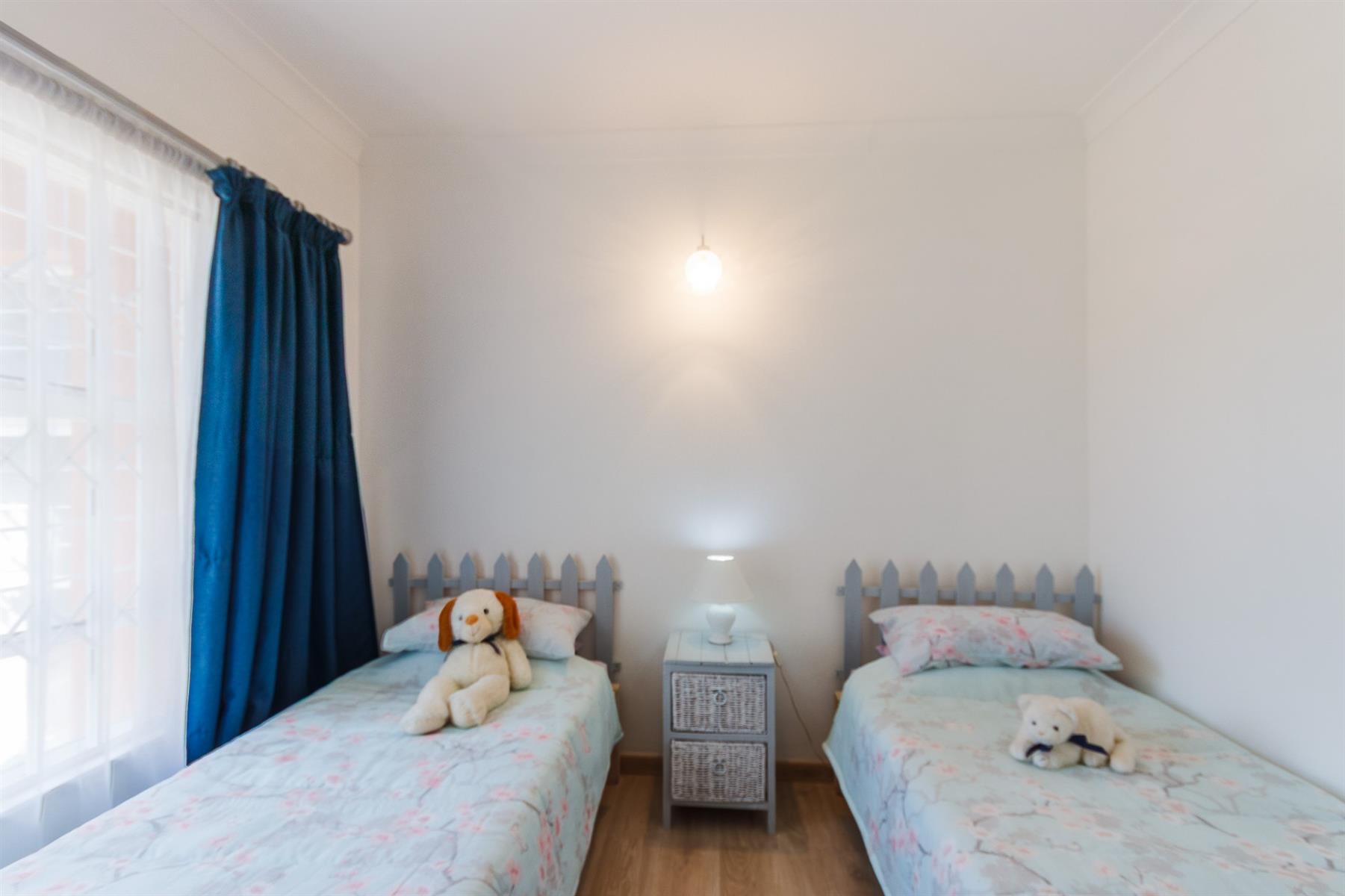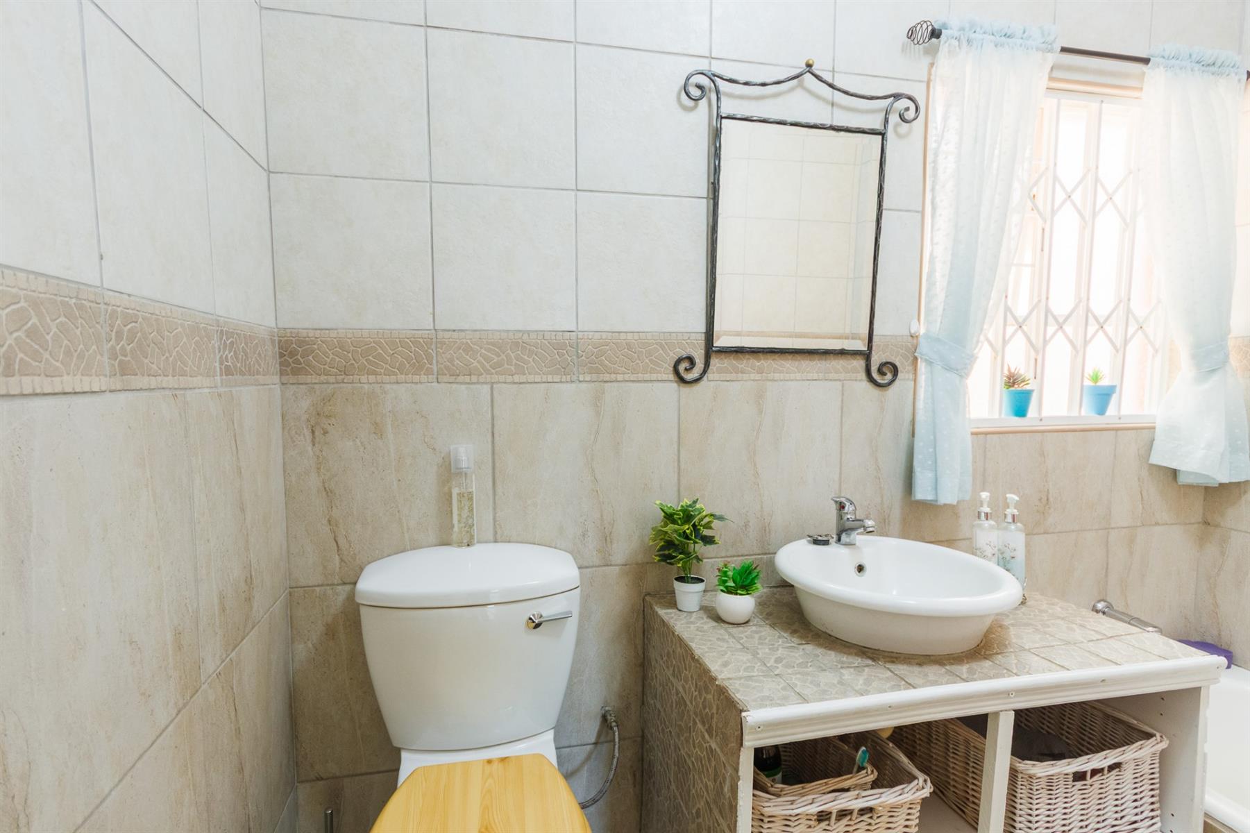 3 spacious bedrooms, each with ample light, the main bedroom with walk-in cupboards on both sides and en-suite bathroom with shower, toilet and basin.