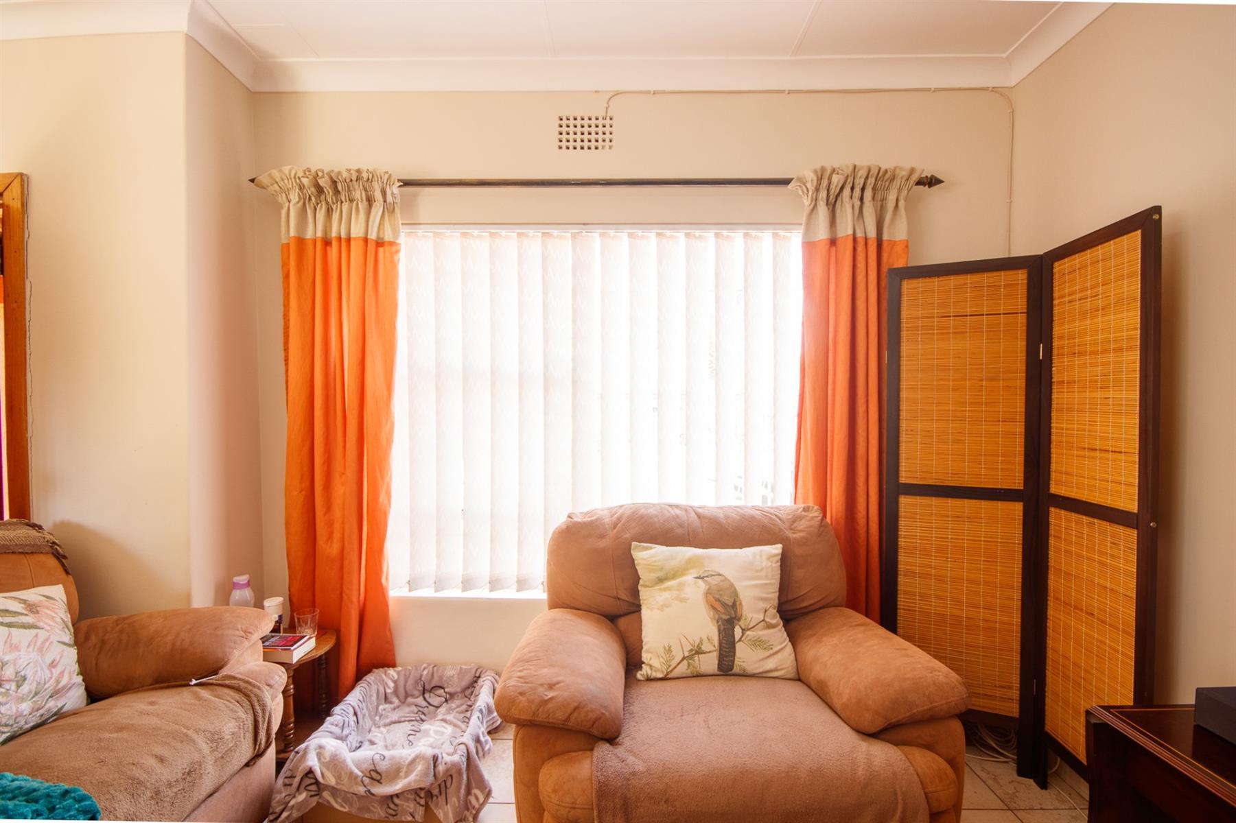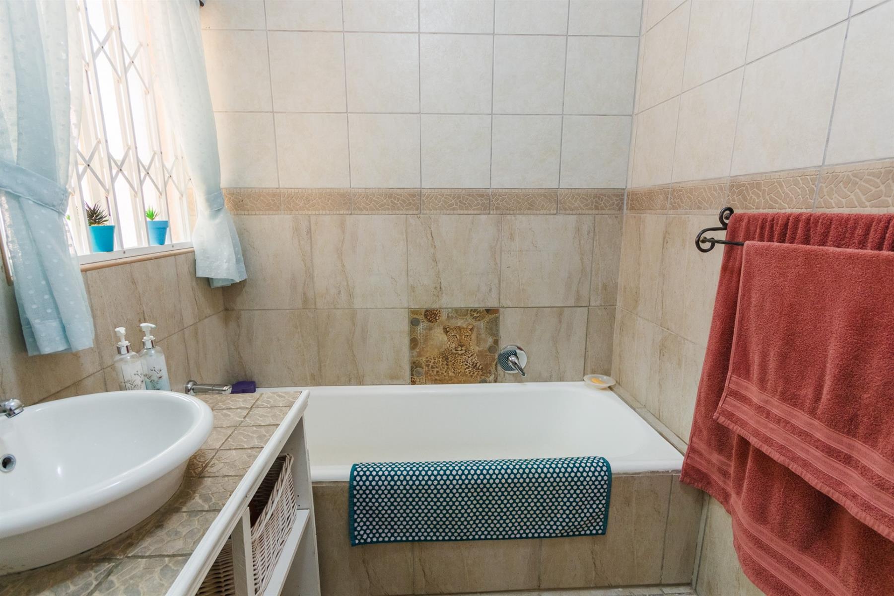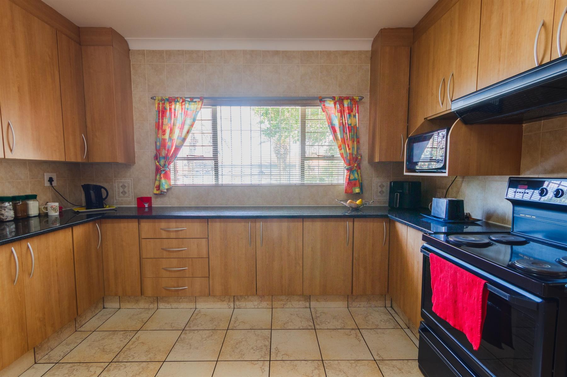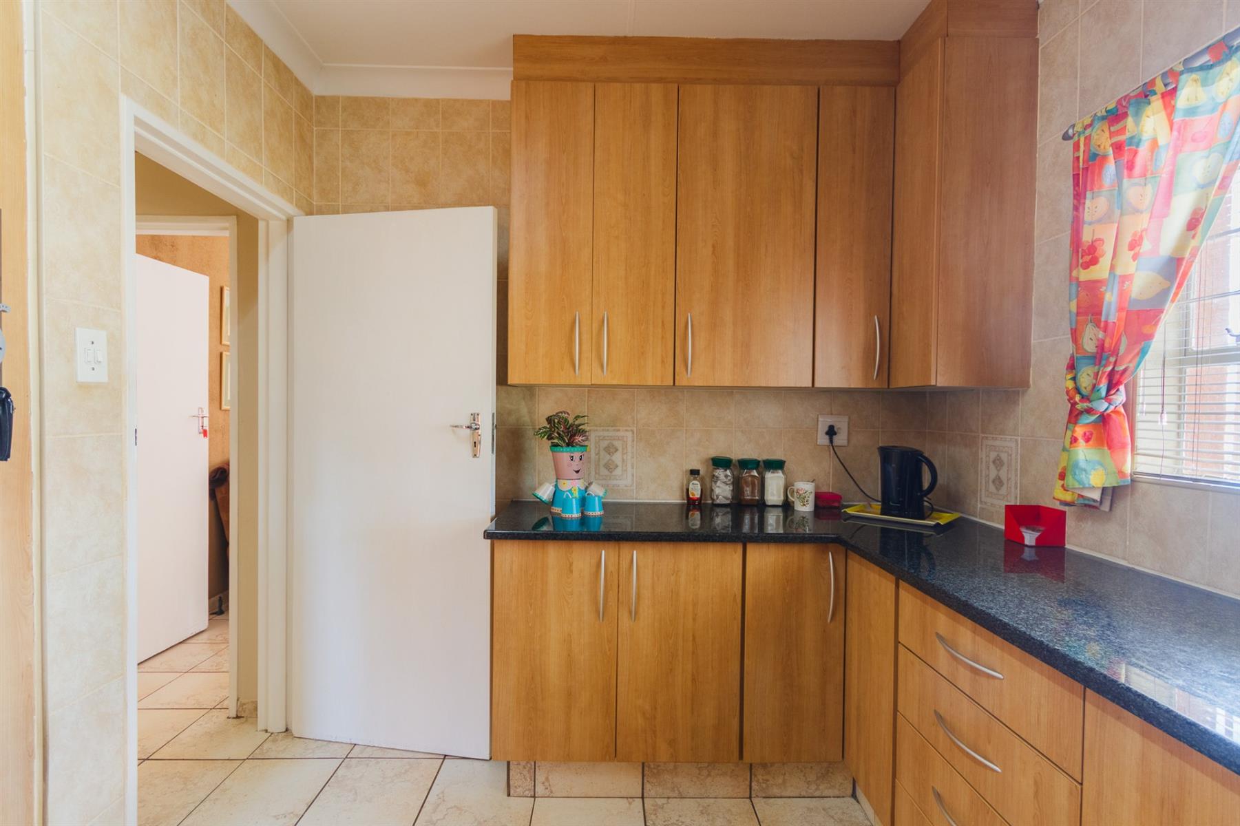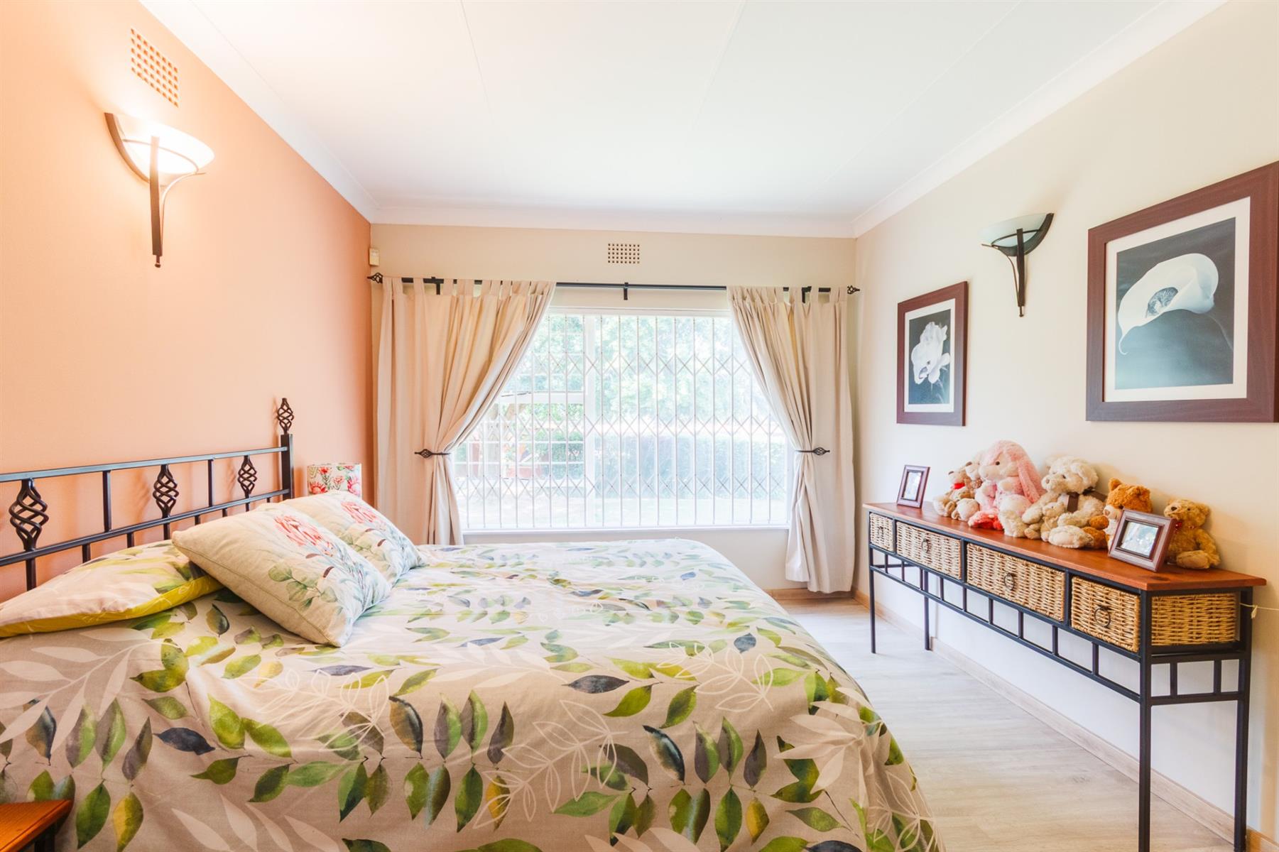 3 spacious bedrooms, each with ample light, the main bedroom with walk-in cupboards on both sides and en-suite bathroom with shower, toilet and basin.