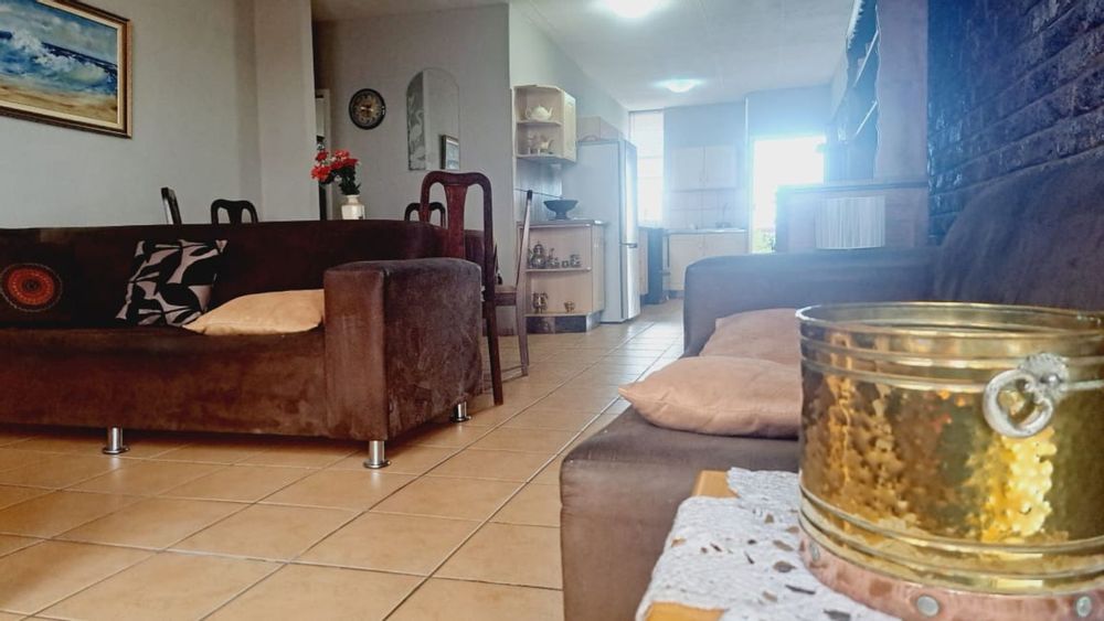 This neat 2-bedroom unit offers a full bath + separate toilet, garage, and access to a pool, braai area, and kids' play zone. Enjoy peace of mind with 24/7 security cameras. Close to schools, shops, and transport routes.