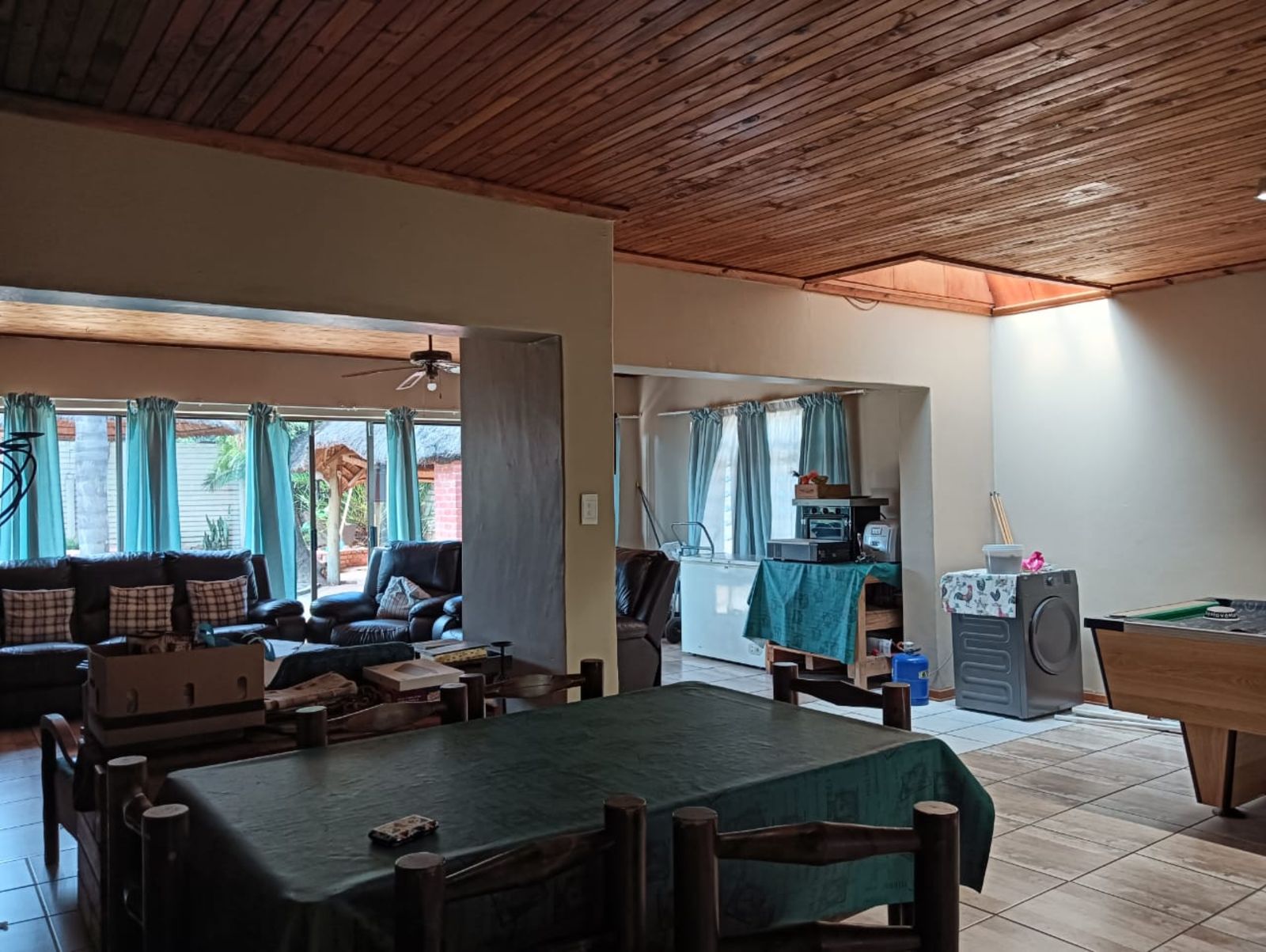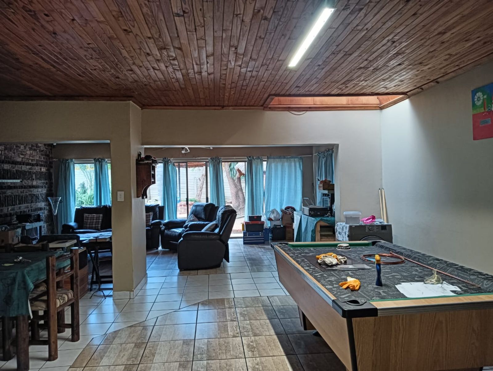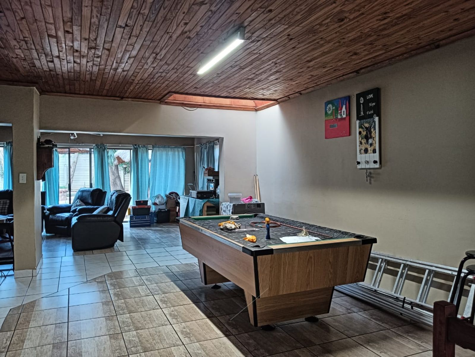 The property features a single garage that fits two cars, a carport for additional parking, and a borehole, ensuring a reliable water supply year-round. Outdoor living is a highlight, with a spacious lapa, a sparkling pool, and a built-in braai area, creating the perfect setting for hosting gatherings or simply relaxing.