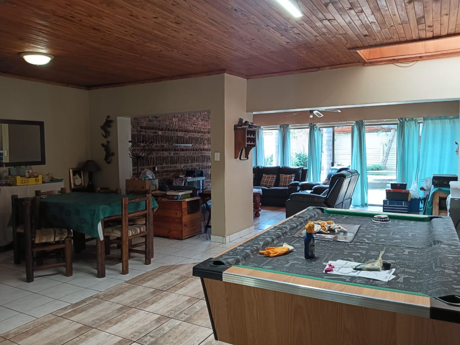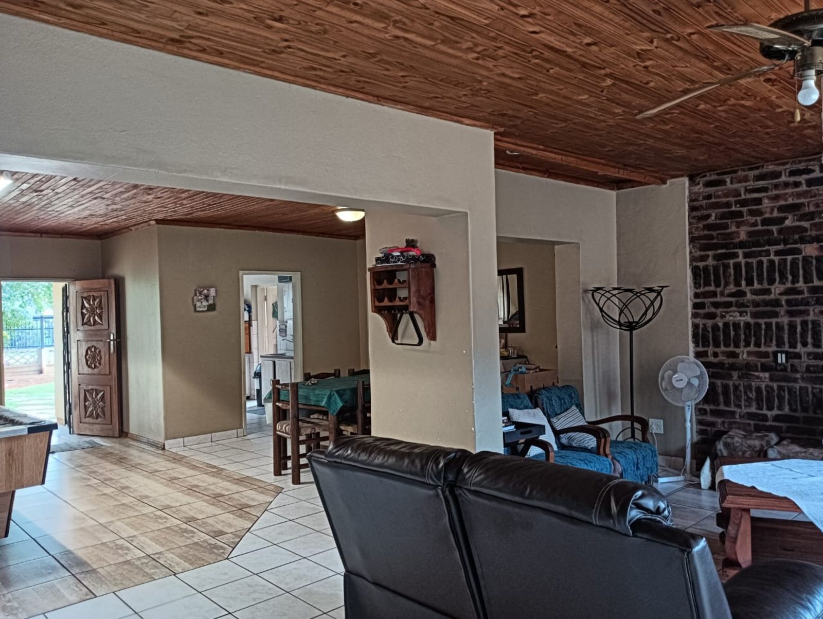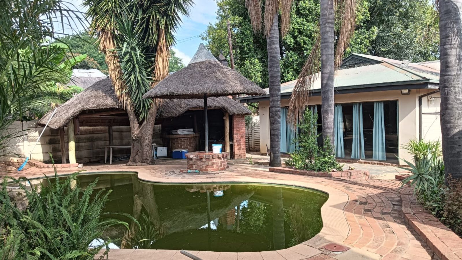 The property features a single garage that fits two cars, a carport for additional parking, and a borehole, ensuring a reliable water supply year-round. Outdoor living is a highlight, with a spacious lapa, a sparkling pool, and a built-in braai area, creating the perfect setting for hosting gatherings or simply relaxing.