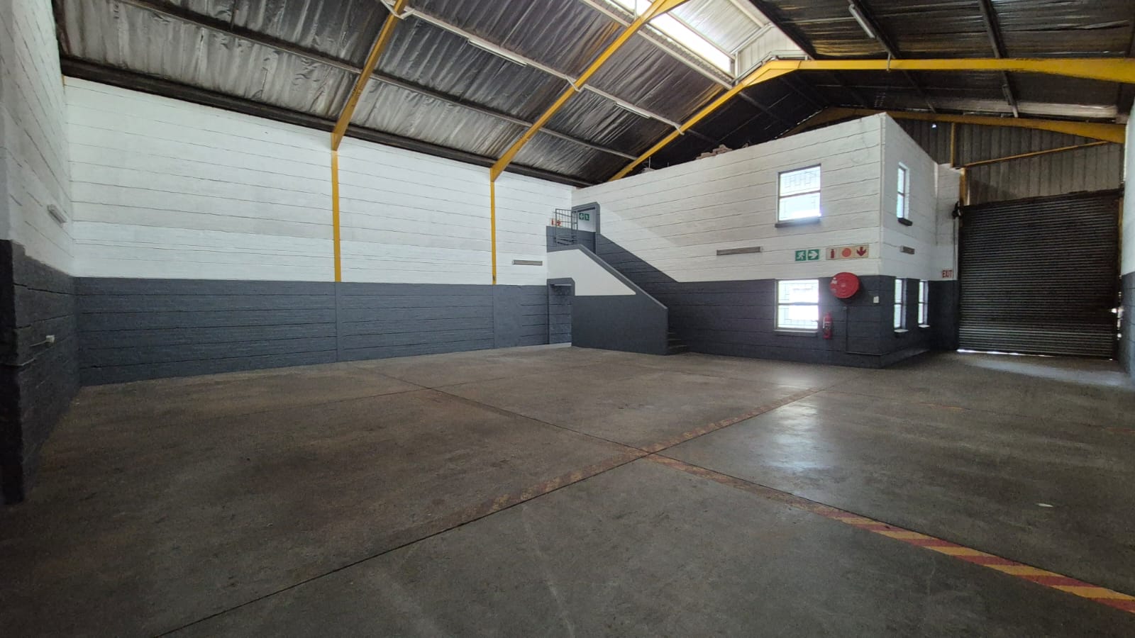 The warehouse boasts a generous 6-metre height and durable epoxy flooring, providing excellent capacity for racking or production activities. A roller shutter door allows for seamless loading and dispatch, while 60 Amp three-phase power comfortably supports light industrial requirements.