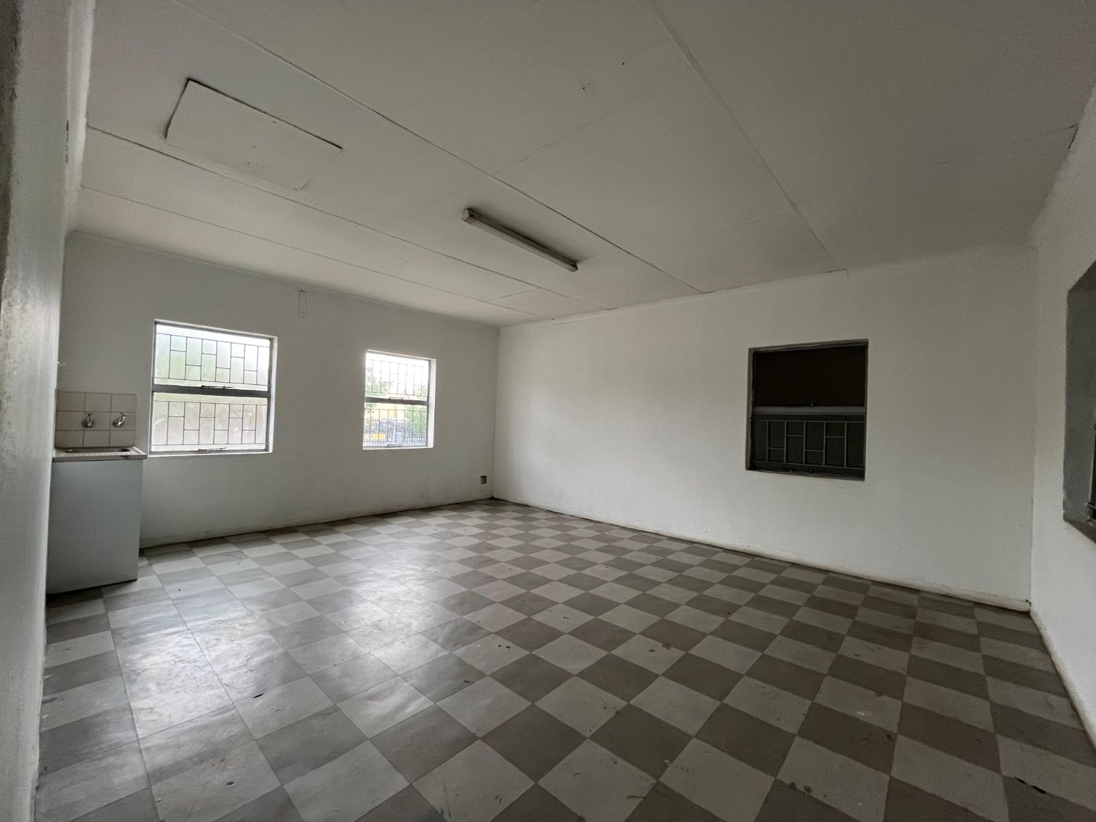 The office section includes a welcoming reception area, two private offices, a kitchen, and neat ablution facilities. Modern finishes, ample windows, and natural lighting create a clean and professional environment throughout.