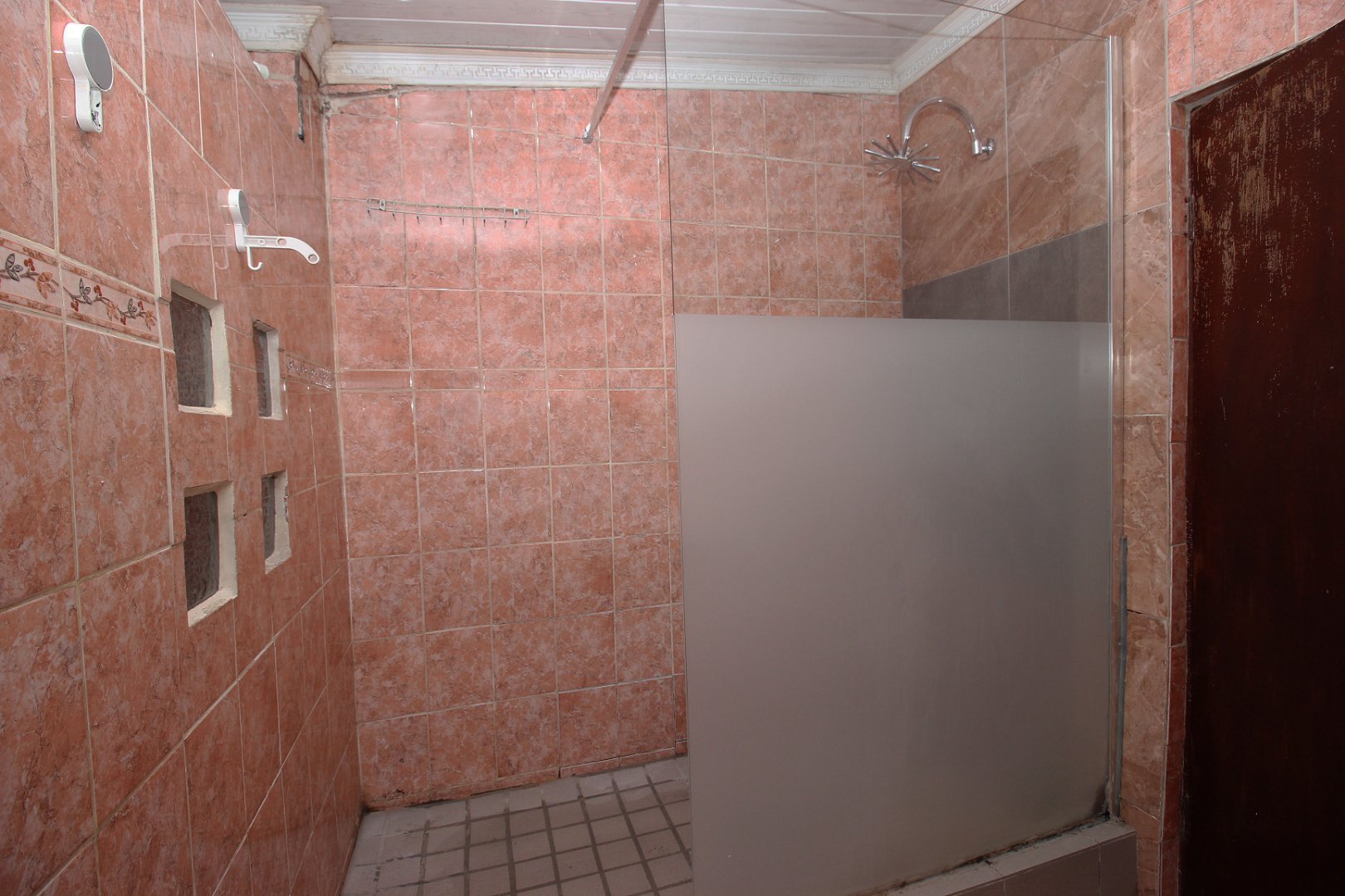 Modern Bathroom: Fully tiled with shower, toilet and basin, providing a sleek and functional space.