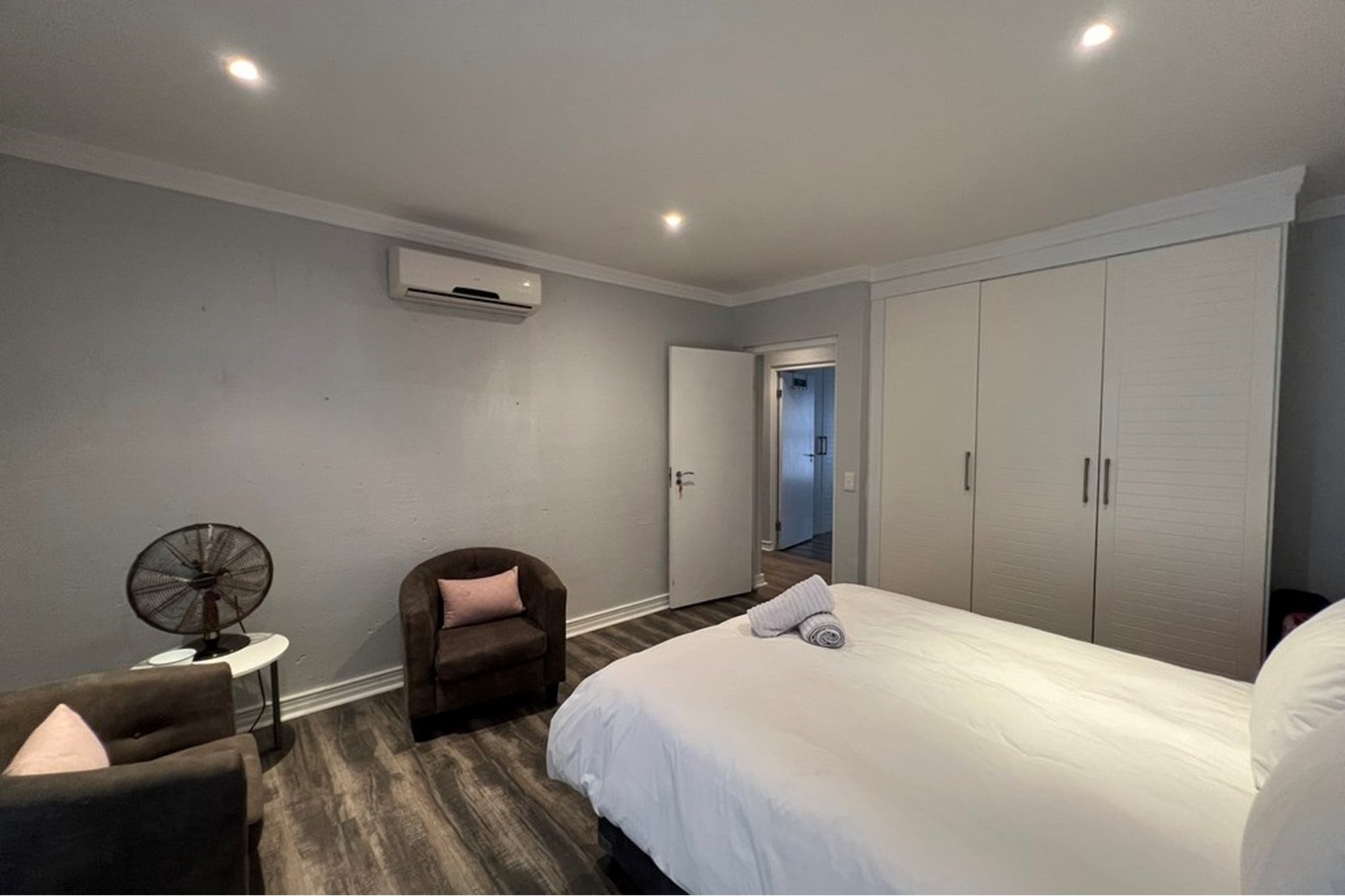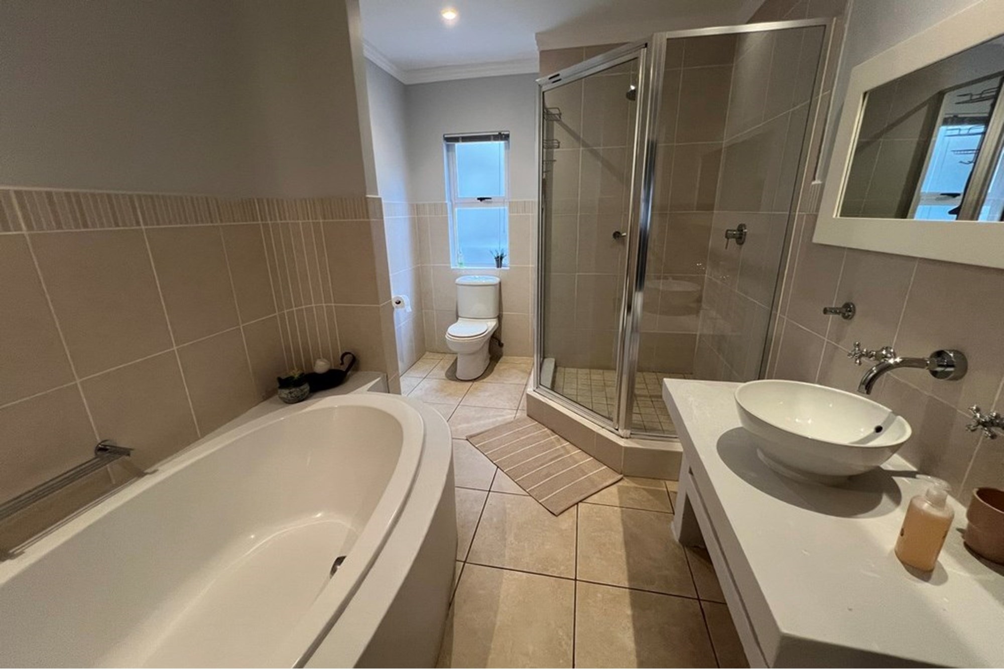 The apartment boasts a well-designed layout, featuring a generously sized main bedroom complete with an en-suite bathroom for added privacy and convenience. The two additional bedrooms share a tastefully appointed bathroom, offering both functionality and comfort.