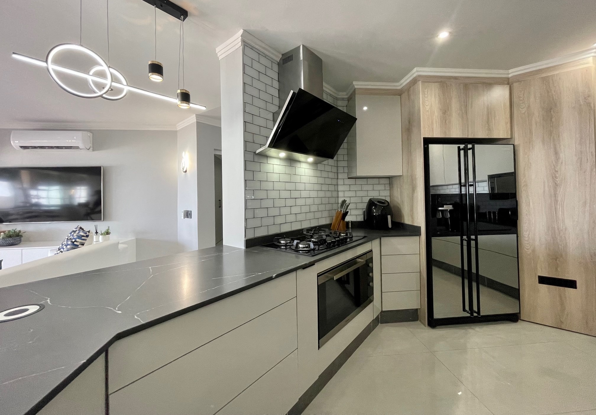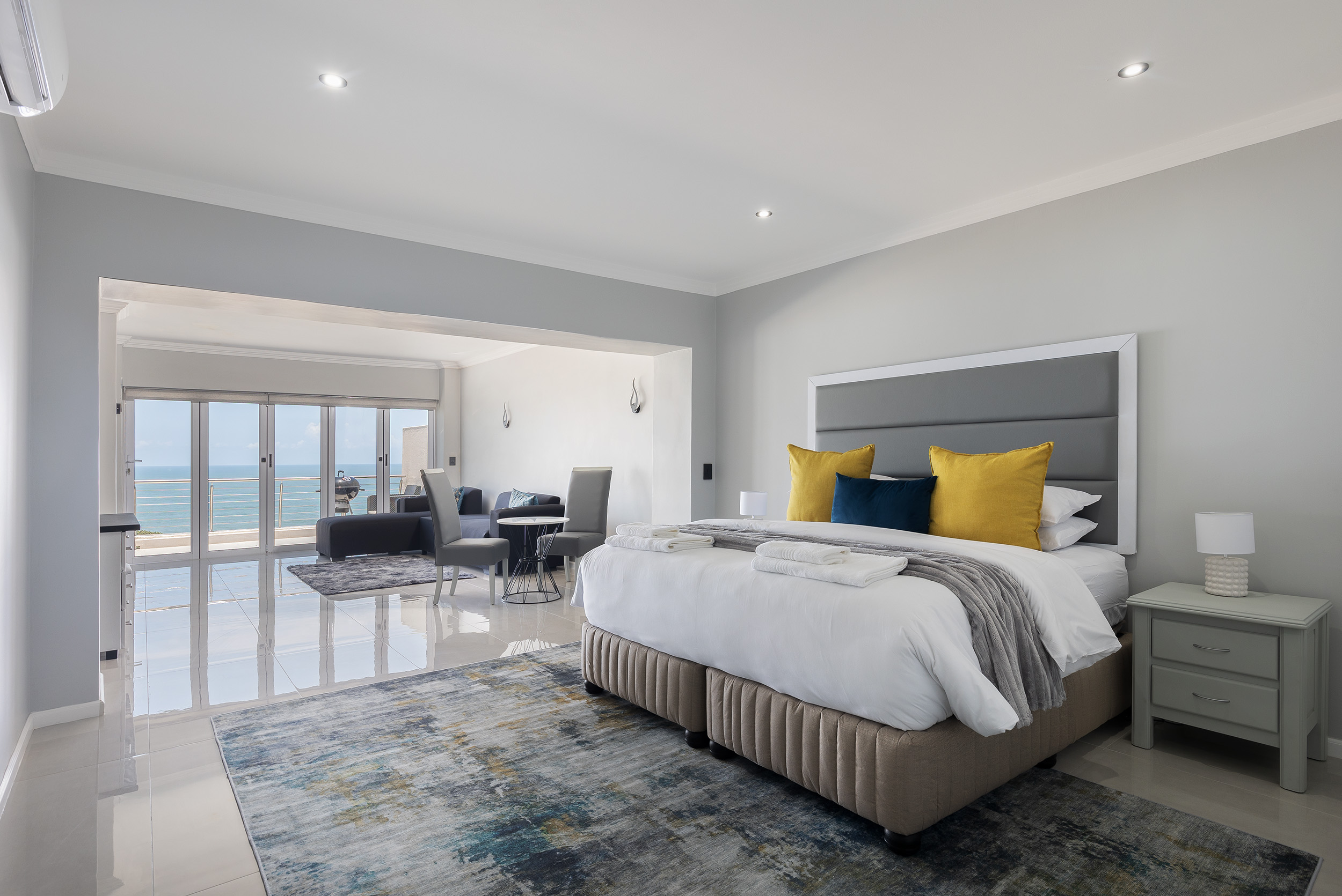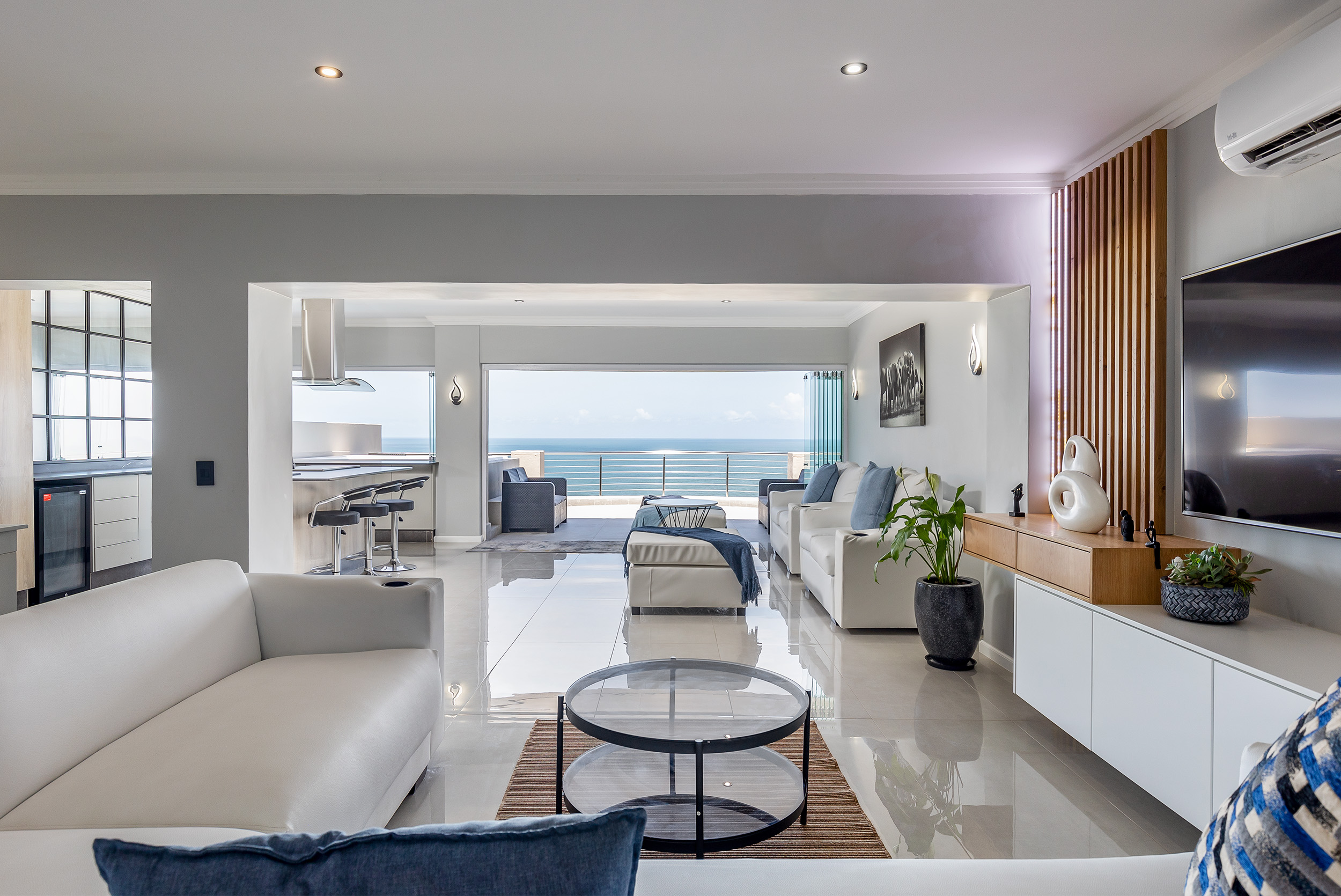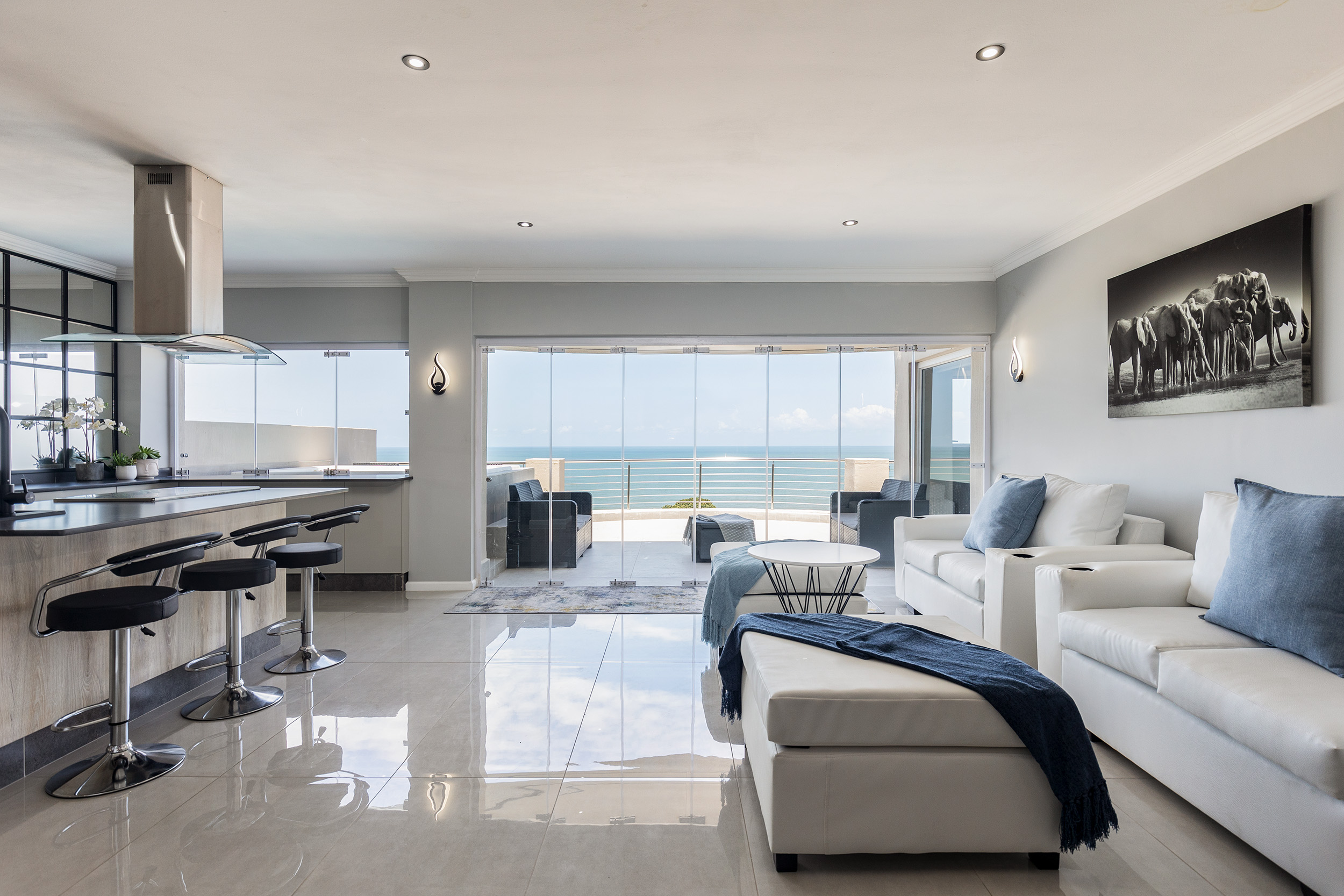 Whether you're entertaining guests or enjoying a quiet morning alone, the enclosed balcony becomes an extension of the living space, the magnificent built in bar/island has a gas braai and extractor fan all of this offers a perfect setting for alfresco dining or simply sipping your morning cup of coffee while witnessing the breathtaking sunrise. This apartment is more than just a residence; it's a lifestyle that seamlessly blends modern elegance with the serenity of its coastal location.