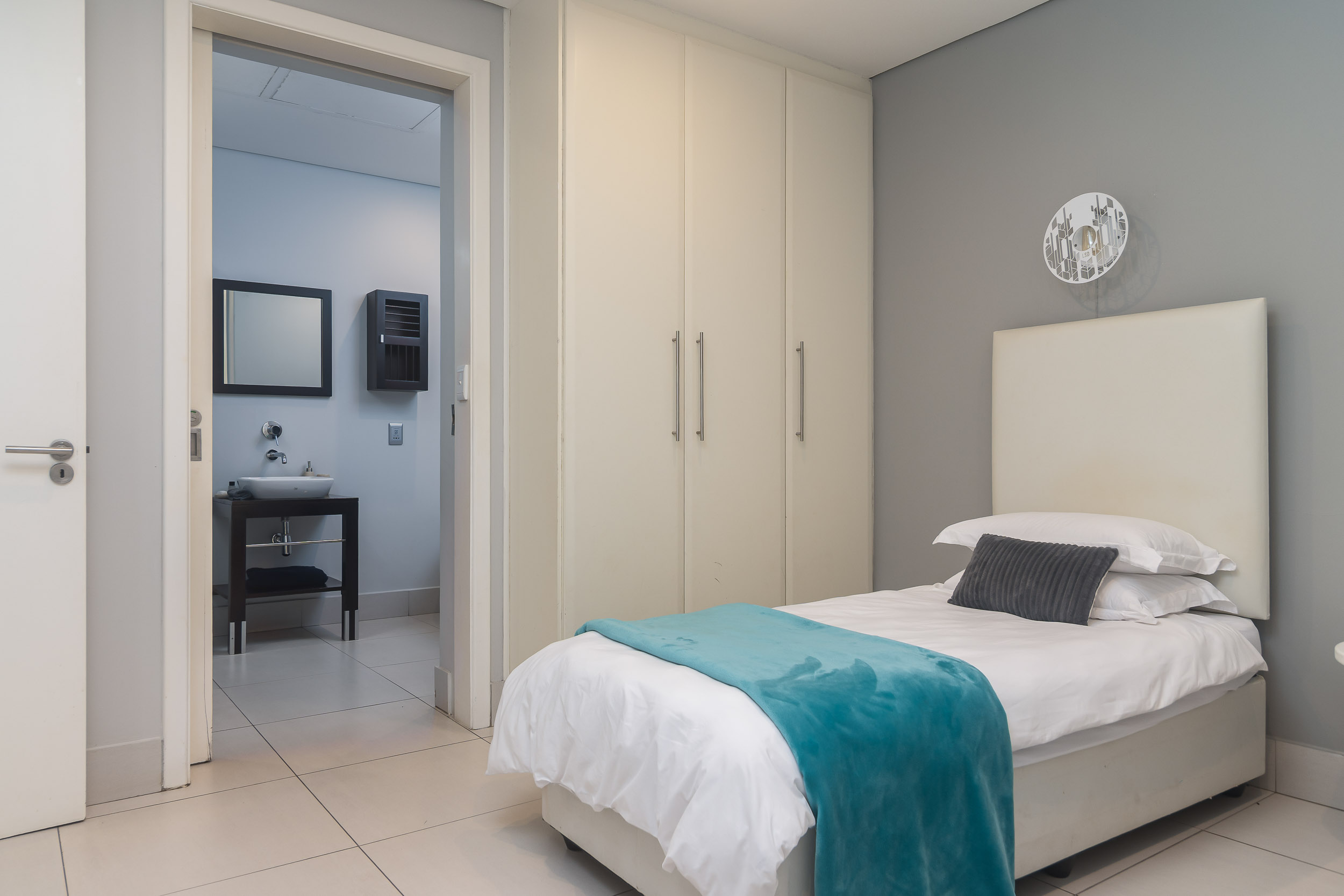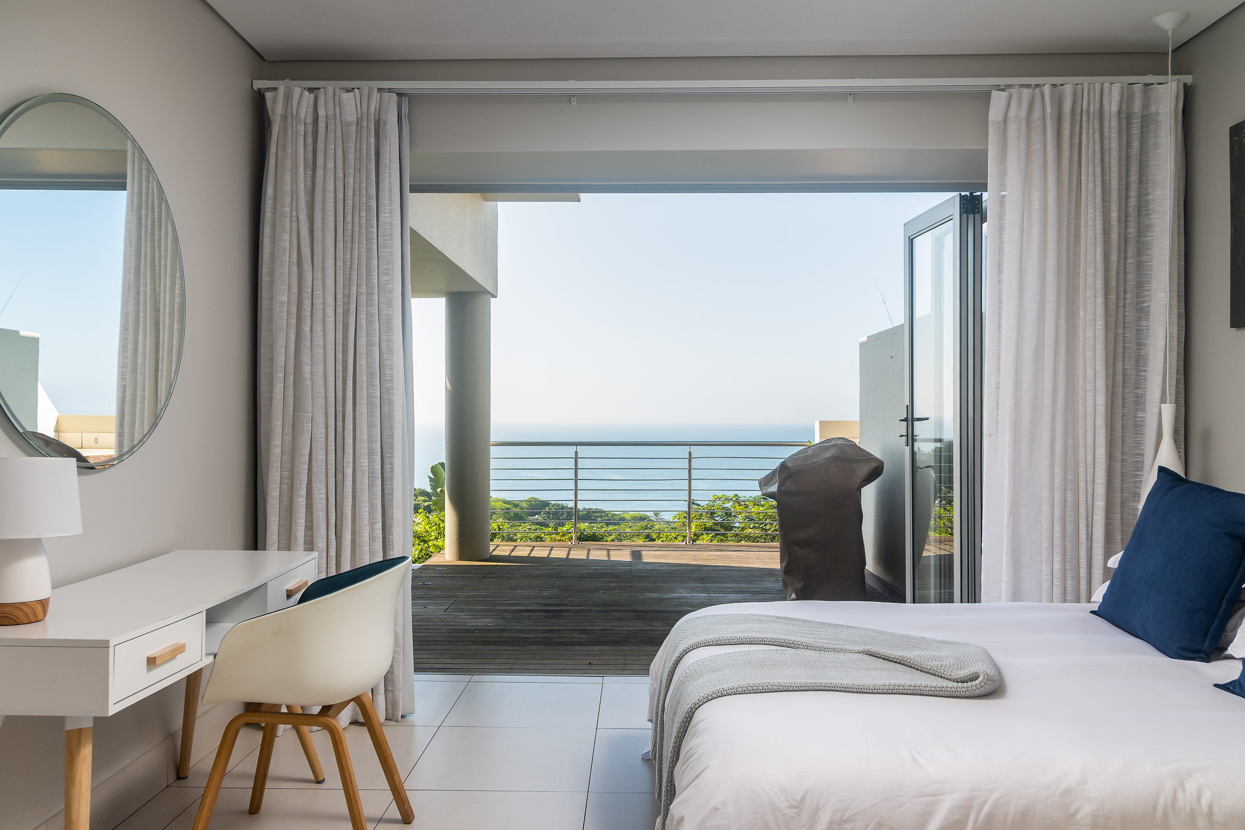 This unique 3-bedroom, all en-suite unit is the only ground-floor apartment with its own private garden, making it pet-friendly—a rare gem in this serene estate. Enjoy breathtaking sea views over a lush greenbelt, creating a tranquil, picturesque backdrop for daily living.