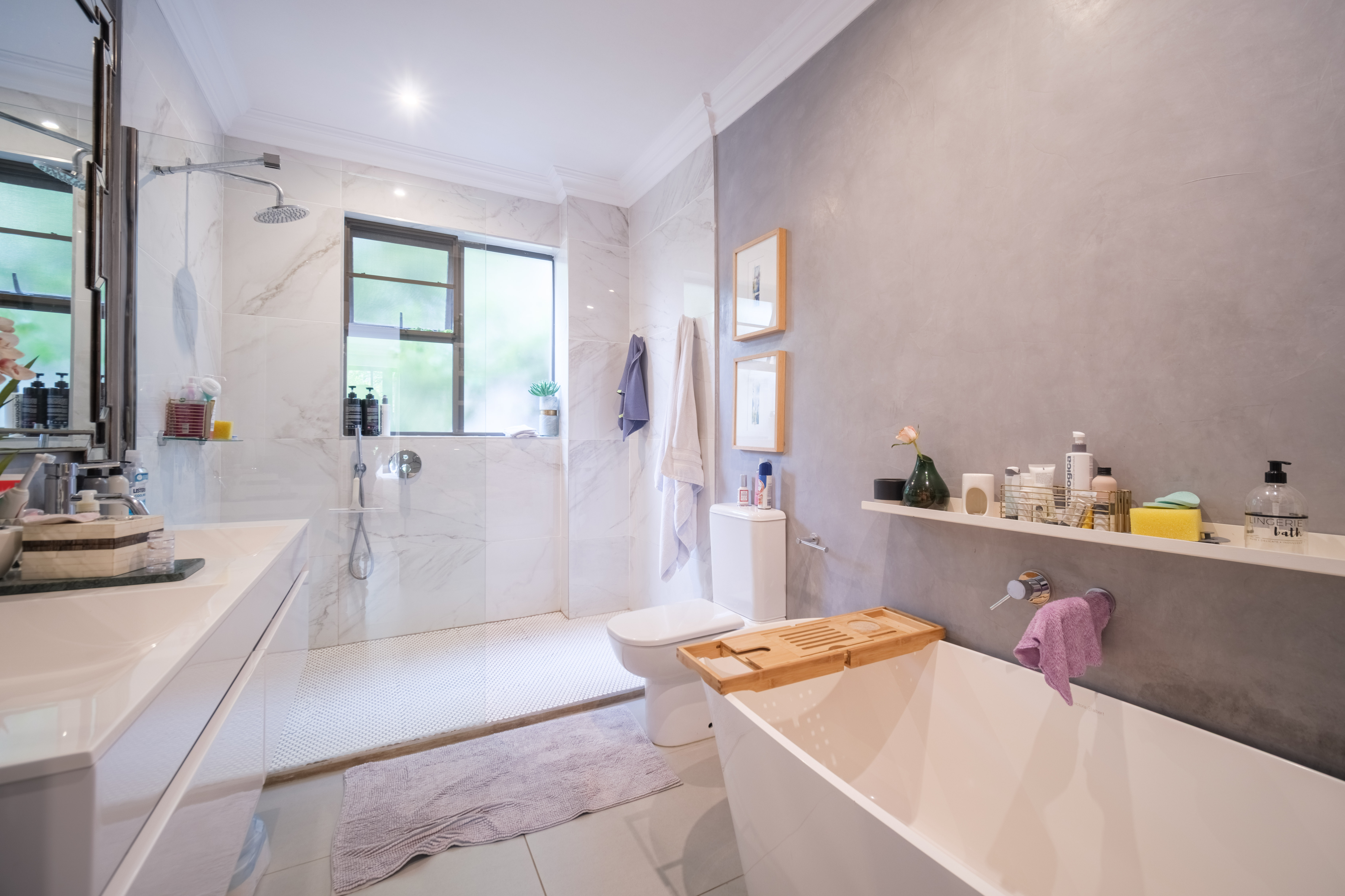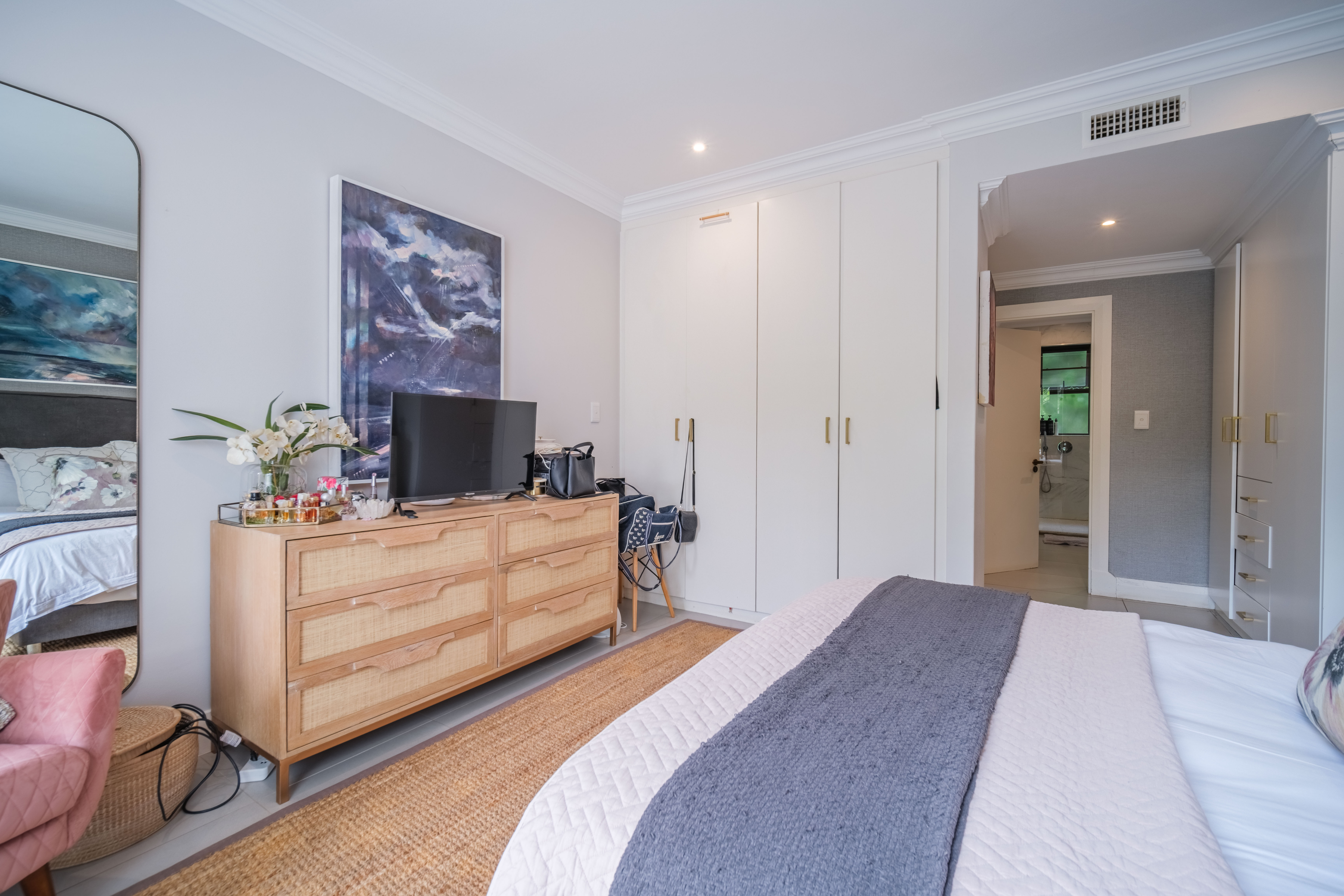 The bedroom wing has been thoughtfully designed for comfort and privacy. Two beautifully appointed bedrooms feature en-suite bathrooms, while the third bedroom enjoys easy access to the stylish guest bathroom with shower. Each bedroom opens directly to the landscaped garden through sliding doors, inviting natural light and fresh estate air into every space.