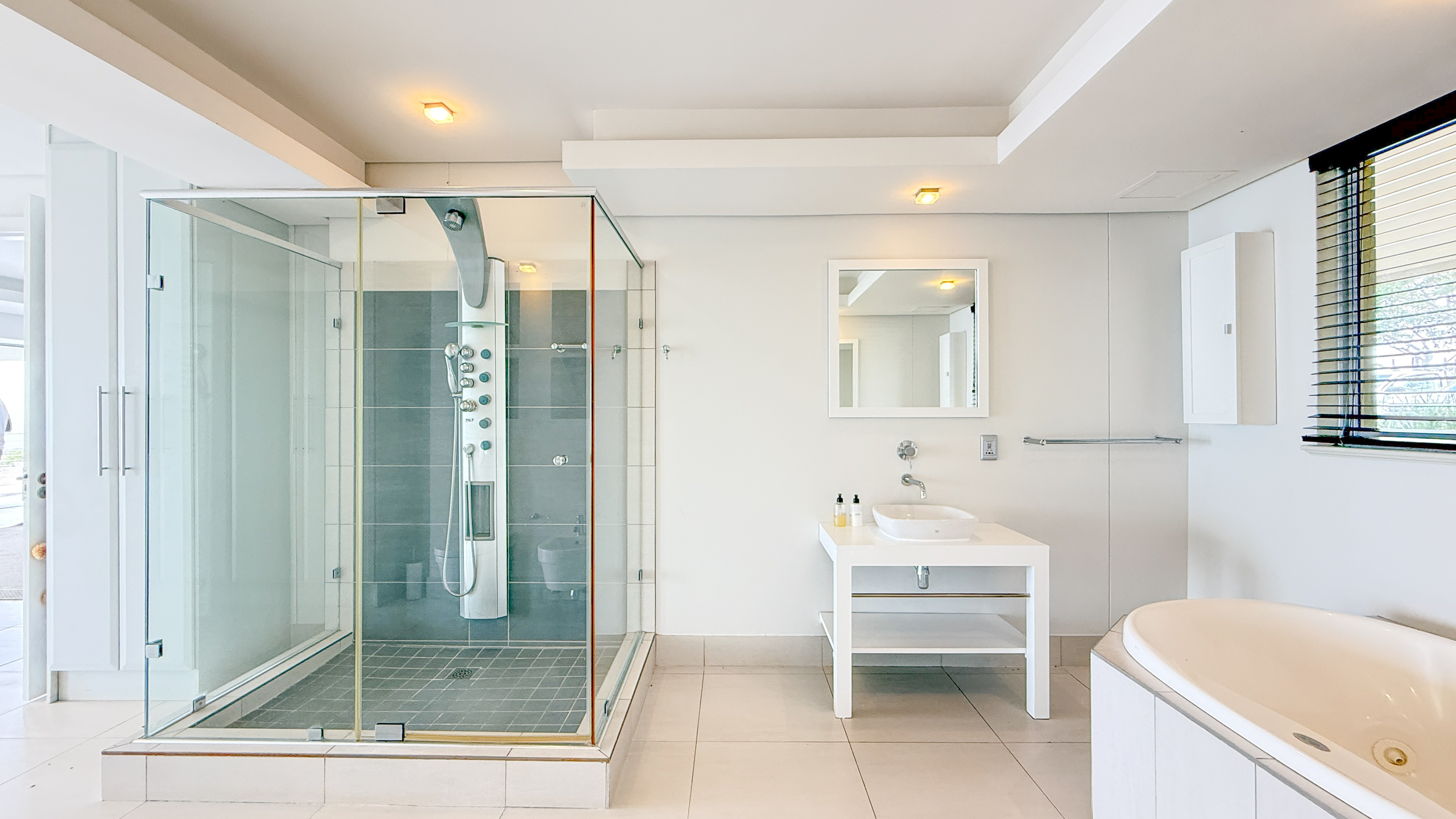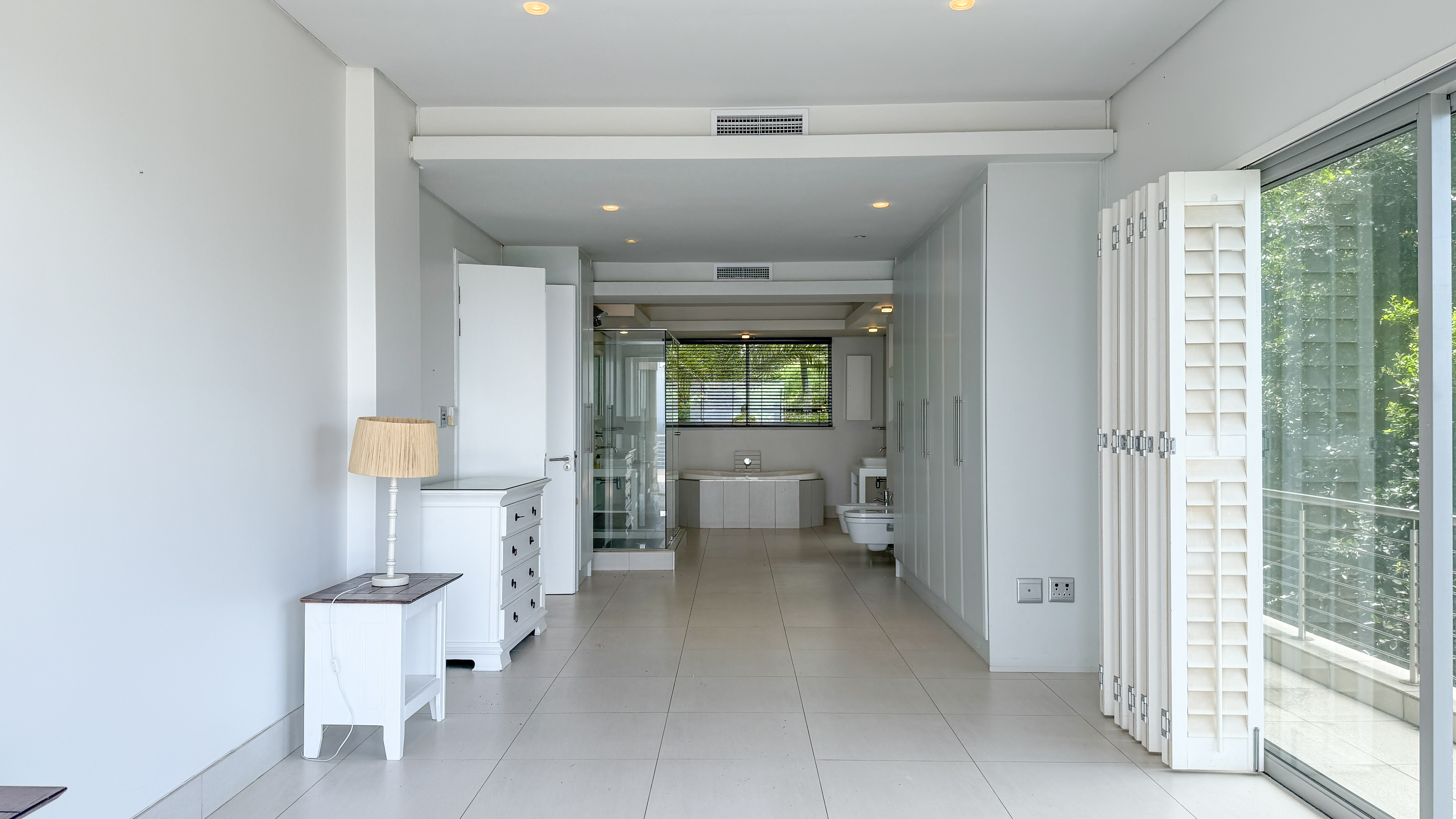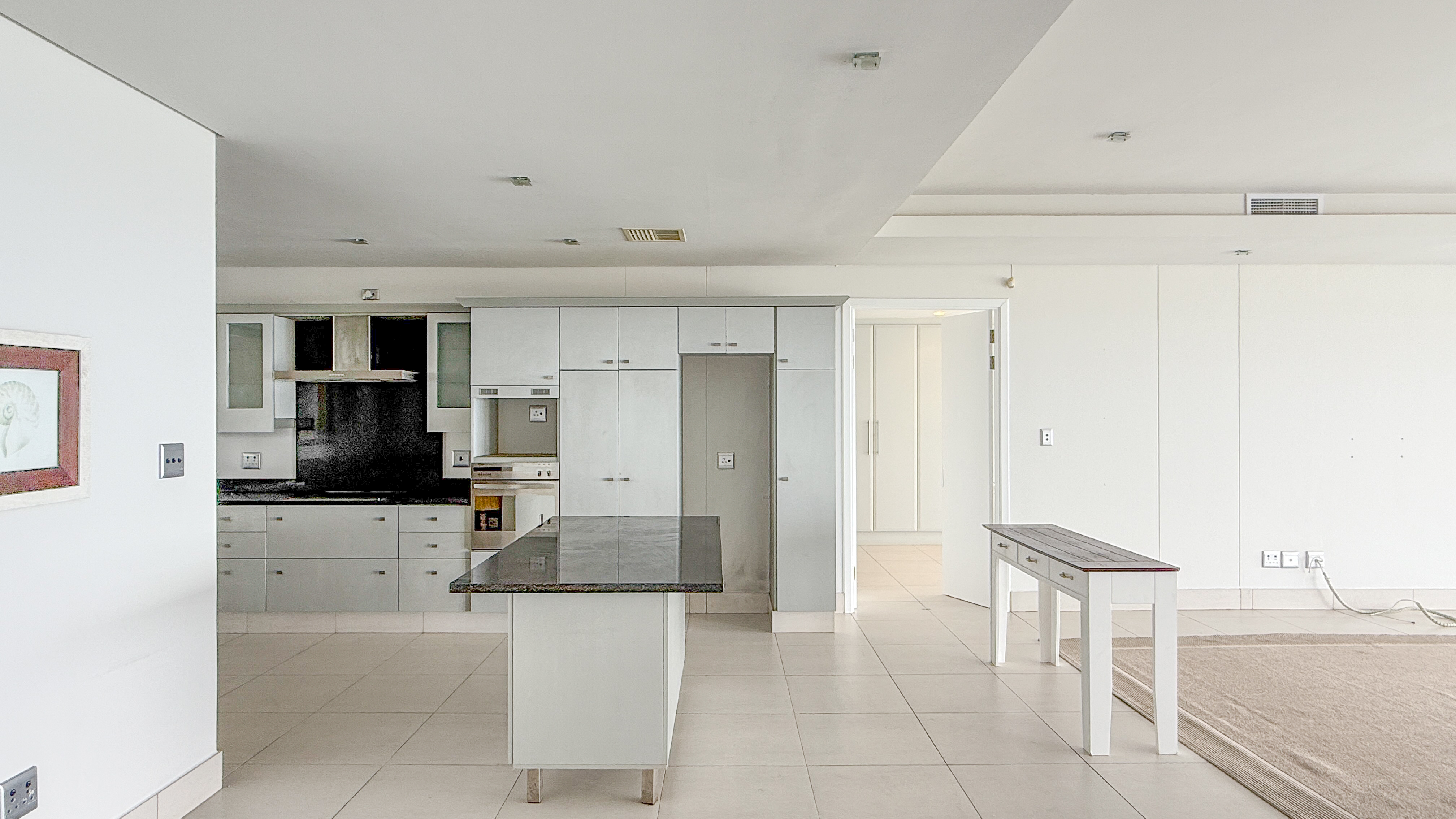 The apartment features three spacious bedrooms, each with its own en-suite bathroom, showcasing contemporary fittings and tasteful design. The master suite is perfectly positioned to capture sweeping ocean views, offering a serene retreat at the end of each day. A separate guest toilet provides added convenience for visitors.