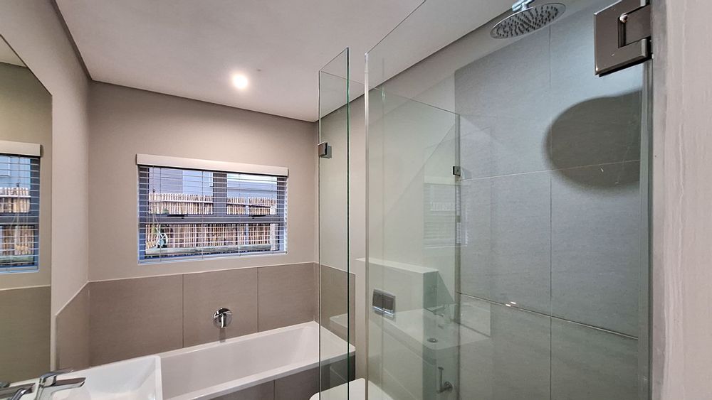 This beautifully designed three-bedroom home welcomes you with modern finishes and an effortless sense of style. The open-plan living and dining area creates a spacious, light-filled environment, perfect for entertaining or relaxing with family. The well-appointed kitchen features elegant Caesarstone countertops, a Whirlpool gas hob and electric oven, space for three plumbed appliances, and generous cupboard storage — ideal for convenient, everyday living.
