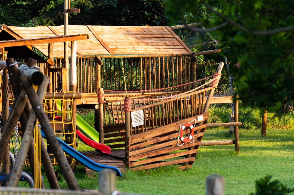 Outdoor Lifestyle: Sparkling swimming pool, fire pit, and a built-in braai, all set against the backdrop of tranquil forest surroundings.