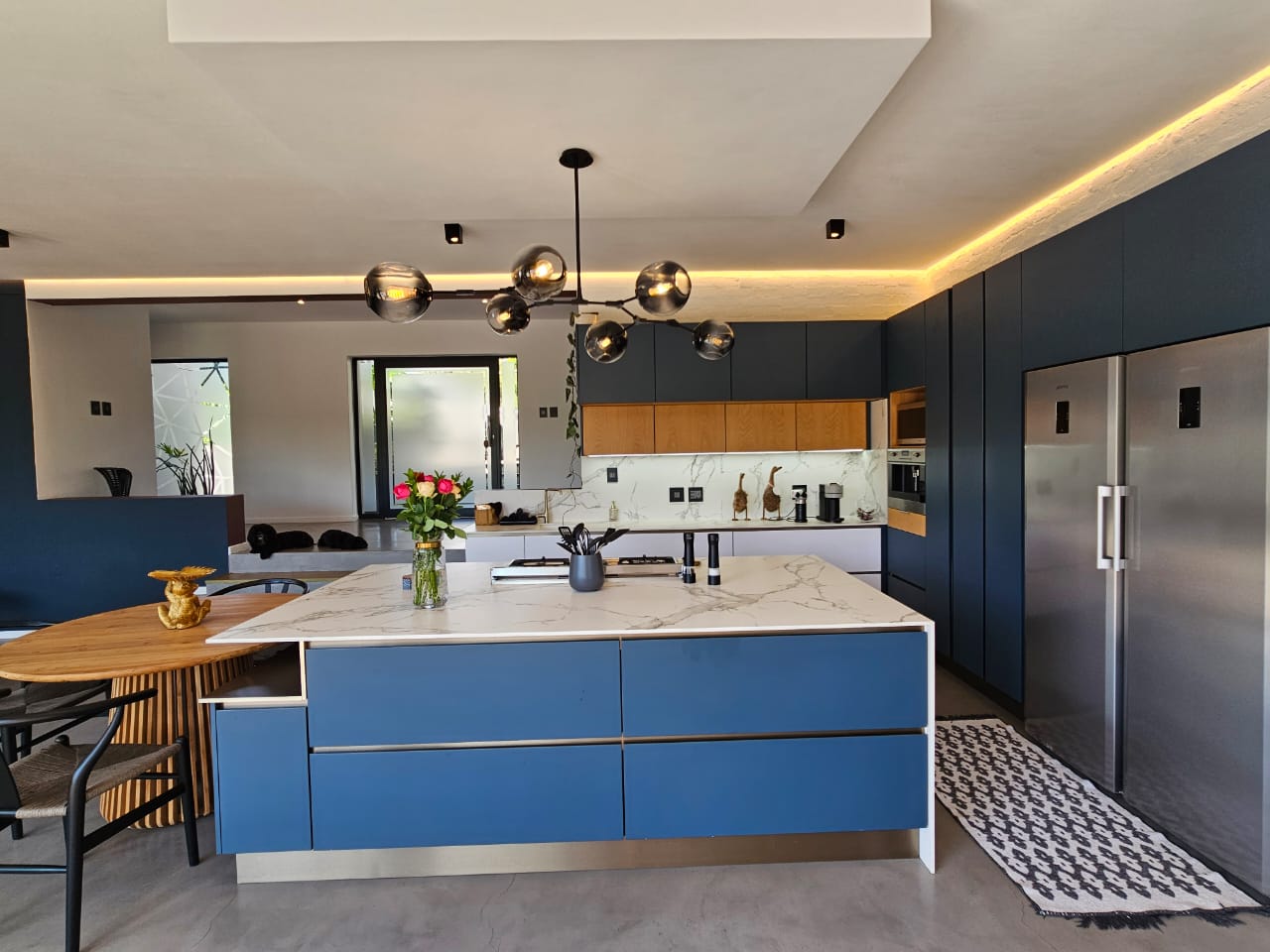 The kitchen is a chefs dream and is equipped with ample cupboard space and state of the art appliances