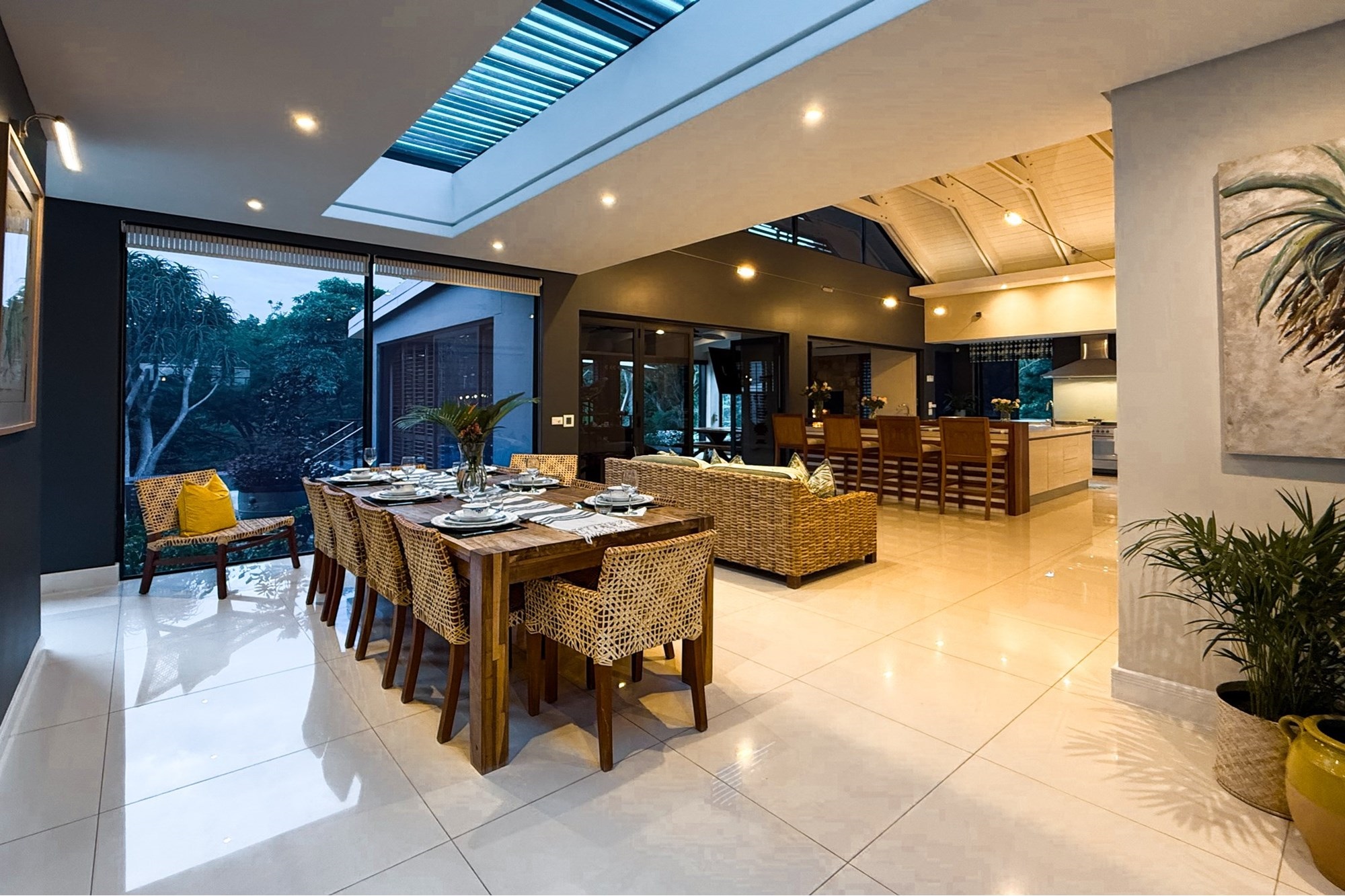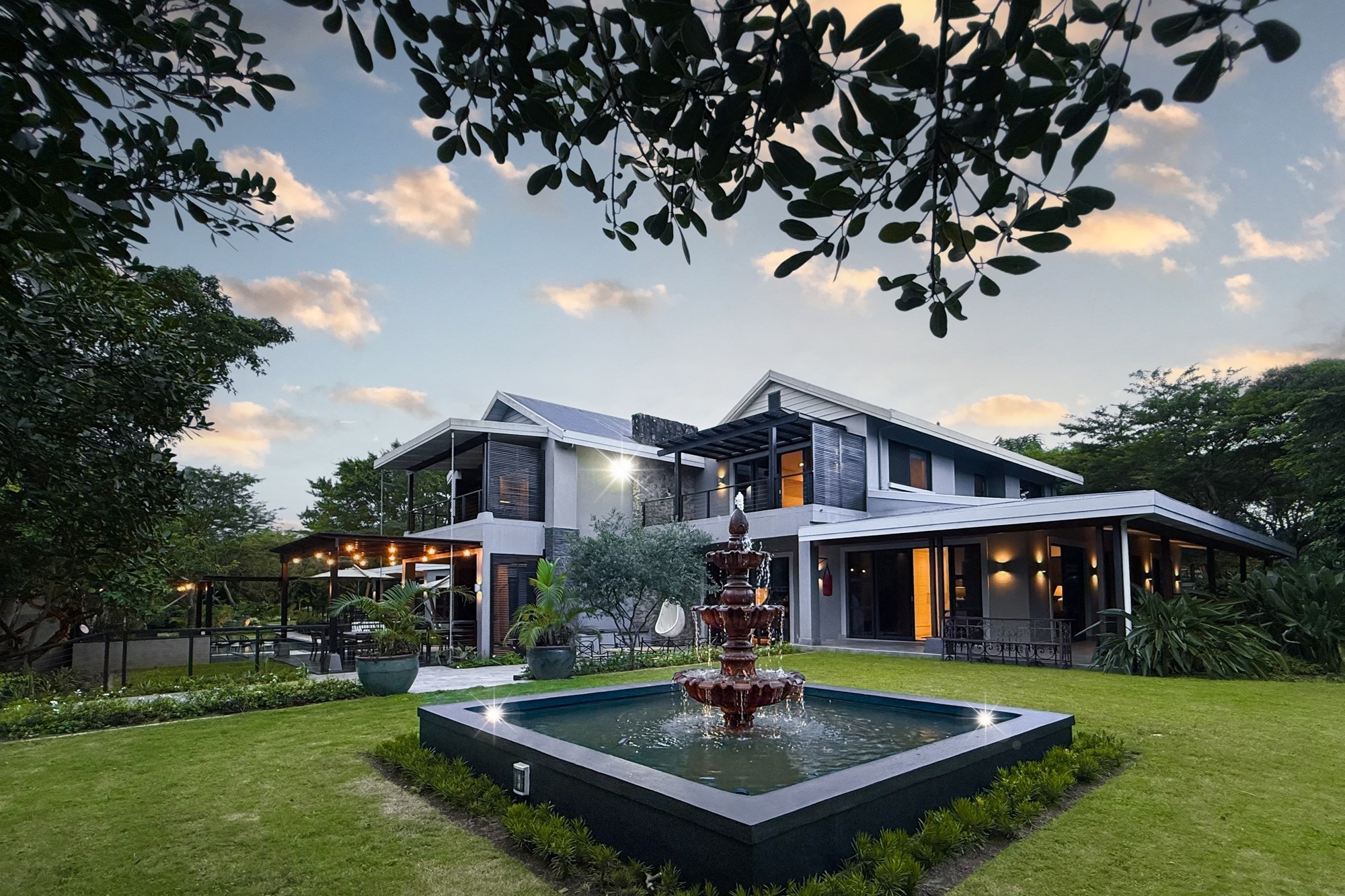 In a league of its own, this architecturally designed masterpiece seamlessly blends jaw dropping aesthetics with functional living and flow. This truly is one of the most commanding homes on one of the best sites on the entire estate, not just because it is 1 of only 5 plots breaching 3000m2 at a formidable 3369m2, but that it is completely private, engulfed in greenbelt forestry with no immediate neighbours, meaning absolute privacy with a much higher tolerance for noise, which may just come in handy when you explore the possibilities of the incredible entertainment areas and lifestyle opportunities. More so the house itself has been executed perfectly to create an architectural masterpiece that leans into the prestige of the site to create one of the most enviable homes for discerning investors.