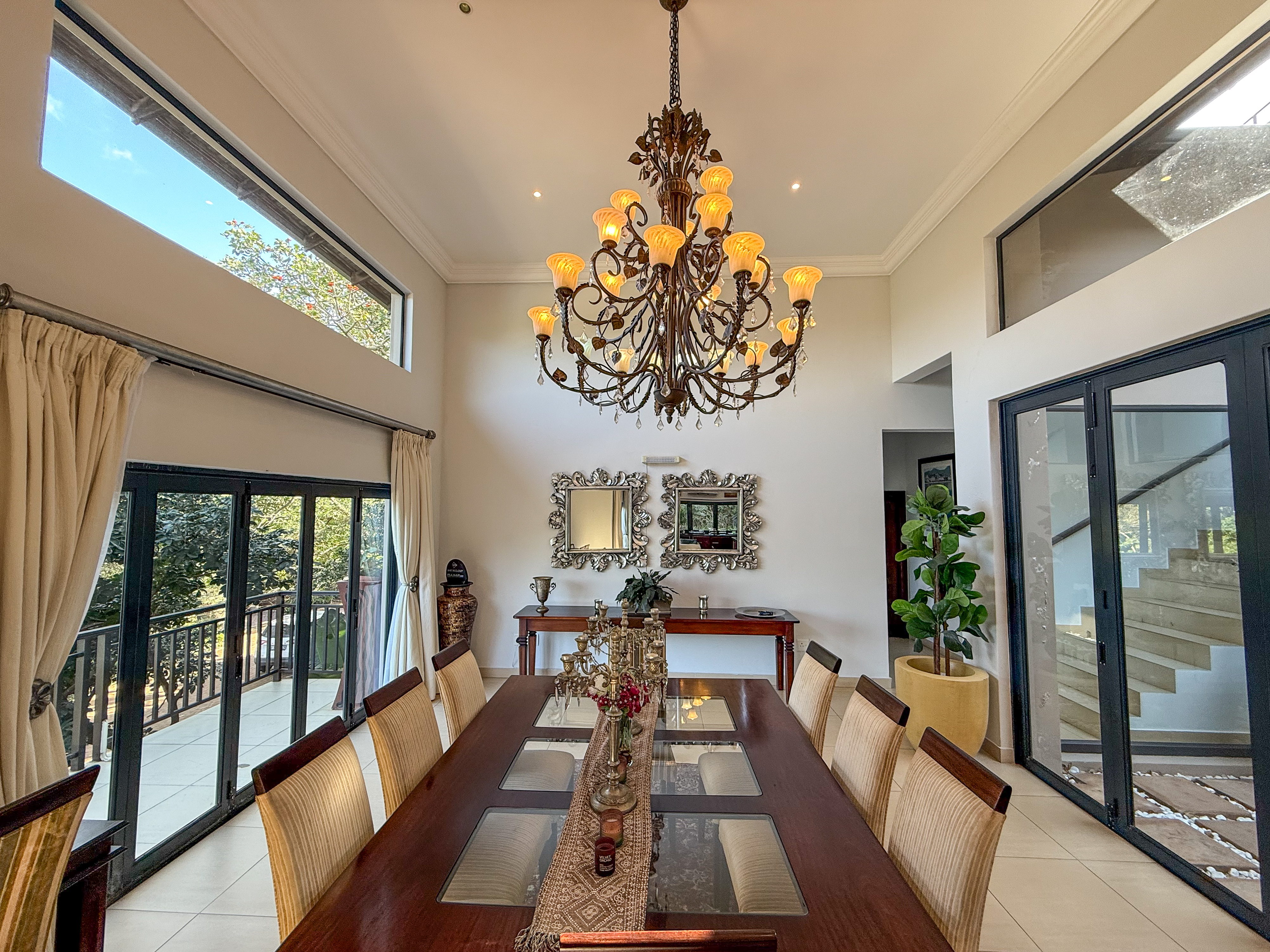 Set on a prized corner stand within the prestigious Simbithi Eco Estate, this expansive 470-square-metre residence is a masterclass in elegant, contemporary design with a deep appreciation for space, privacy, and nature. Wrapped in lush greenery and framed by a beautifully landscaped garden, this home offers a tranquil sanctuary where every detail enhances comfort and seamless living.