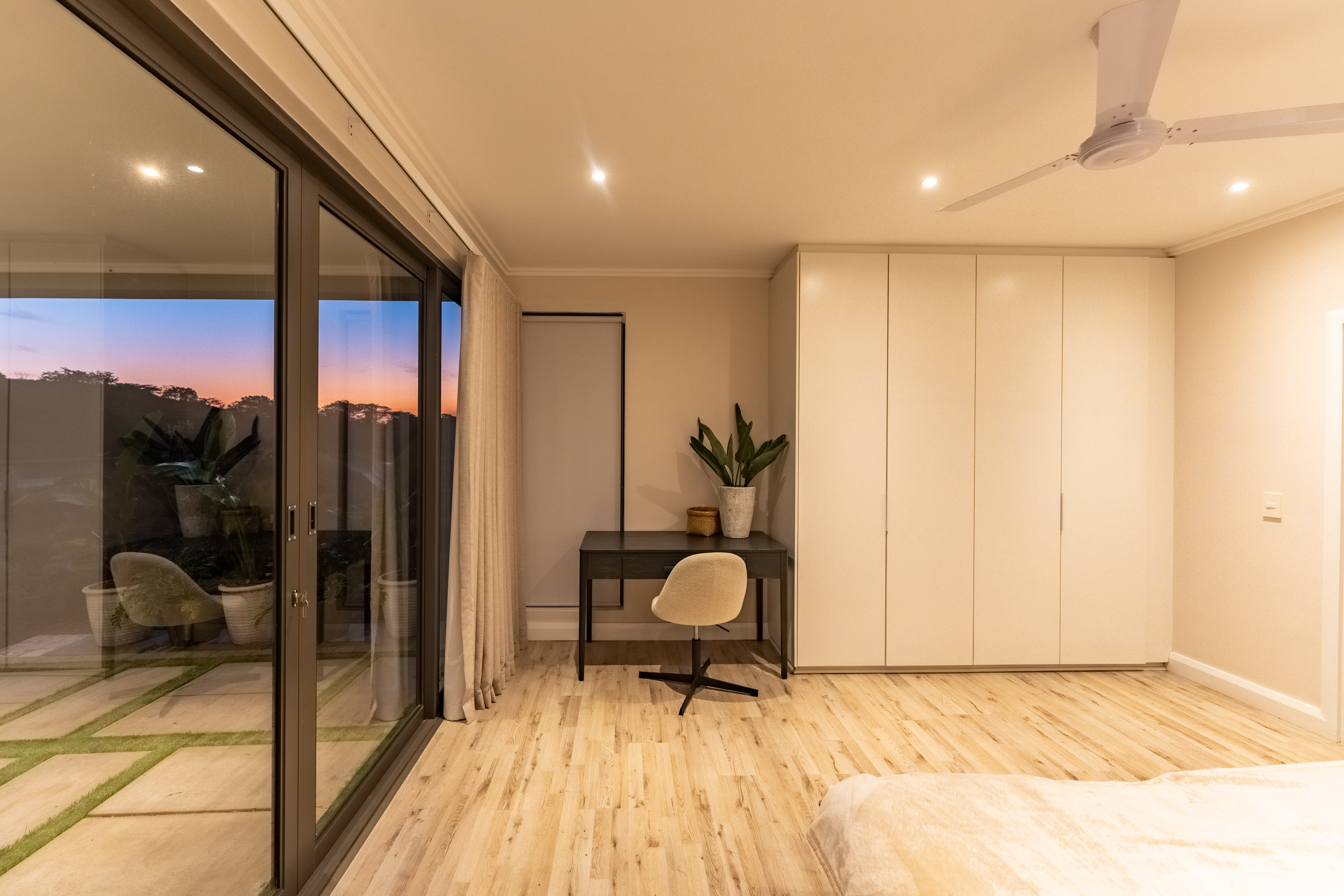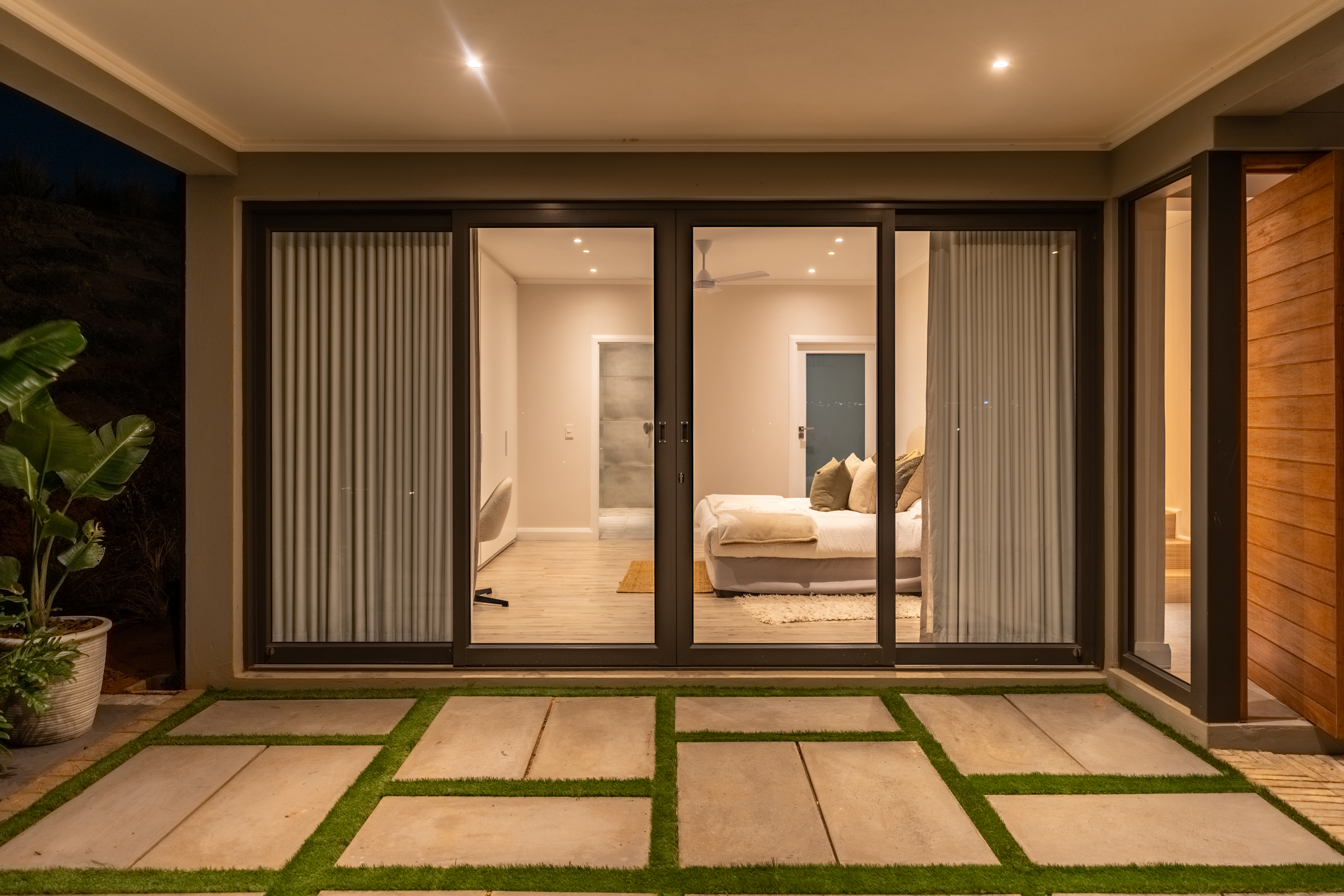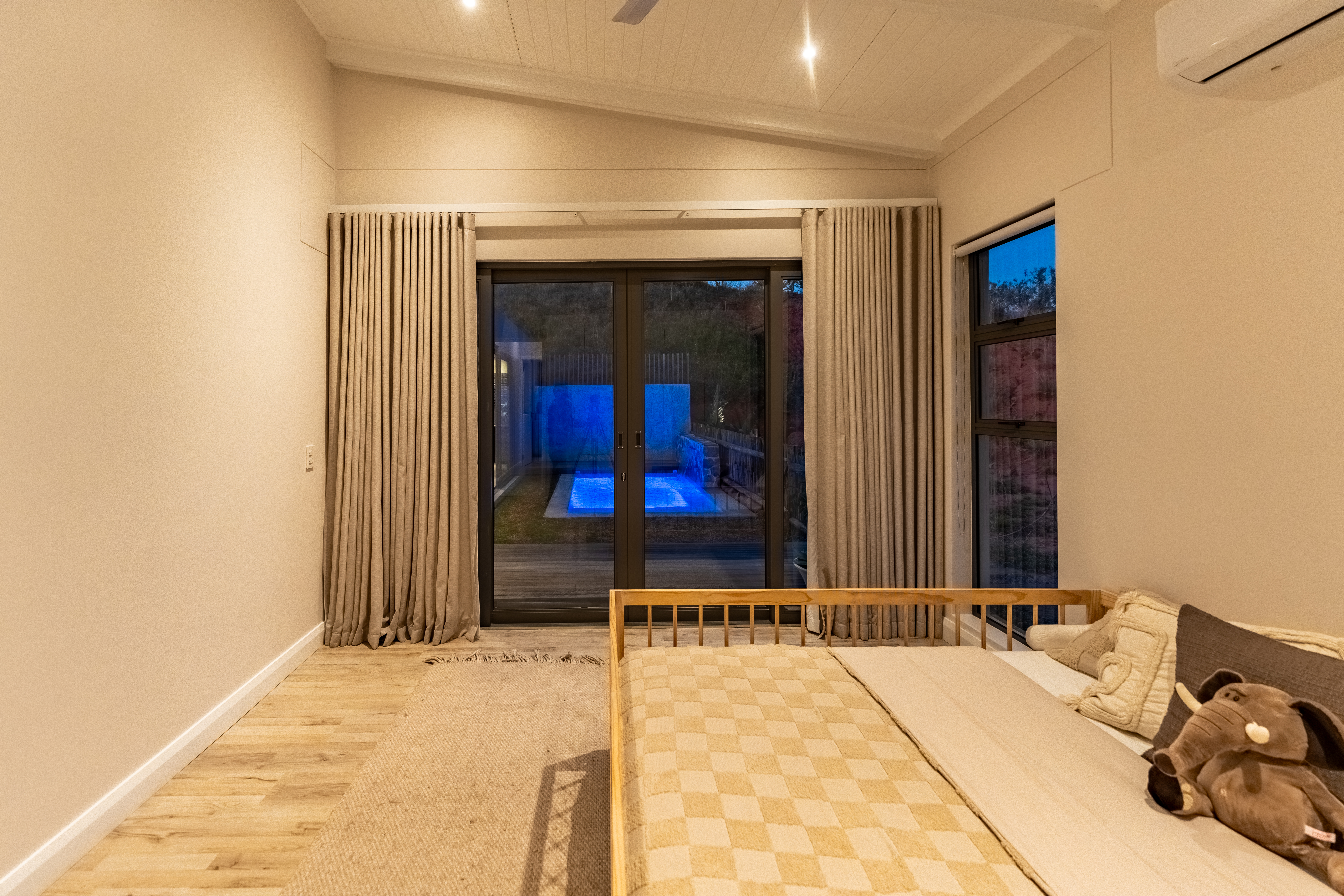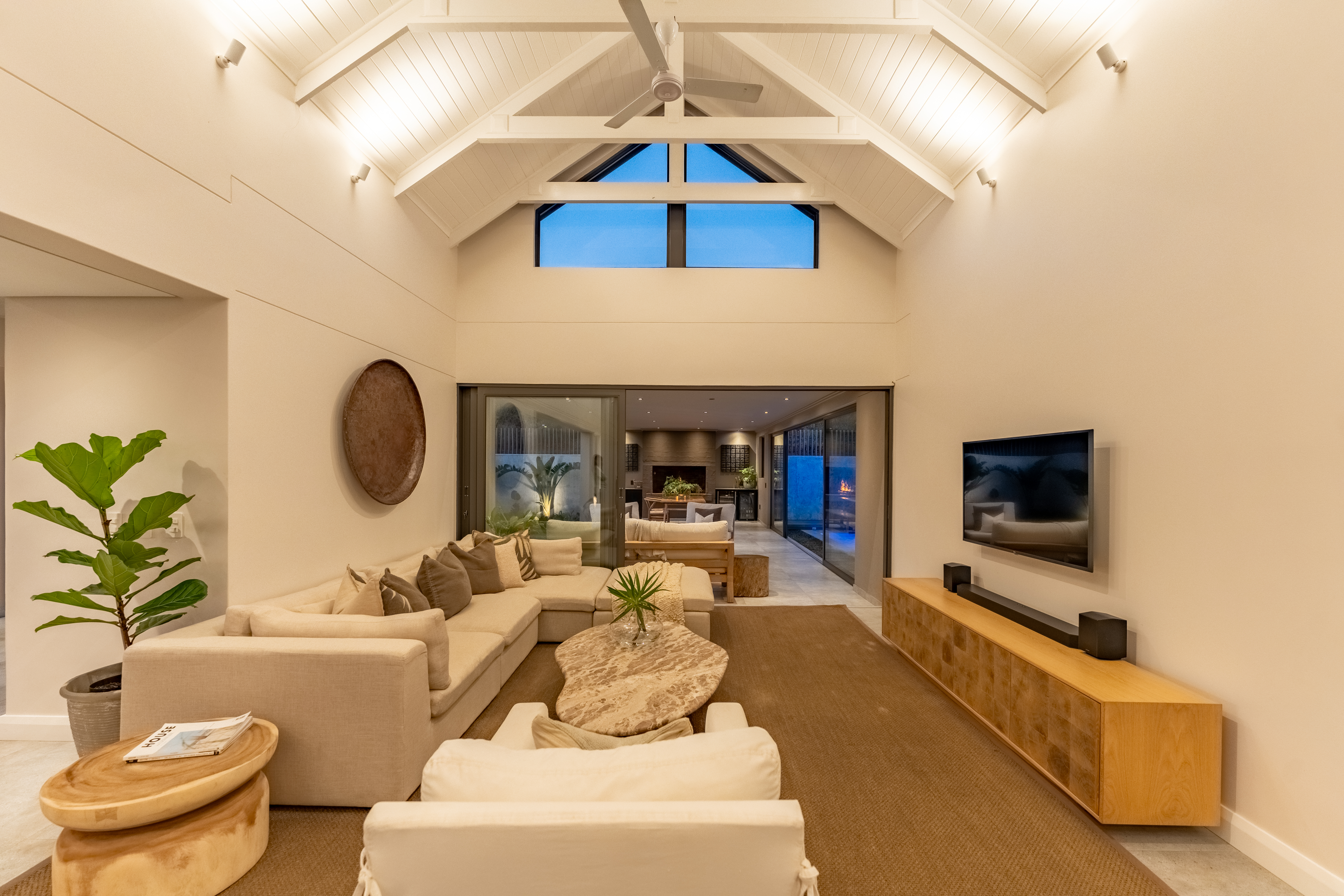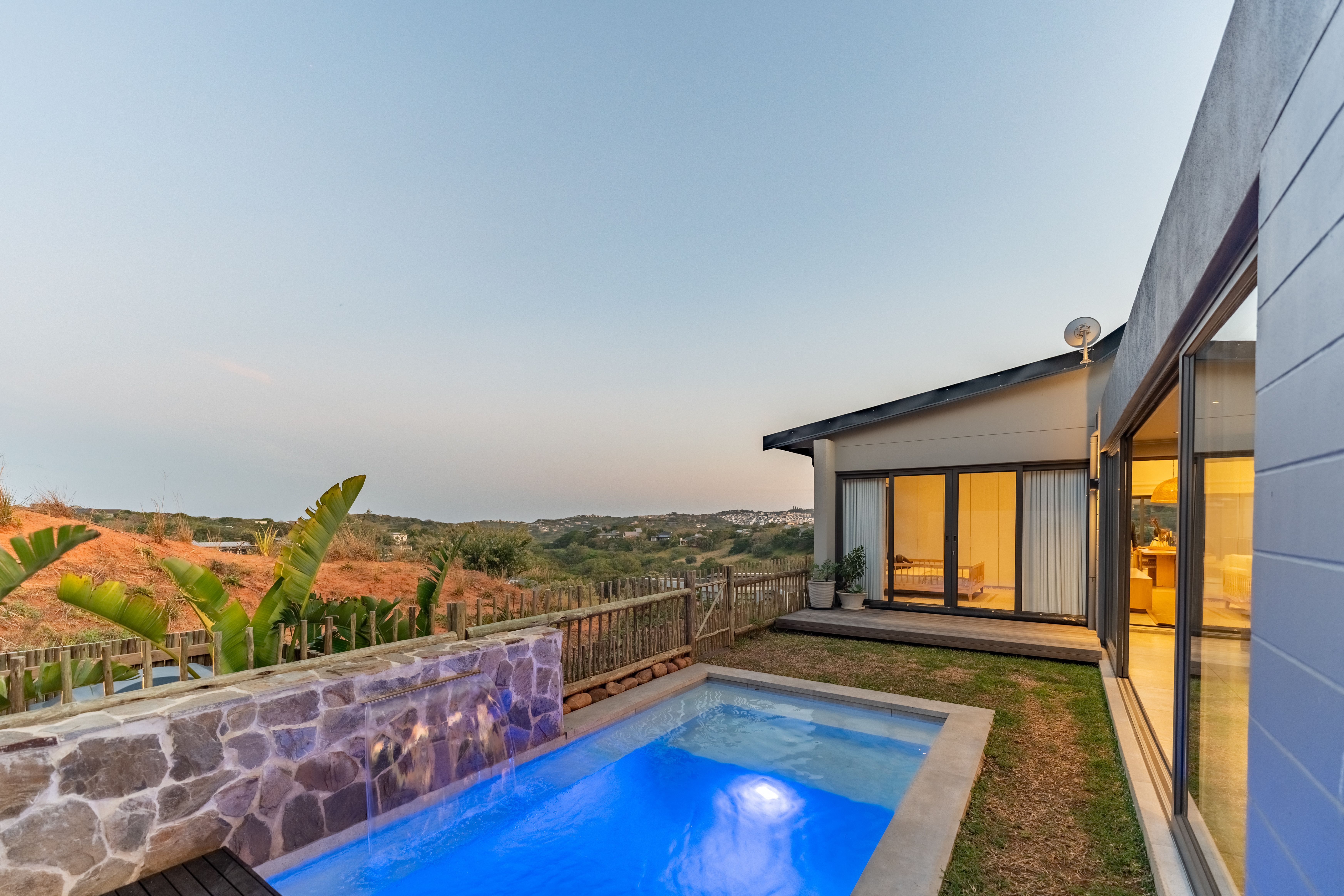 Step inside and experience open plan living at its best. The spacious lounge and dining area flow seamlessly into a stylish kitchen and out to a beautifully designed entertainment area complete with built in braai and a sparkling pool. Large sliding doors invite the outdoors in and frame scenic views over the estate.