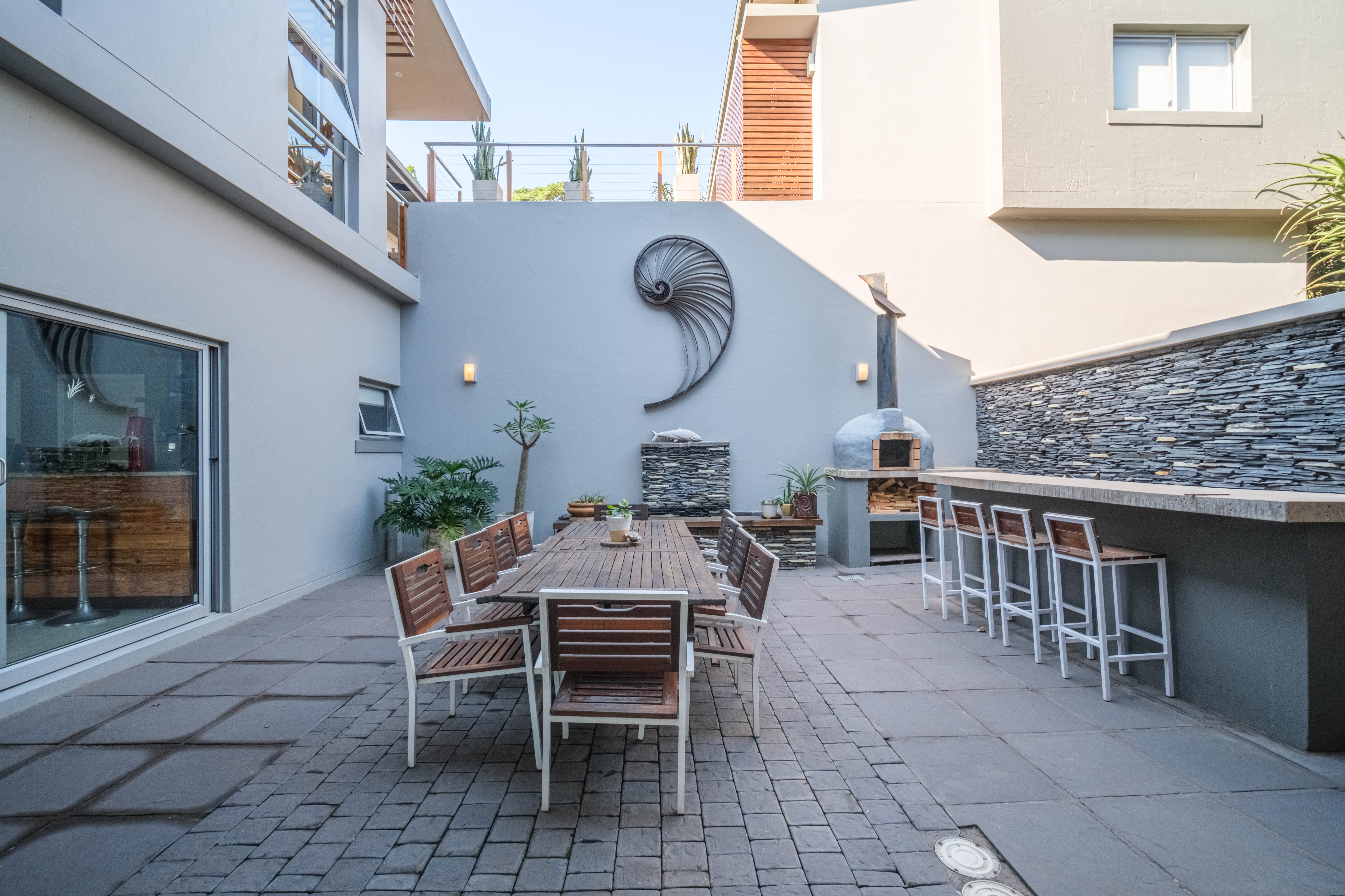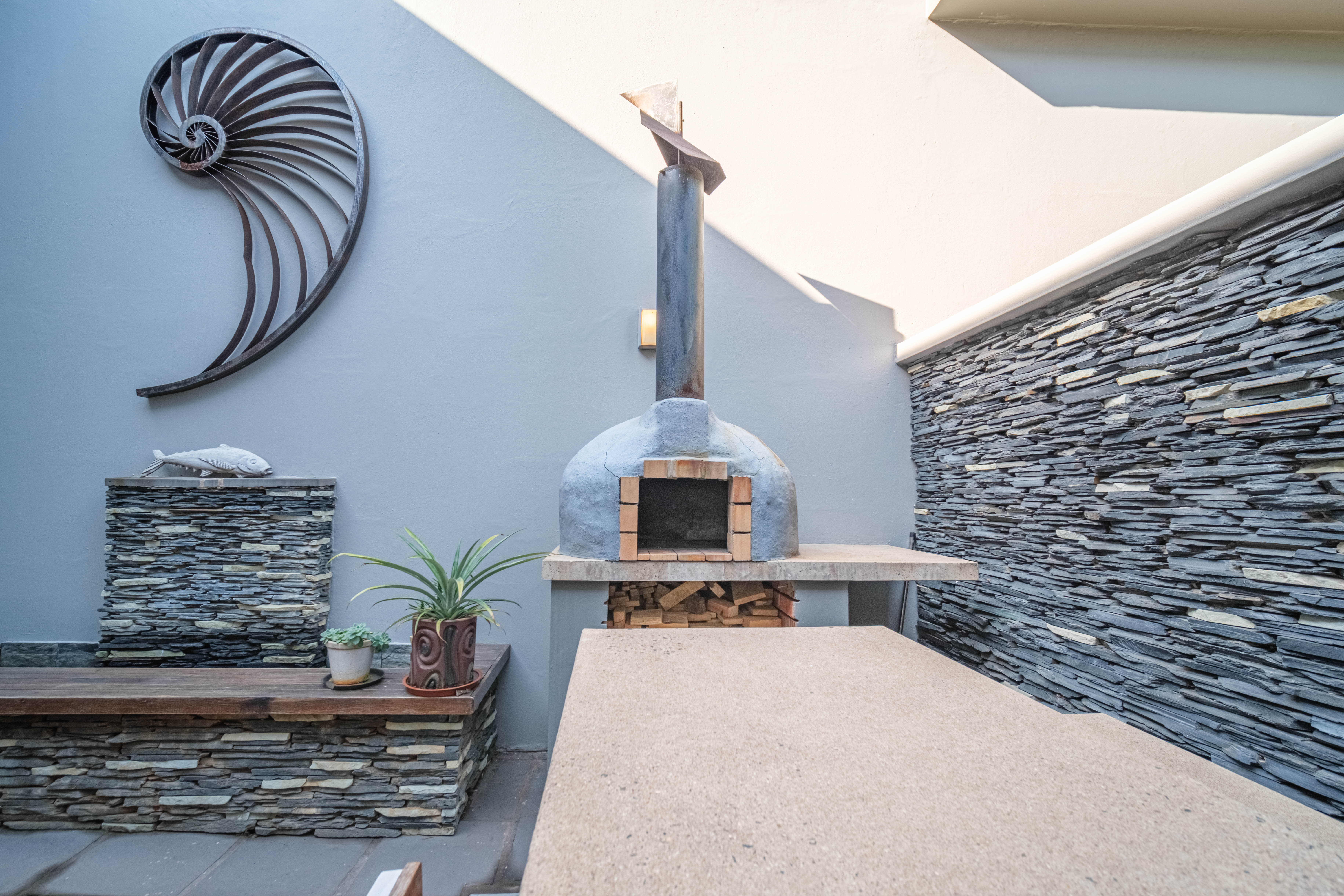 Step outside into your own entertainer’s paradise: a private courtyard with built-in braai, pizza oven, and fire pit—perfect for long evenings under the stars.
