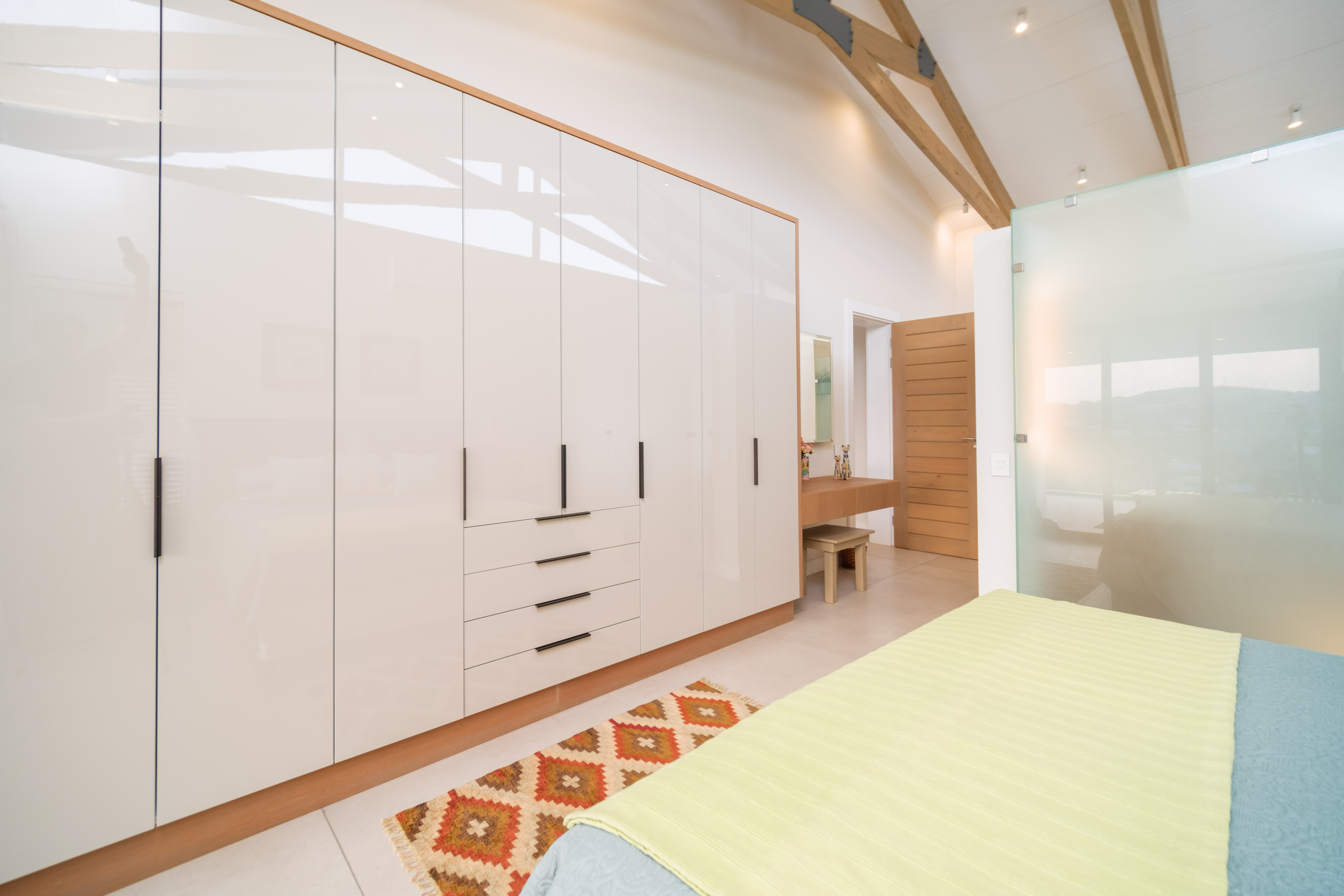 Ascending the striking staircase, framed by a dramatic picture window overlooking the pool, the upper level opens to a refined lounge space leading to a spacious elevated balcony that captures sweeping views of the surrounding estate. Three additional bedroom suites, each designed as serene light-filled sanctuaries, boast built-in wardrobes, deluxe ensuite bathrooms, and private balcony access, creating havens of relaxation and privacy for family or guests.