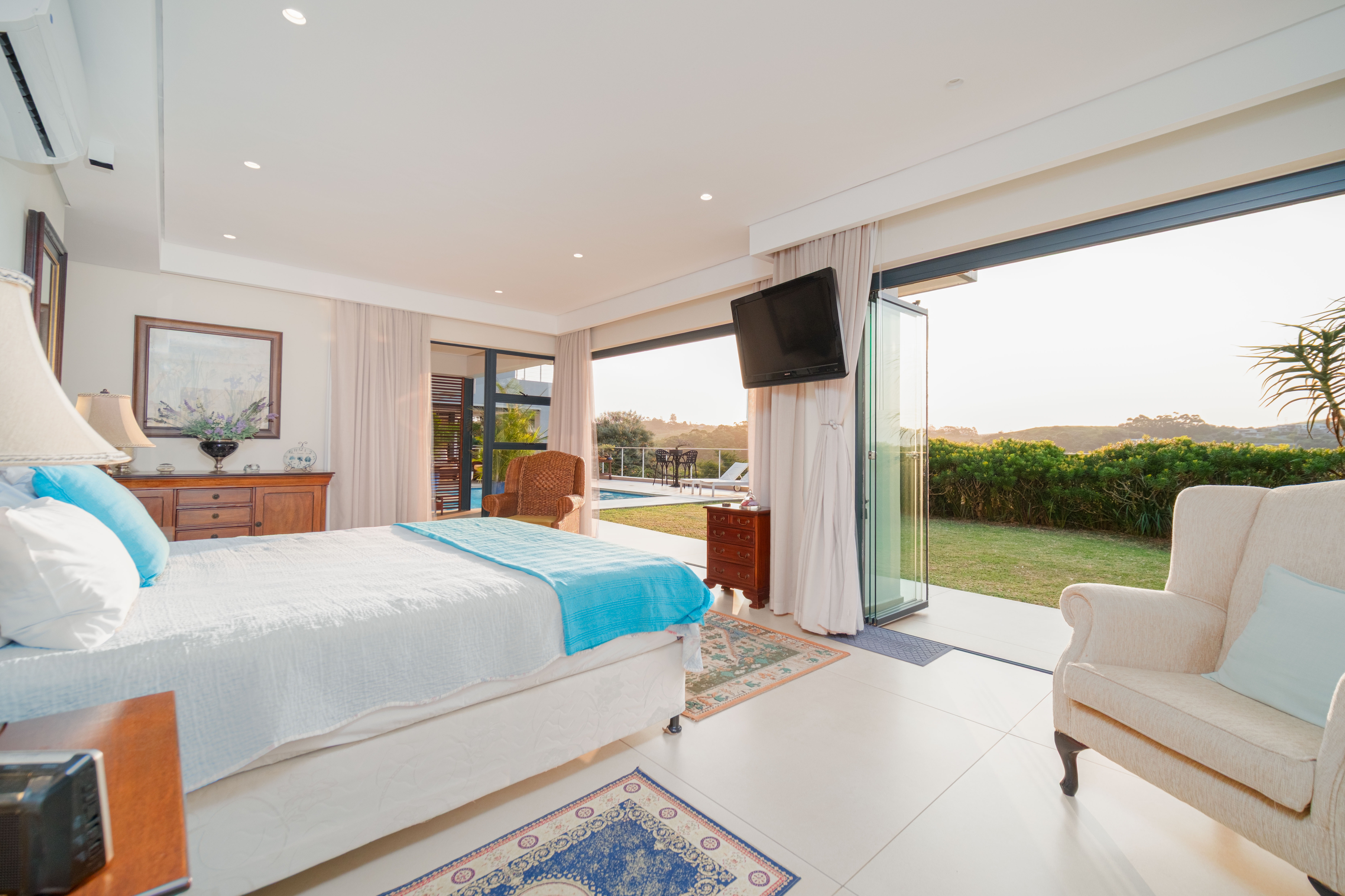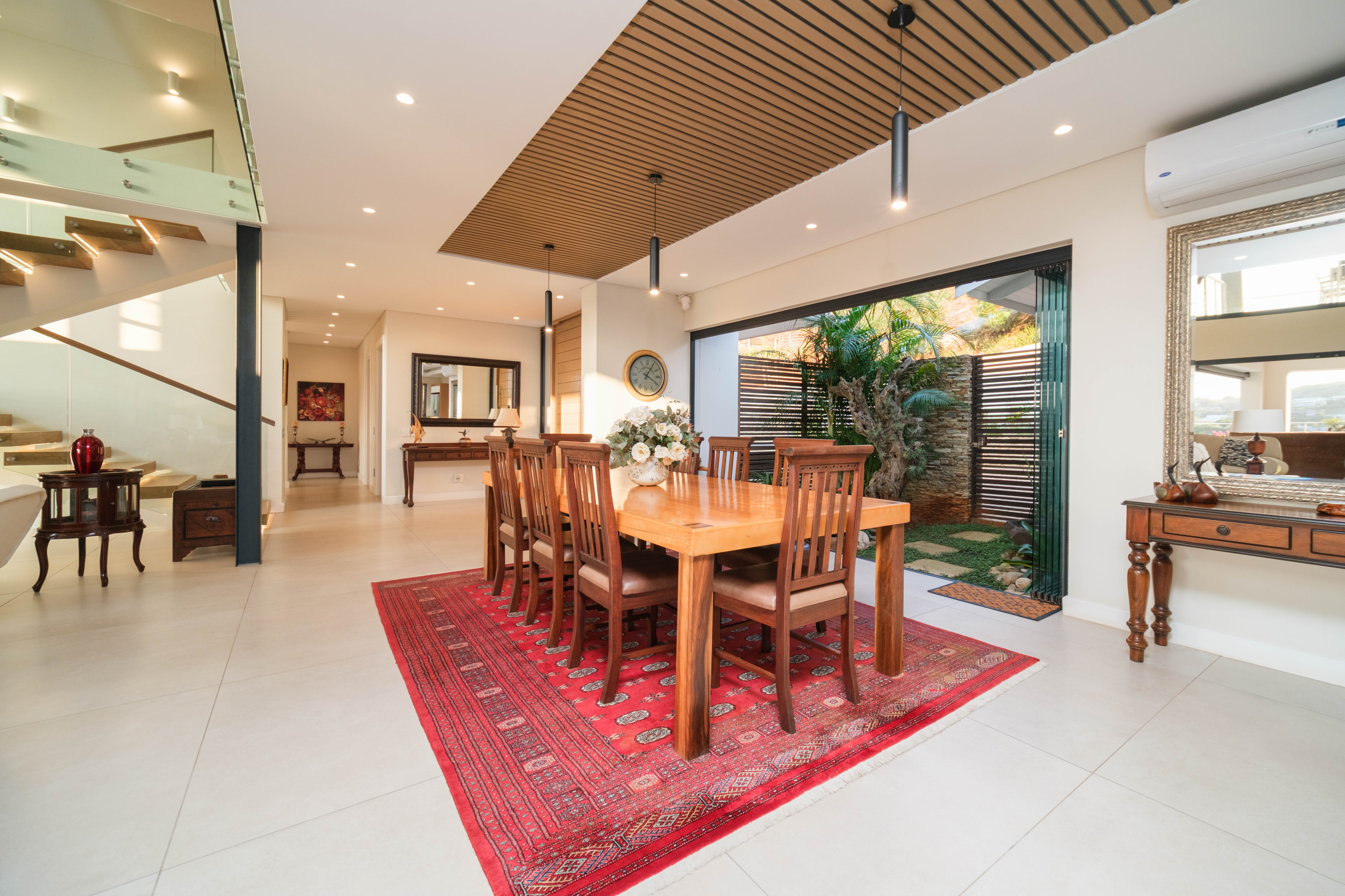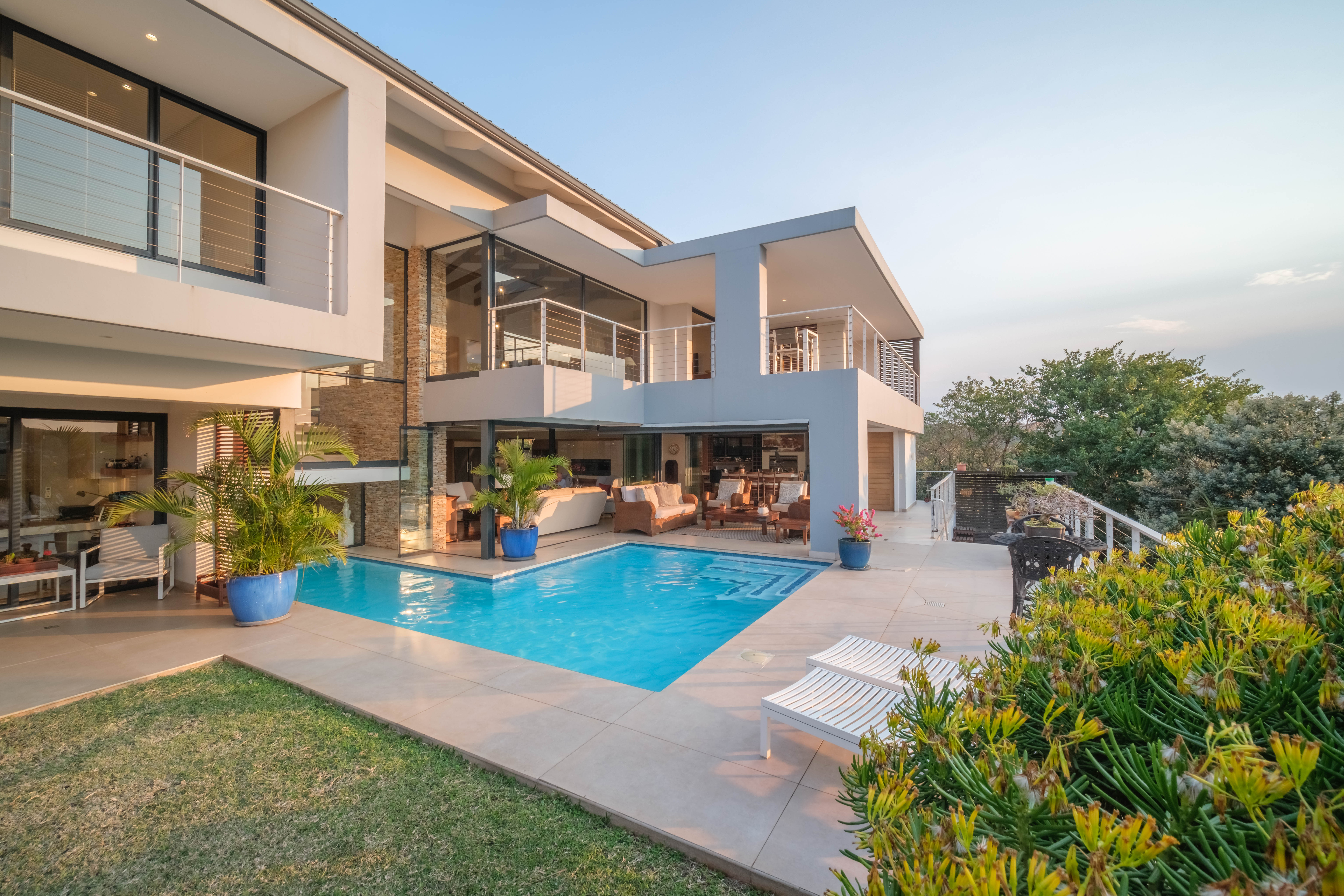 Seamless luxury living meets the captivating beauty of nature in this remarkable residence set within the prestigious Simbithi Eco Estate. Positioned to command 180-degree panoramic views over a lush green belt, tranquil dams, and the breathtaking surrounding landscape, this illustrious home rises above expectations to deliver the pinnacle of refined living. Architecturally crafted to perfection, it presents a substantial floor plan adorned with exquisite finishes, expansive living areas, and a seamless connection between indoor elegance and outdoor splendor.