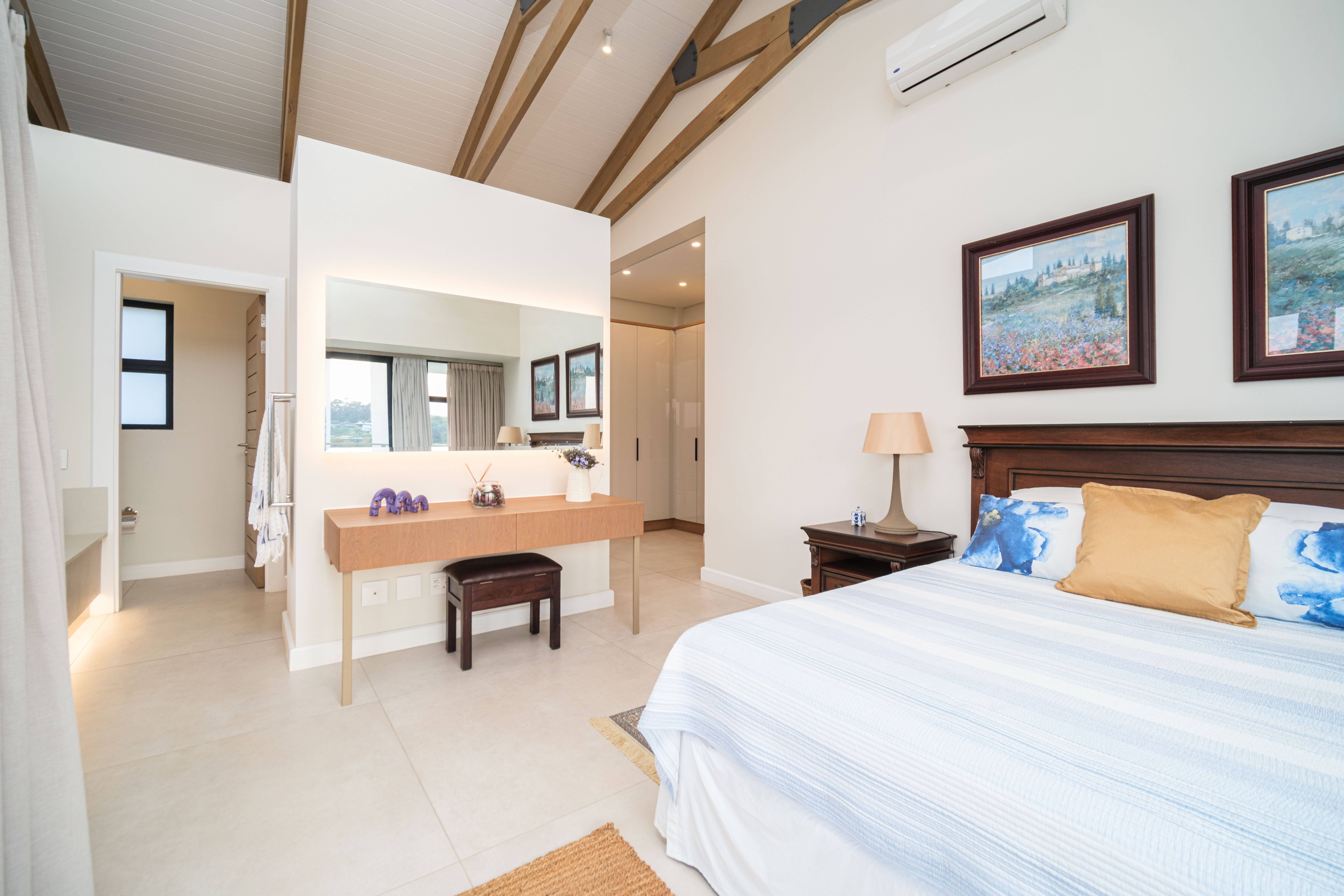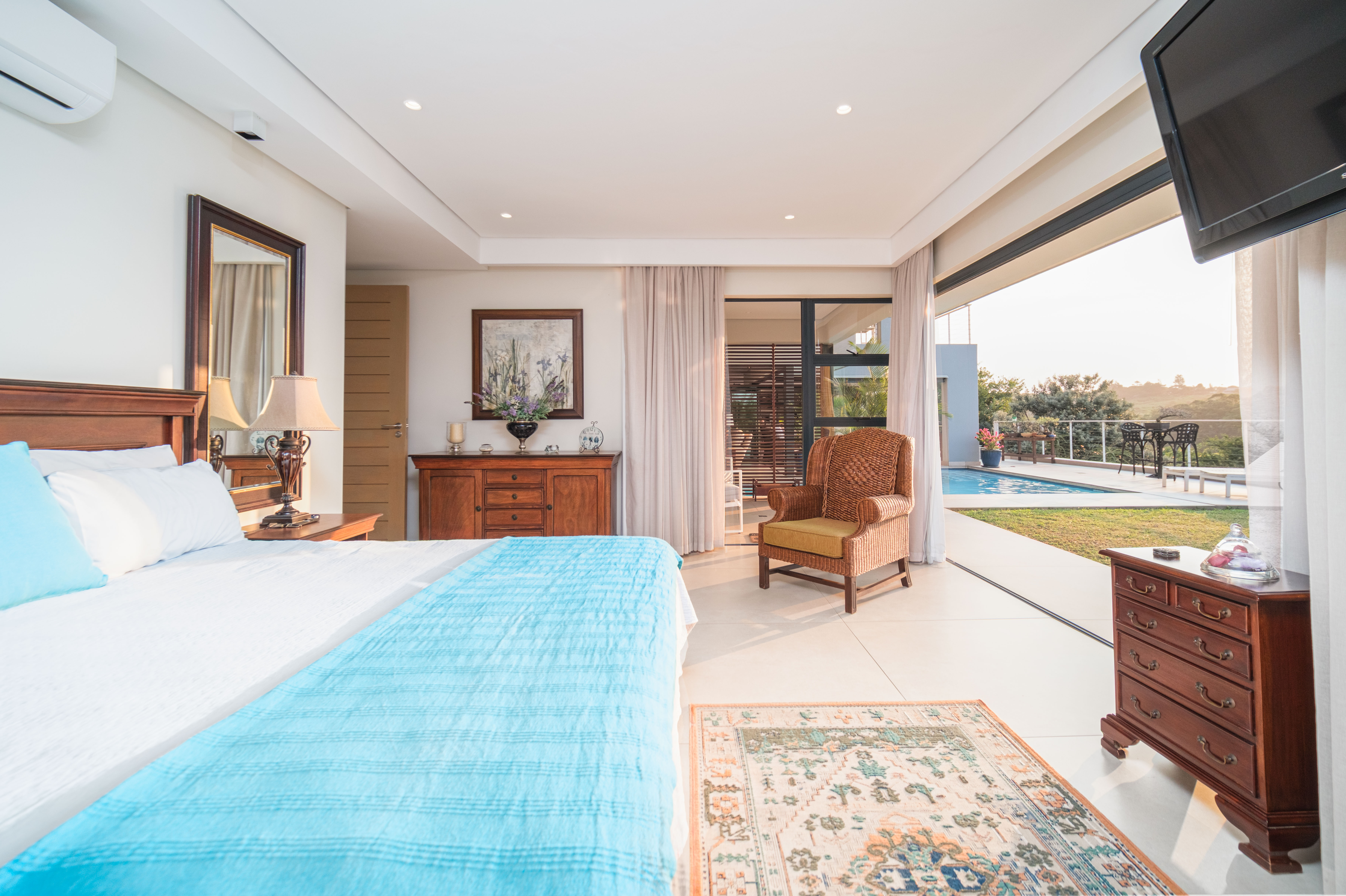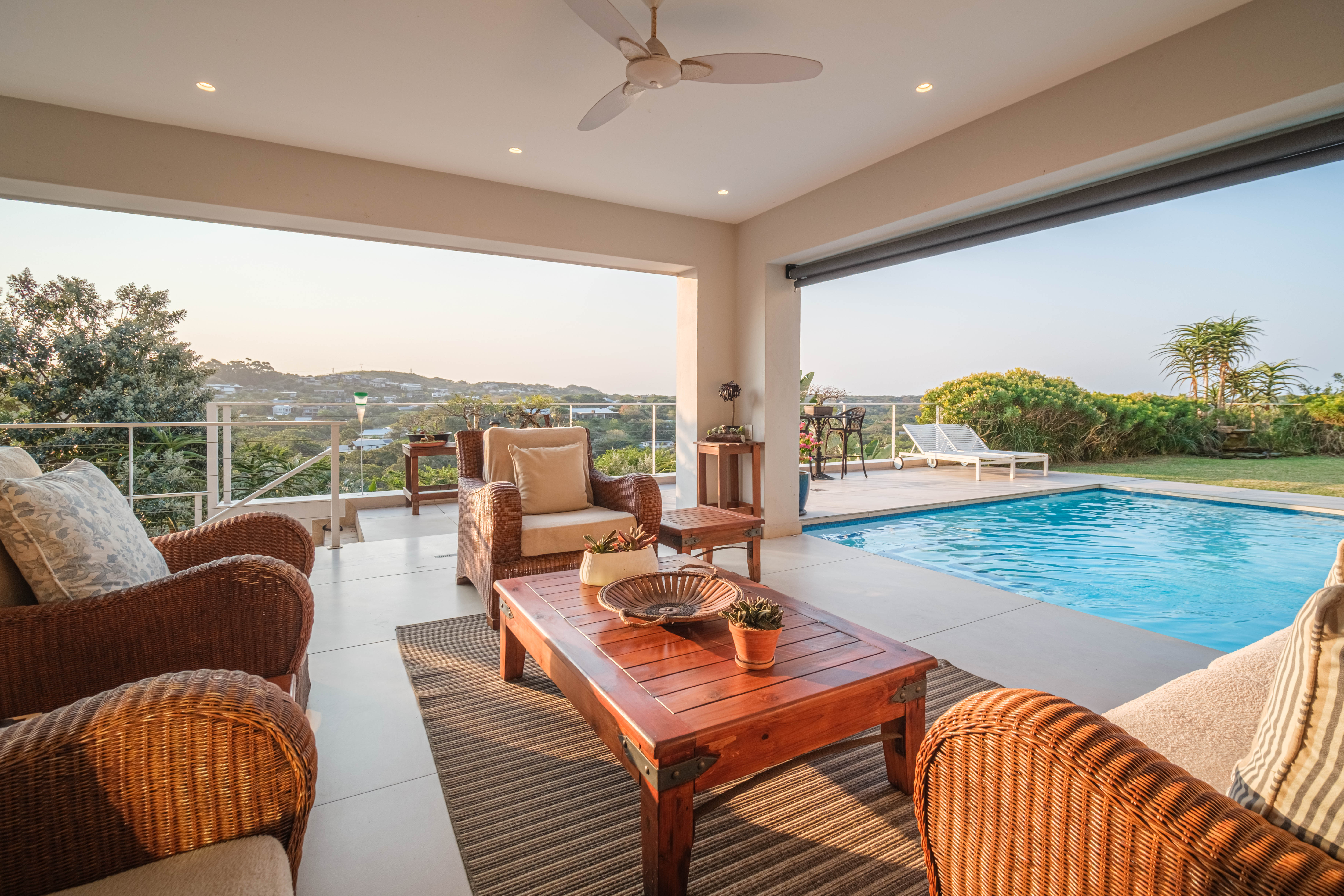 Seamless luxury living meets the captivating beauty of nature in this remarkable residence set within the prestigious Simbithi Eco Estate. Positioned to command 180-degree panoramic views over a lush green belt, tranquil dams, and the breathtaking surrounding landscape, this illustrious home rises above expectations to deliver the pinnacle of refined living. Architecturally crafted to perfection, it presents a substantial floor plan adorned with exquisite finishes, expansive living areas, and a seamless connection between indoor elegance and outdoor splendor.