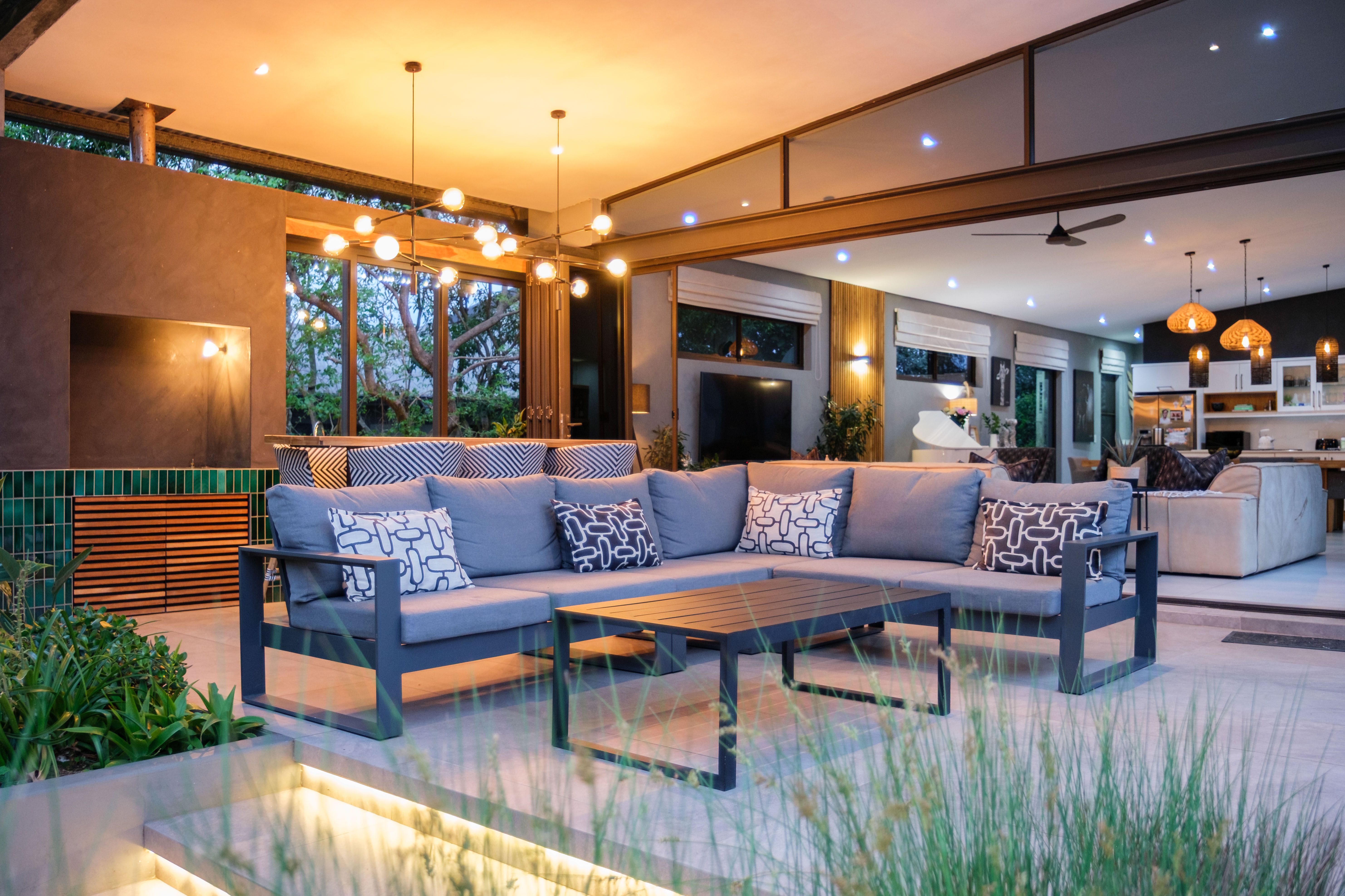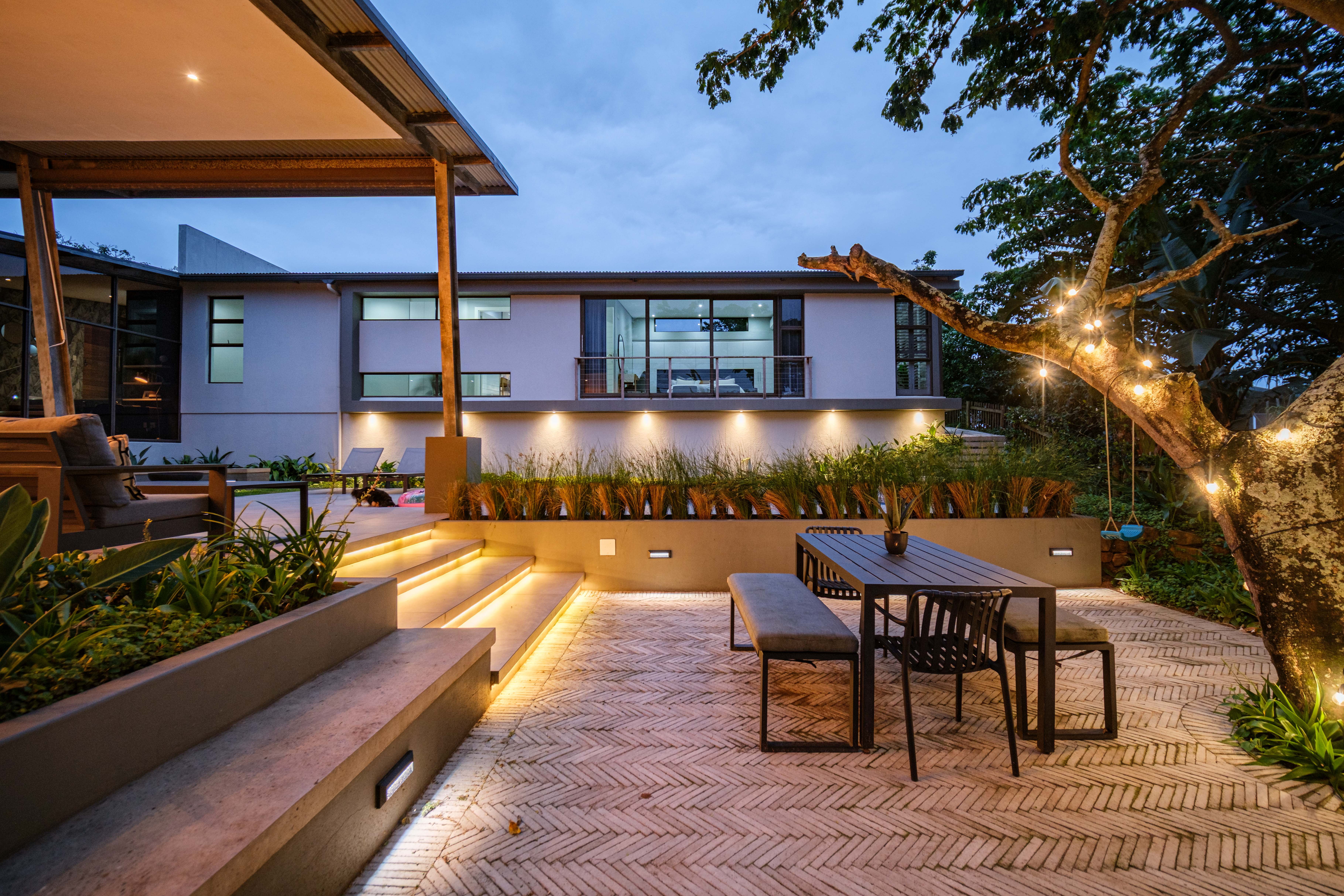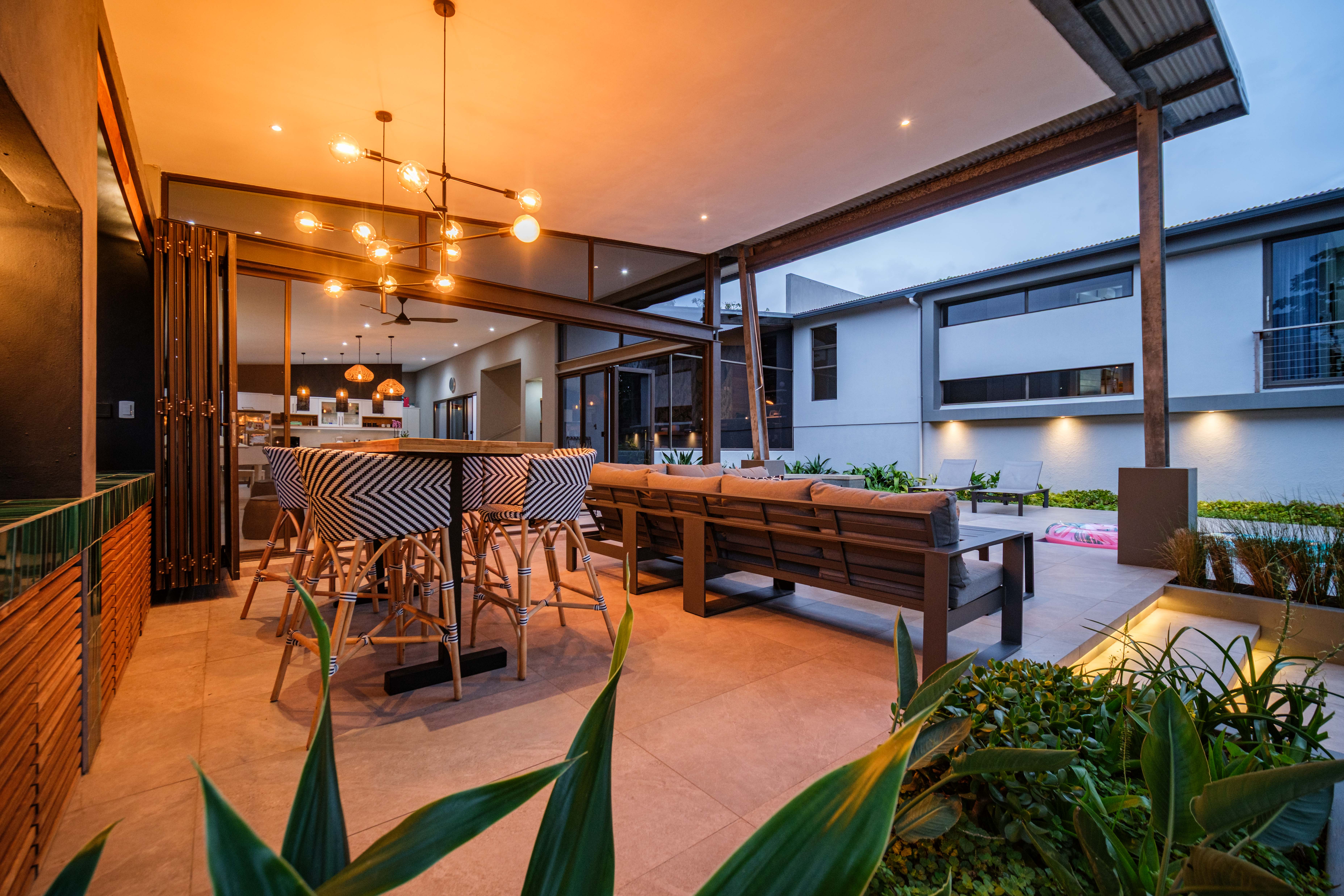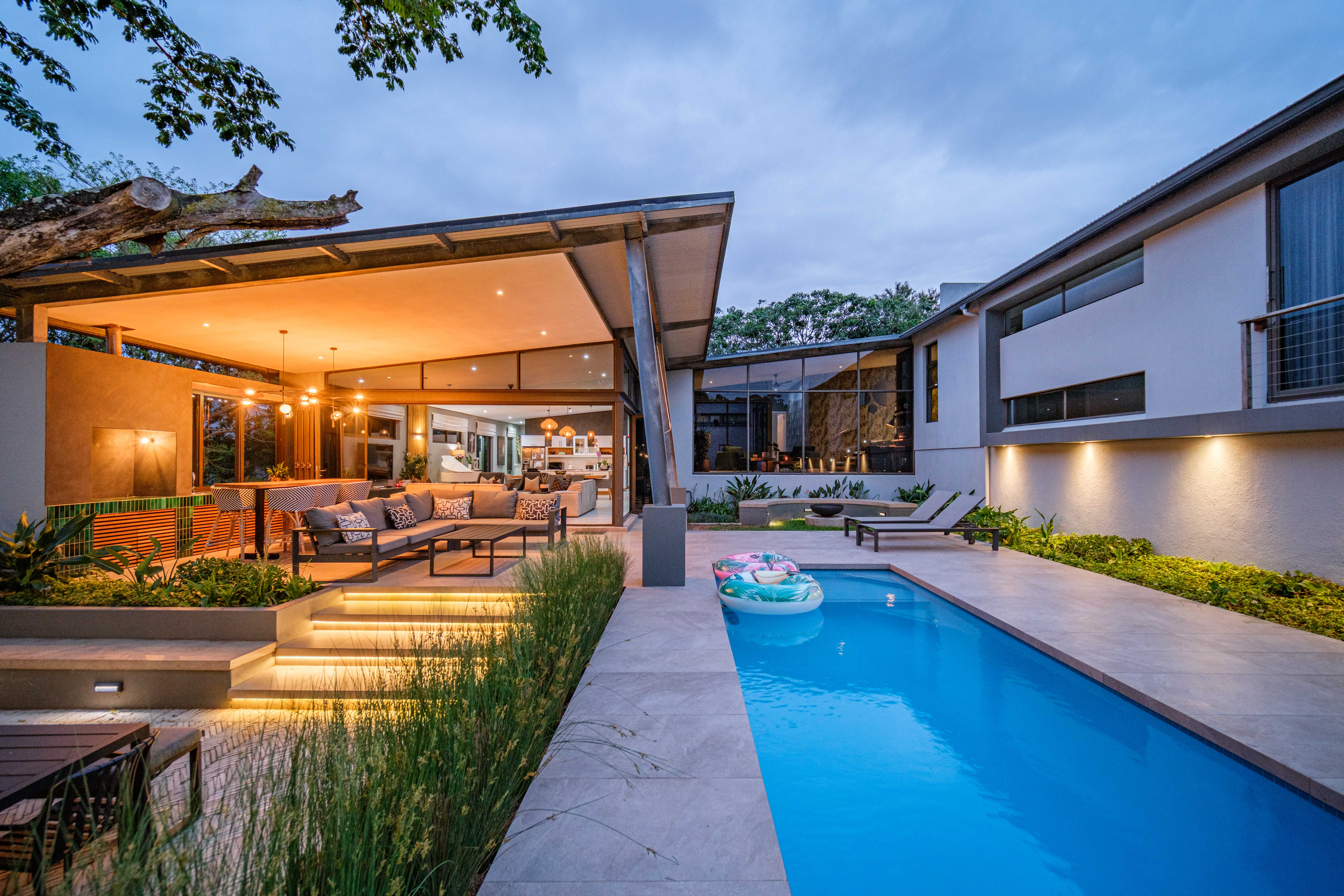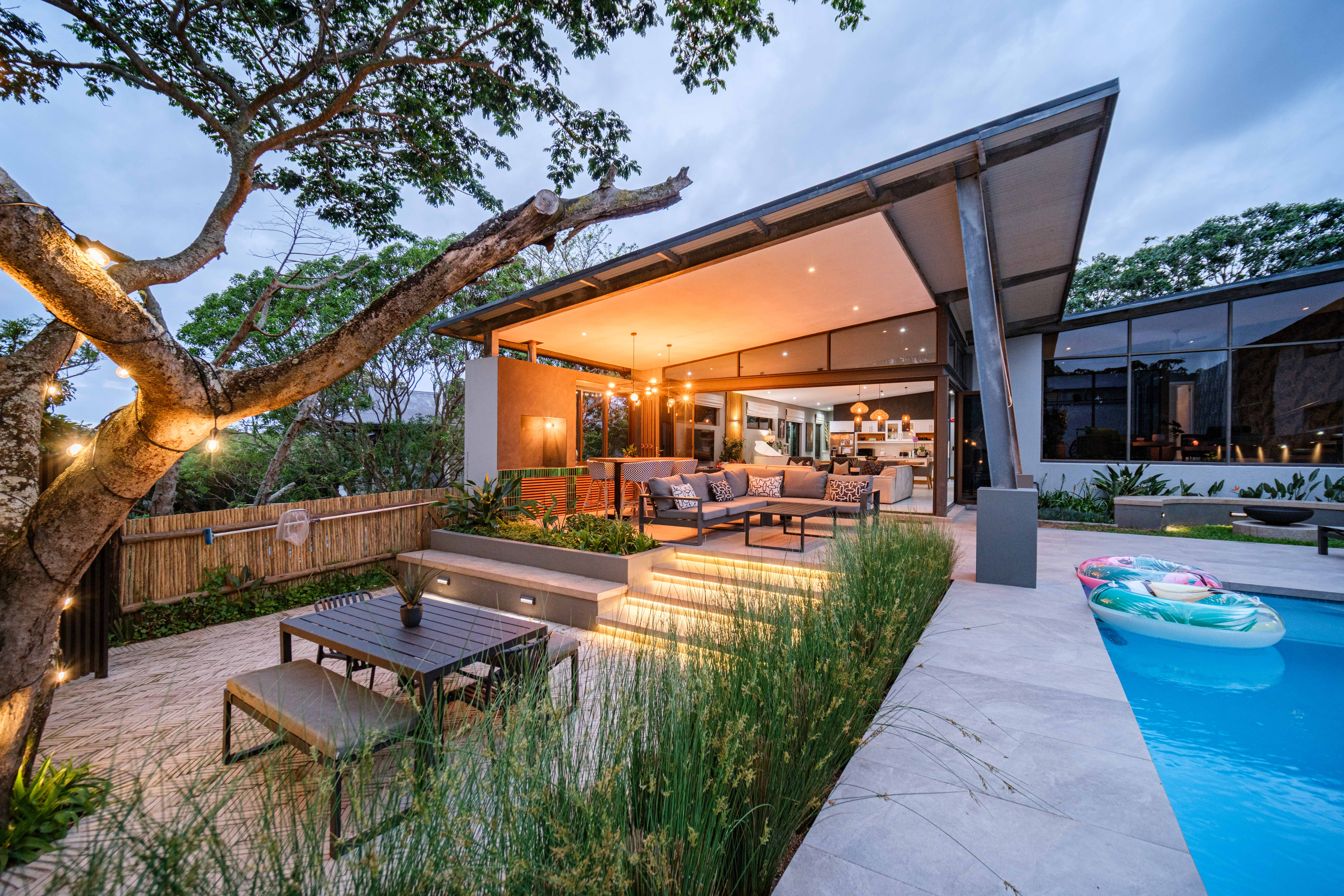 Experience the epitome of coastal luxury in this exquisite Simbithi Eco Estate home, where open-plan living meets modern elegance. The expansive living area flows effortlessly through large glass sliders onto a stunning entertainment space featuring a sparkling pool, fire pit, and braai area—perfect for relaxed afternoons or elegant evening gatherings. Every element has been designed for comfort and style, creating an inviting atmosphere ideal for both family living and entertaining guests.