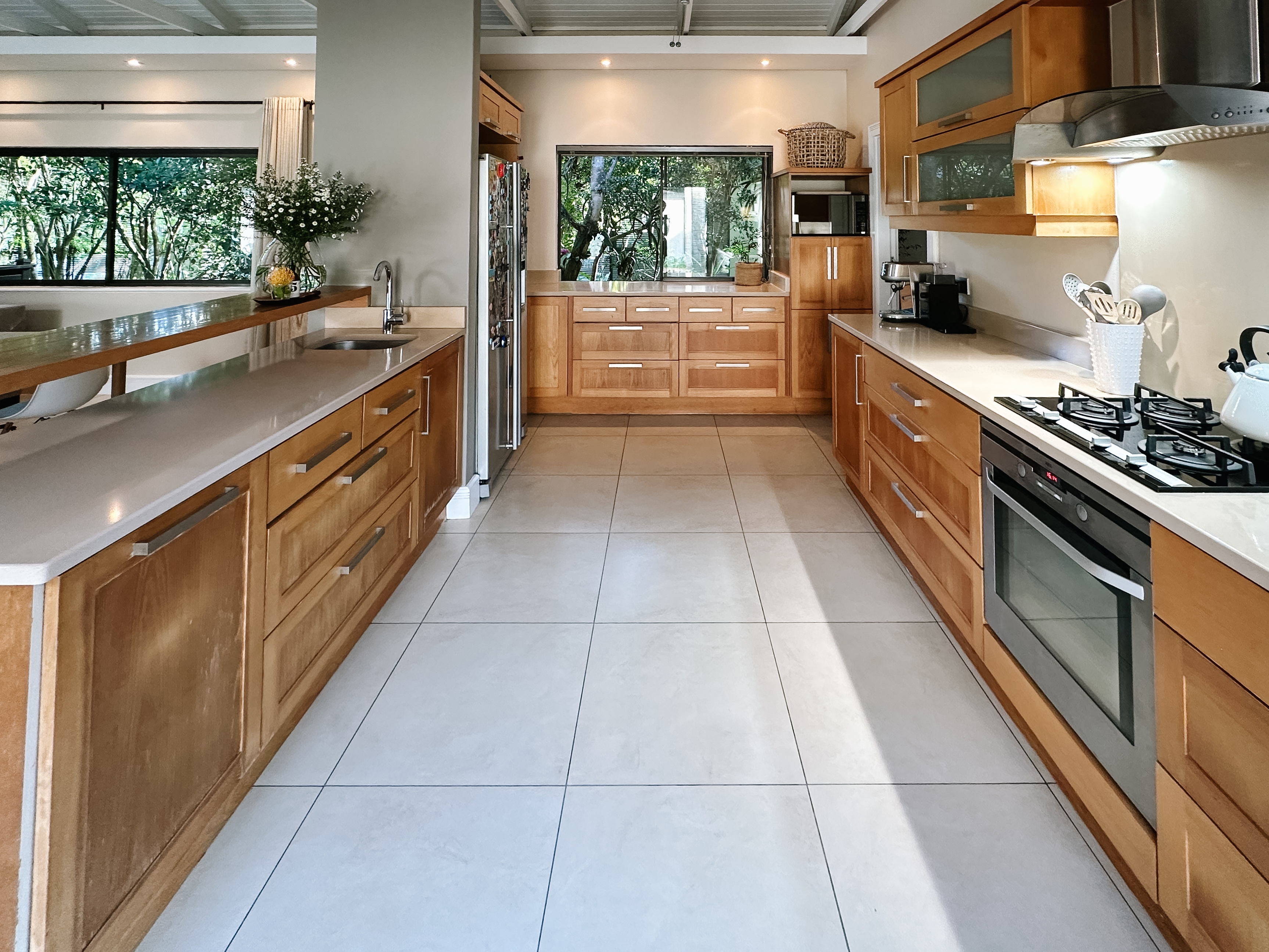 This property features three spacious bedrooms in the main residence, a open plan kitchen with spacious scullery tucked away, two generous living areas, and a seamless flow to a tranquil outdoor entertainment space with a sparkling pool overlooking the greenbelt.
