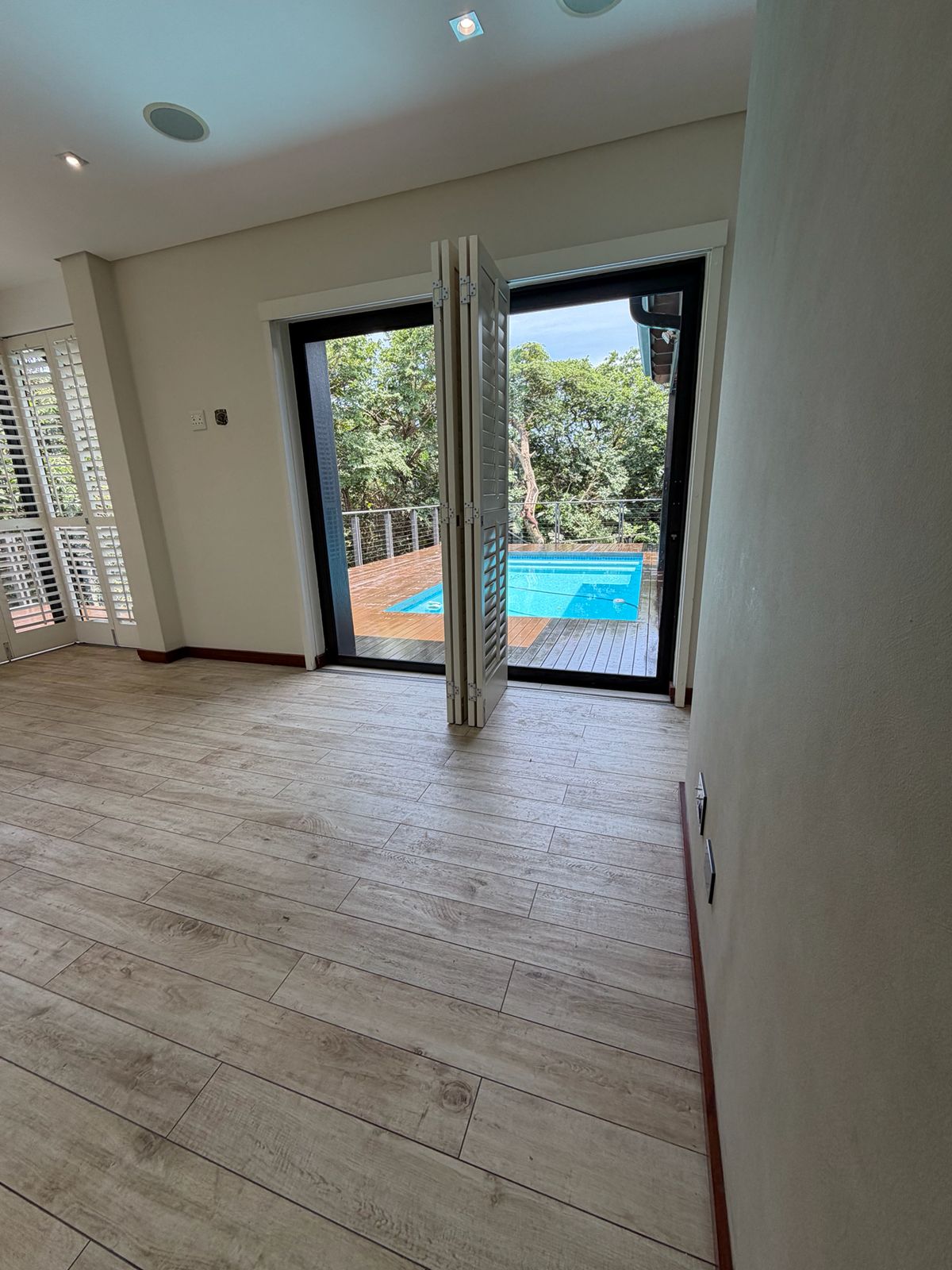 The main home welcomes you with spacious open-plan living areas where the lounge and dining room blend effortlessly. High ceilings and expansive glass doors flood the space with natural light and lead onto a generous entertainment deck overlooking the swimming pool—perfect for hosting or relaxing in privacy.