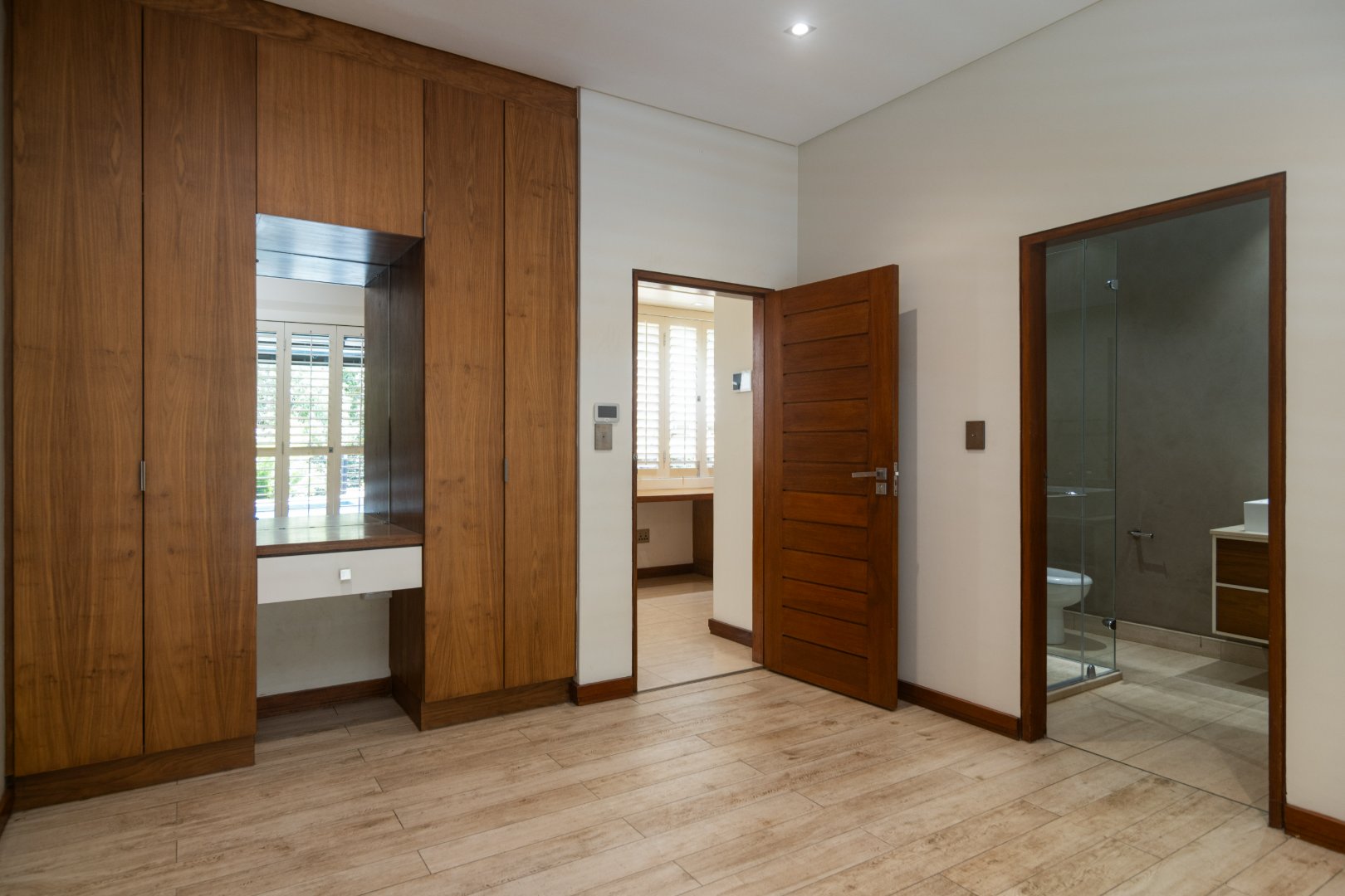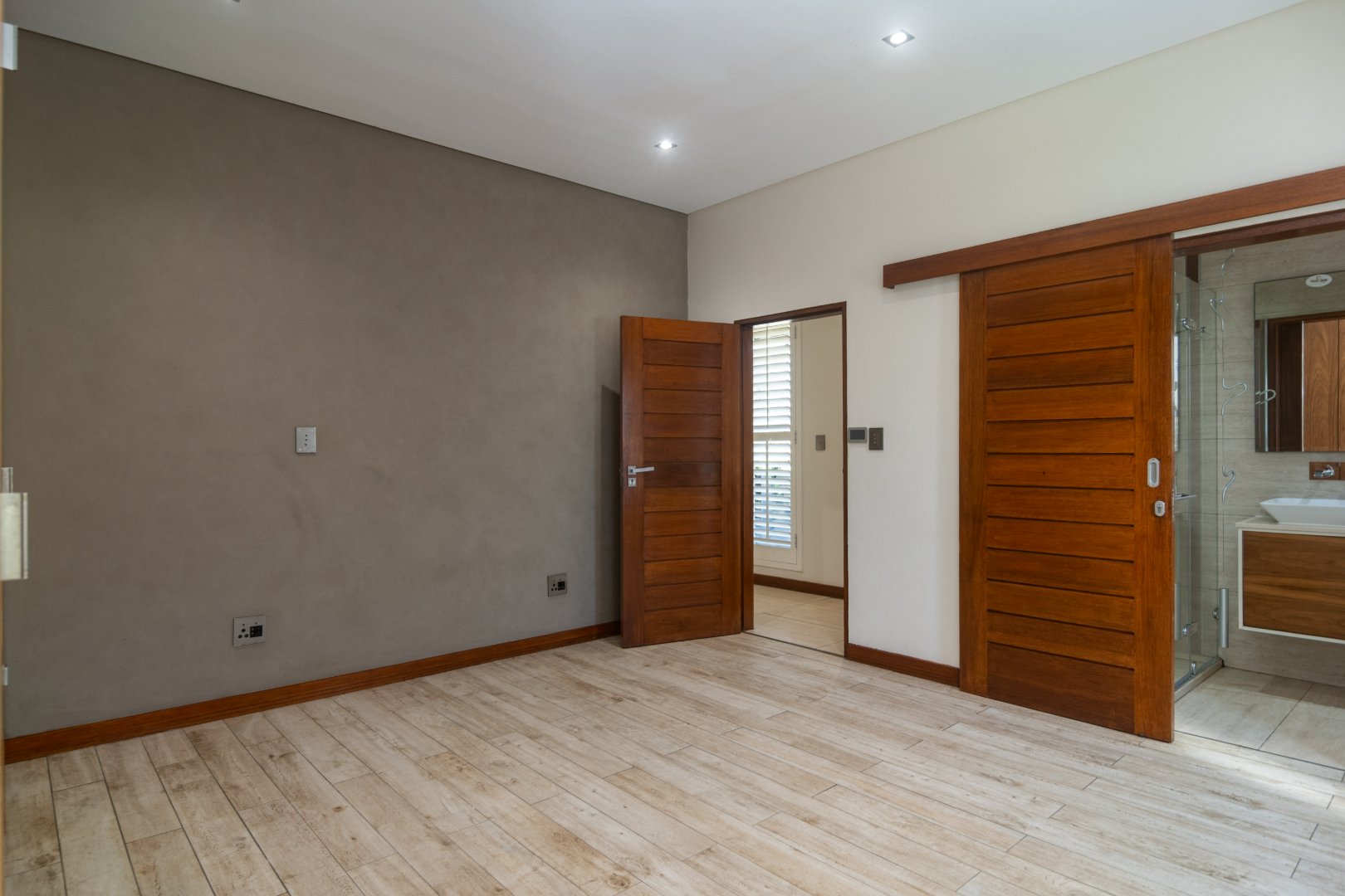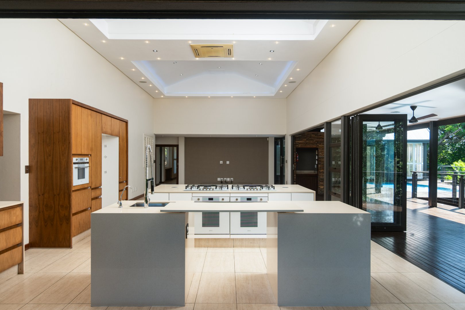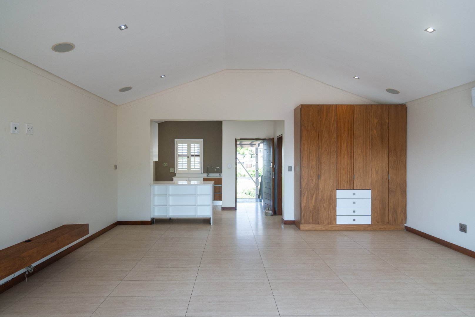 The open-plan kitchen, lounge, and dining area flow effortlessly, creating a generous living space ideal for both everyday living and entertaining. A separate scullery adds practicality, keeping the main living areas clean and uncluttered. Large glass doors allow an abundance of natural light to pour in and open onto a spacious deck overlooking the pool, with a well-positioned braai area that makes outdoor entertaining easy and relaxed.