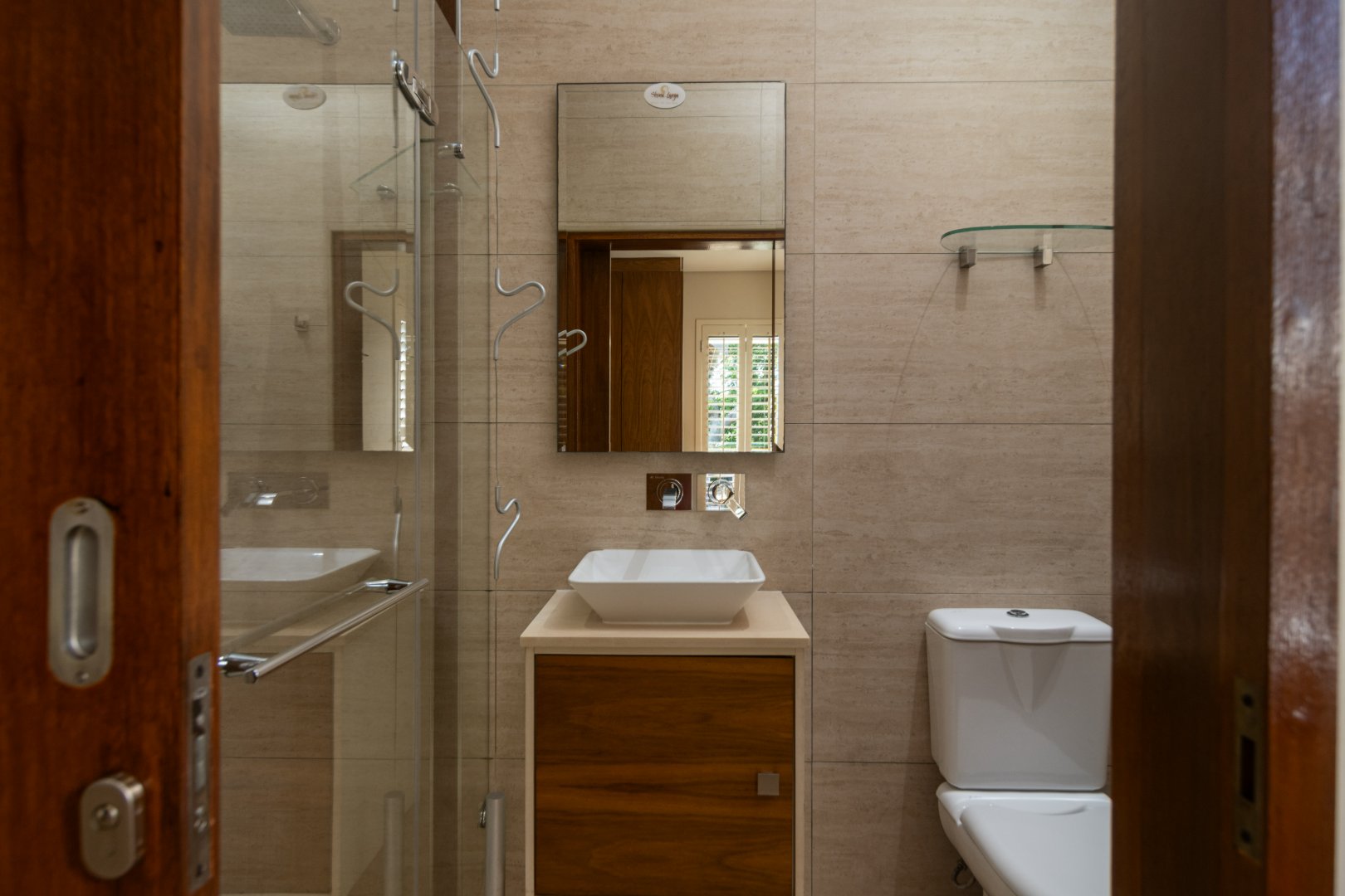 The home offers three well-appointed bedrooms and three and a half bathrooms, including a conveniently located guest toilet. The main bedroom features a full ensuite bathroom and opens directly onto the patio, allowing for a seamless indoor-outdoor feel. A second bedroom is also ensuite, providing added comfort and privacy for family or guests.