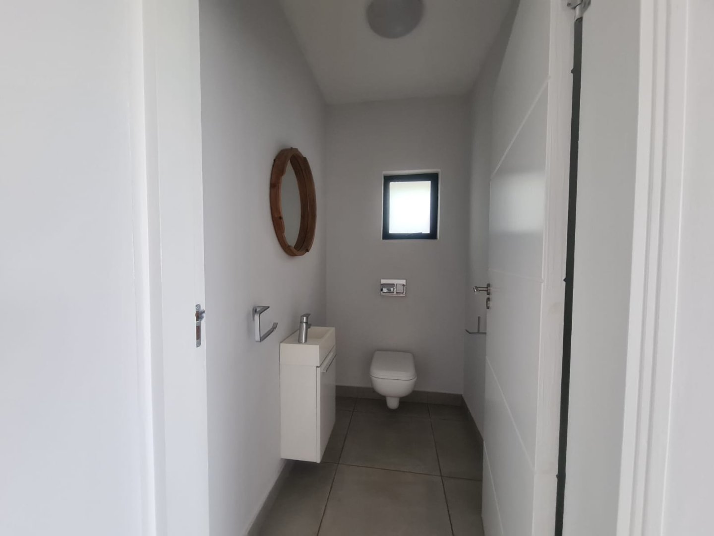 The open-plan living area downstairs seamlessly integrates the kitchen, pantry, and lounge, flowing onto a spacious veranda. Here, you’ll be captivated by stunning views of the lush estate, making it the perfect spot for morning coffee or evening gatherings. The double automated garage is equipped with fitted cupboards and a laundry area, offering ample storage and convenience.