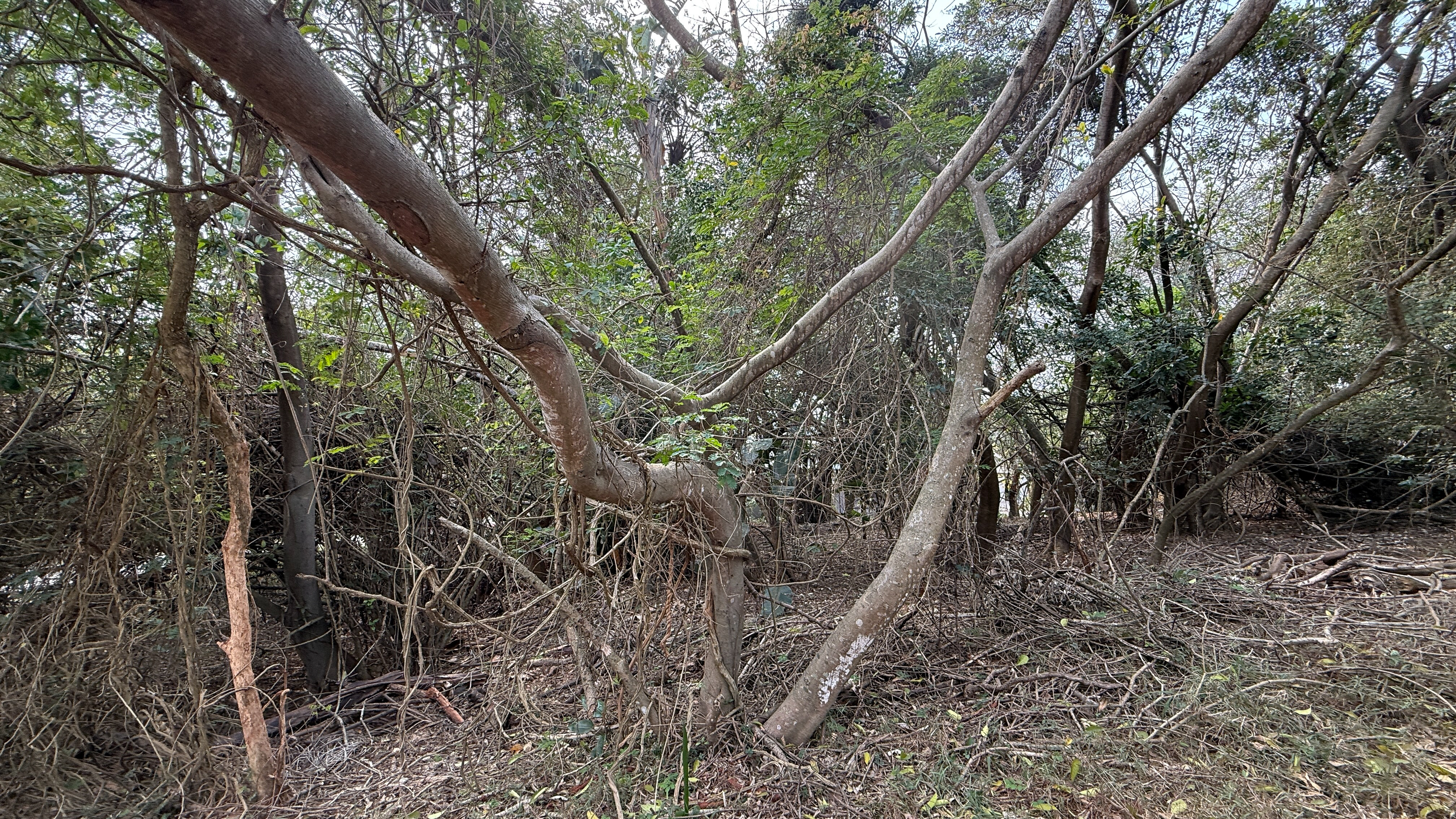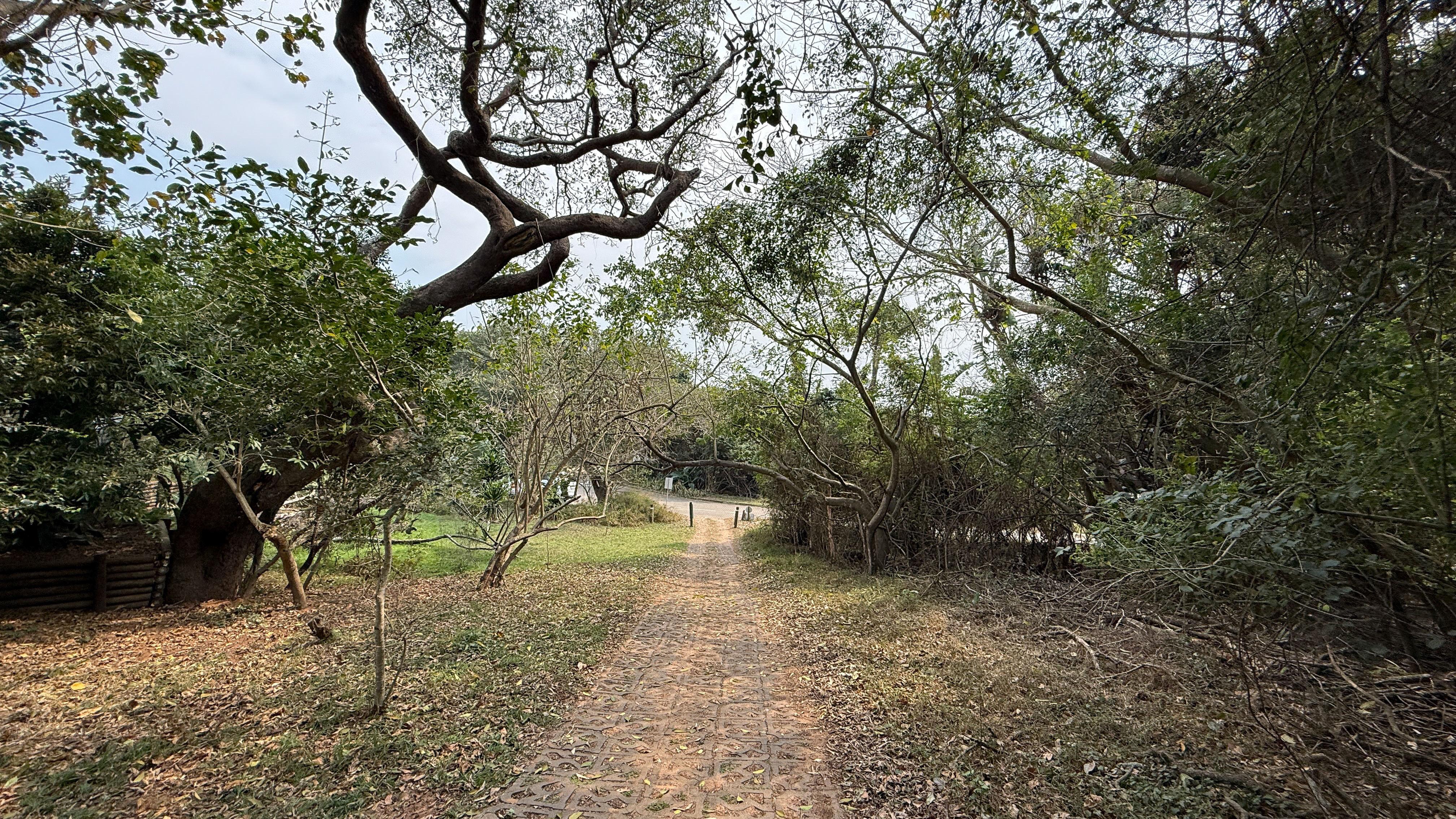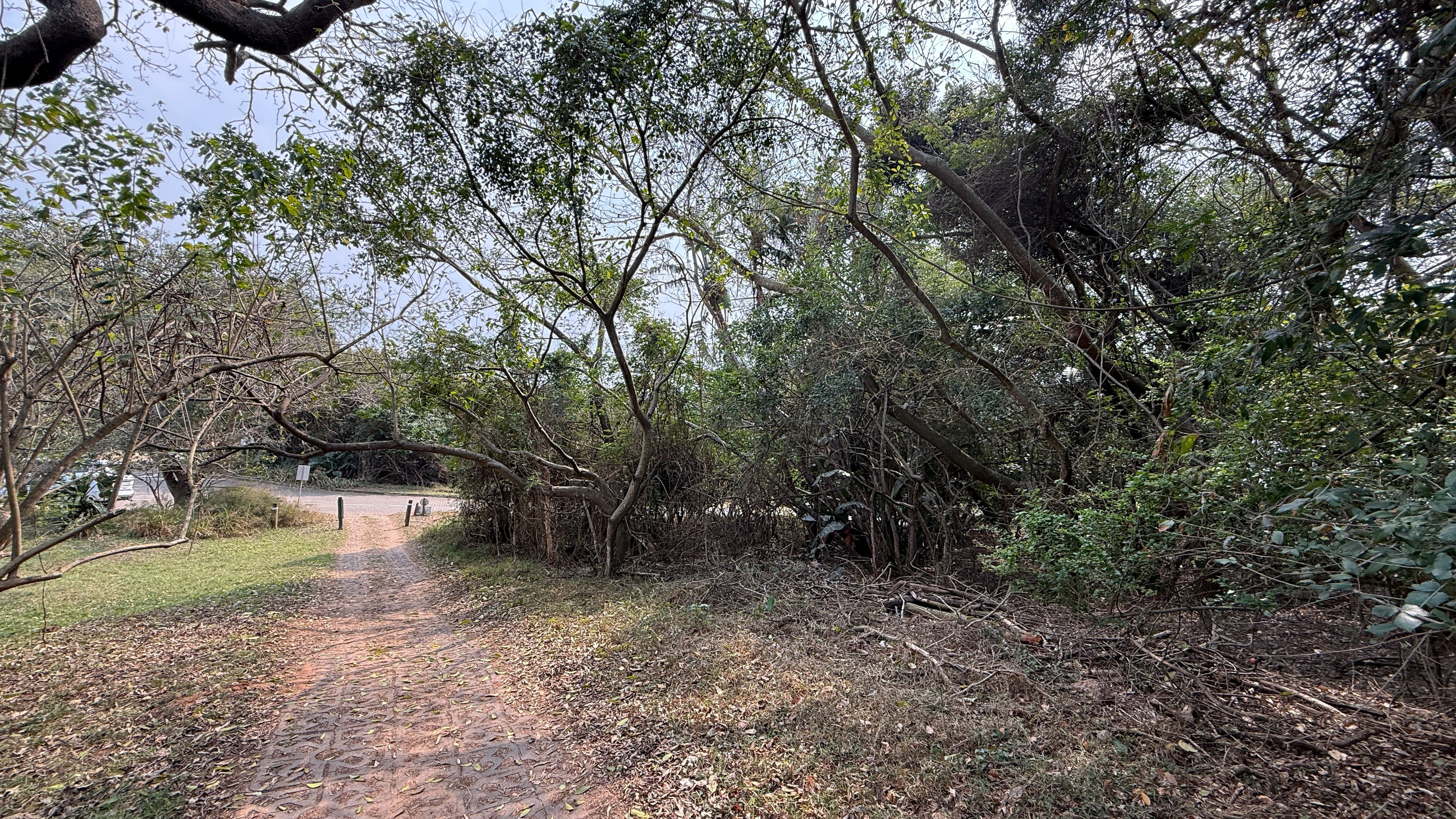 The stand is surrounded by lush natural vegetation, creating a tranquil, private setting with the added charm of distant sea views. Its location near a quiet cul-de-sac ensures minimal traffic, enhancing the peaceful ambiance of estate living.