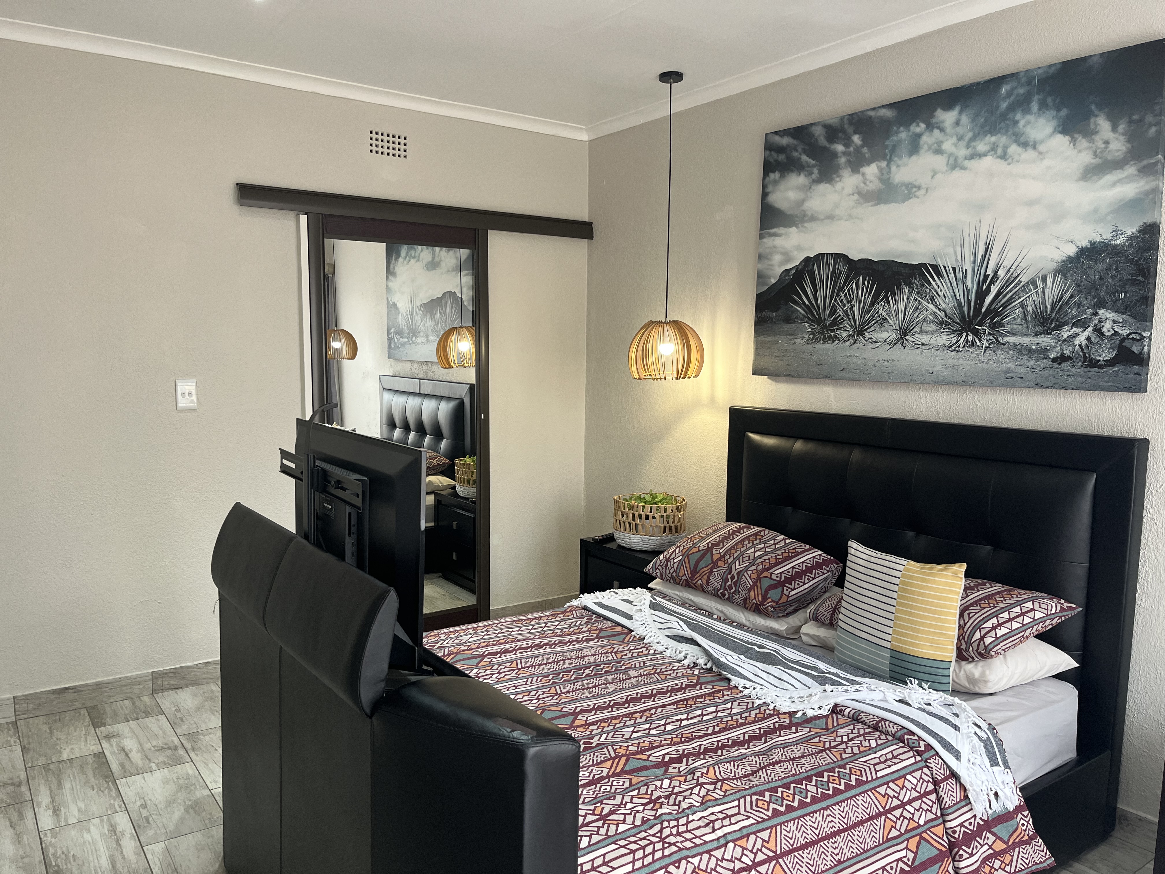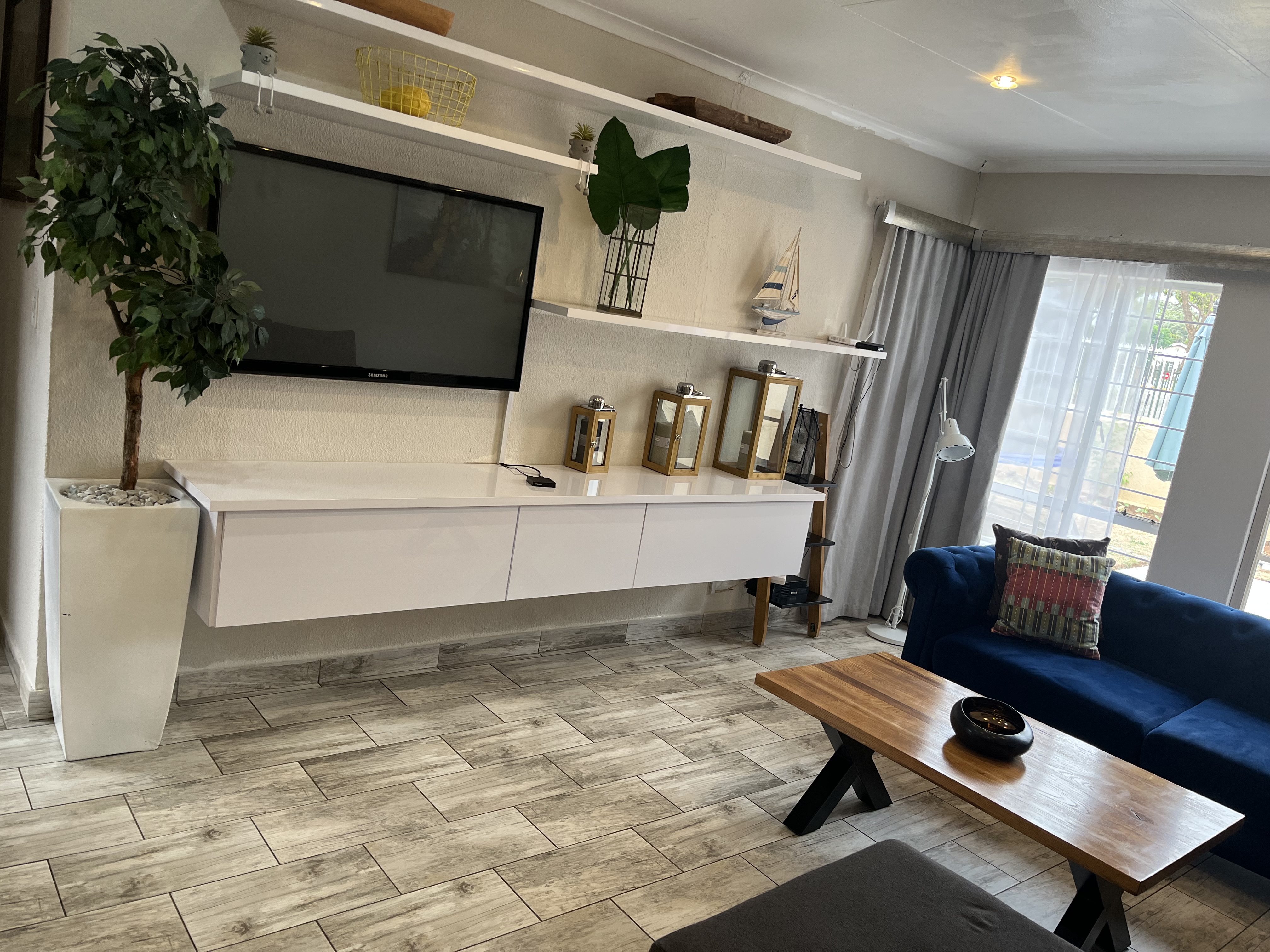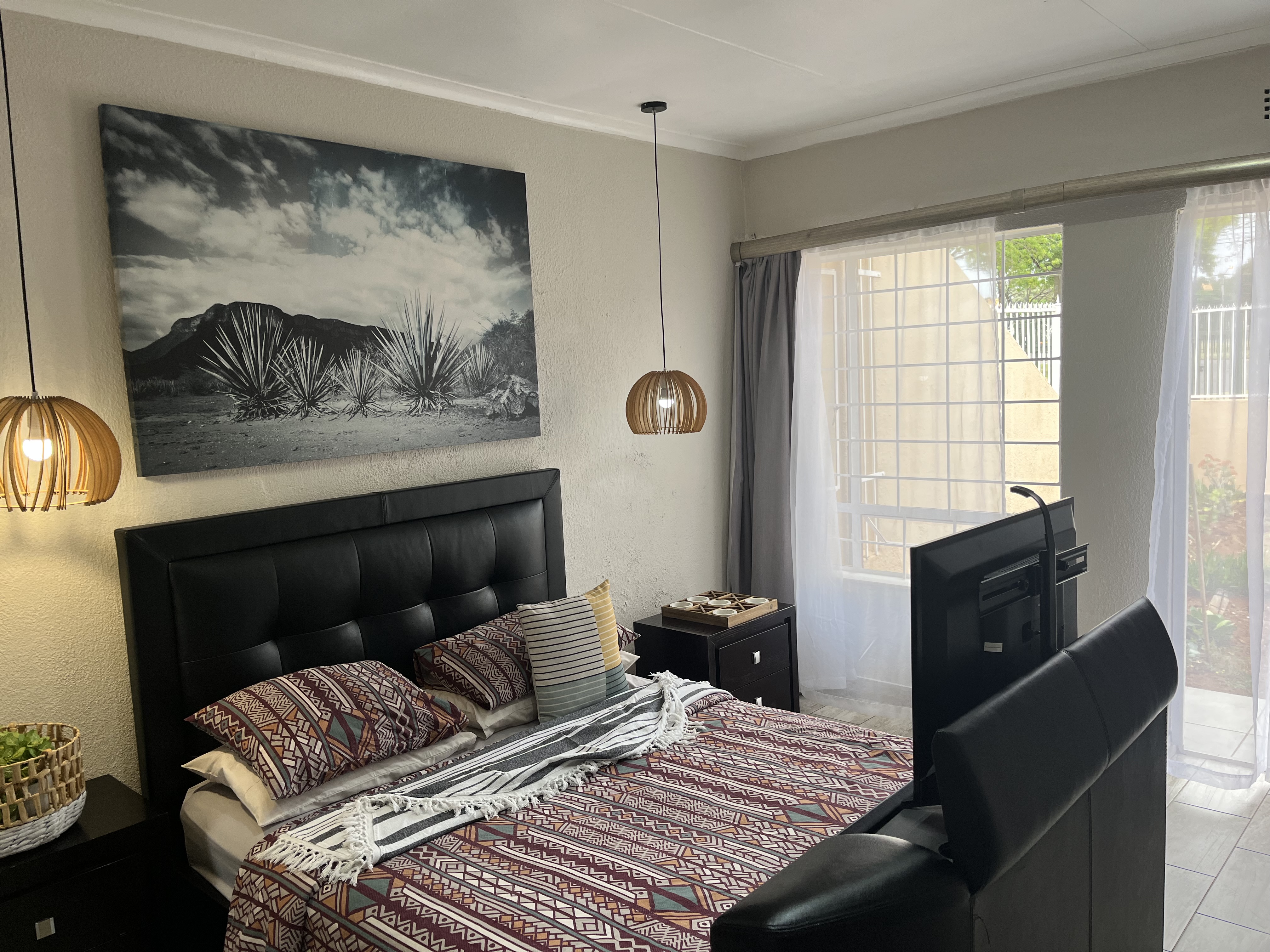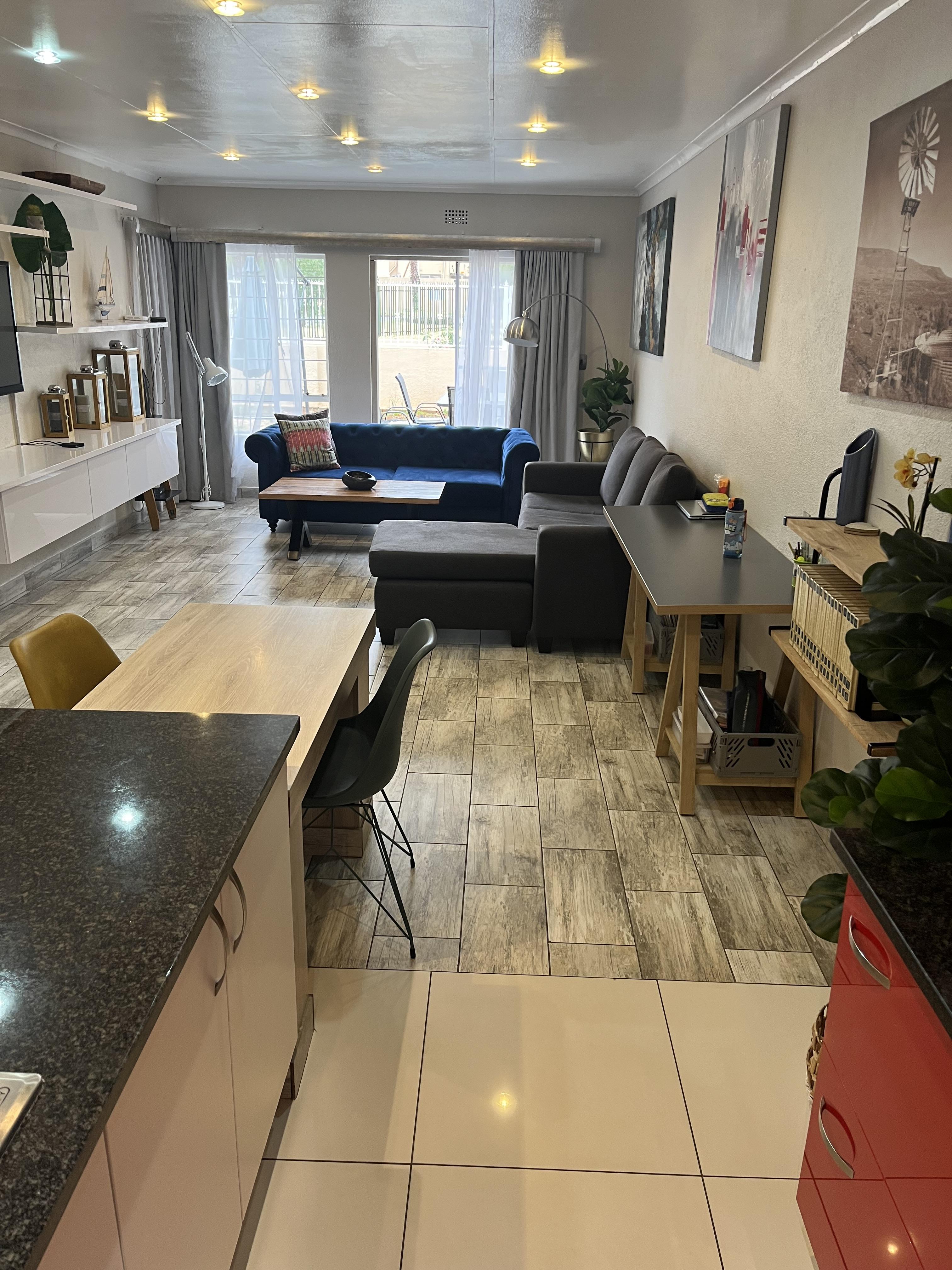 Lovely simplex in a secure, quiet complex. 2 Well-Sized, north-facing bedrooms with built-in cupboards and 2 newly renovated and modern bathrooms. Main bedroom with its own entrance to the garden and (1 ensuite).