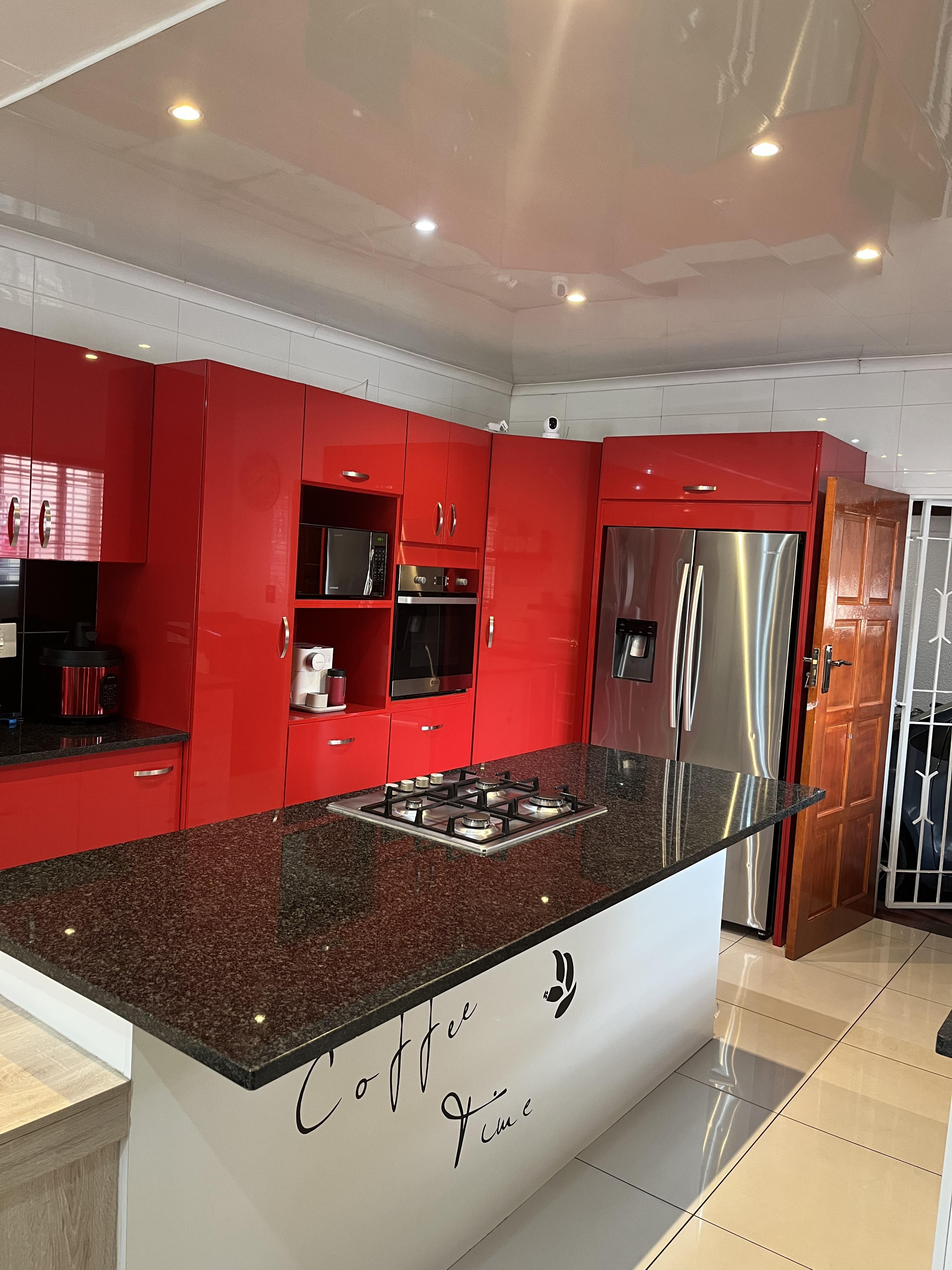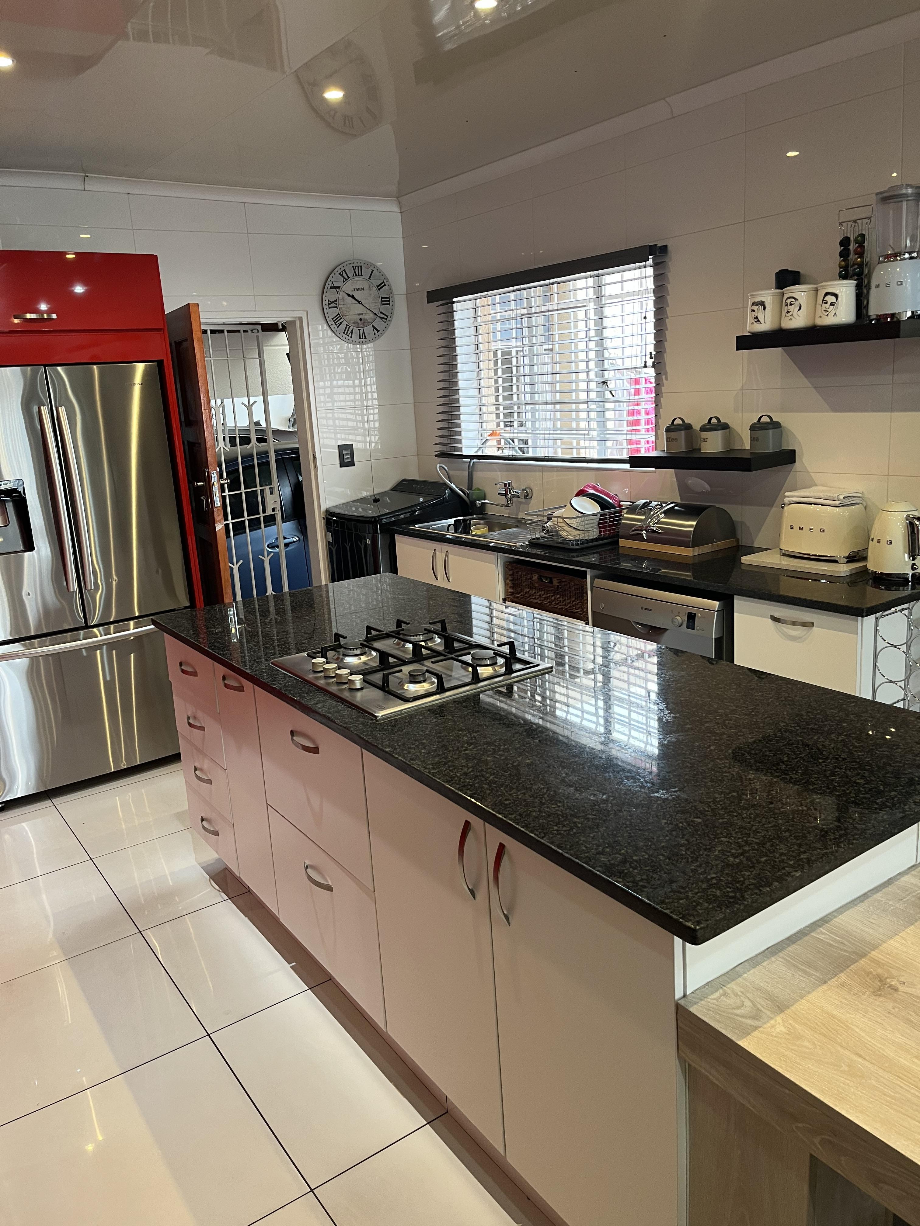 Tight security, electric fence, and alarm system! Burglar bars on all windows. Double lock-up garage.