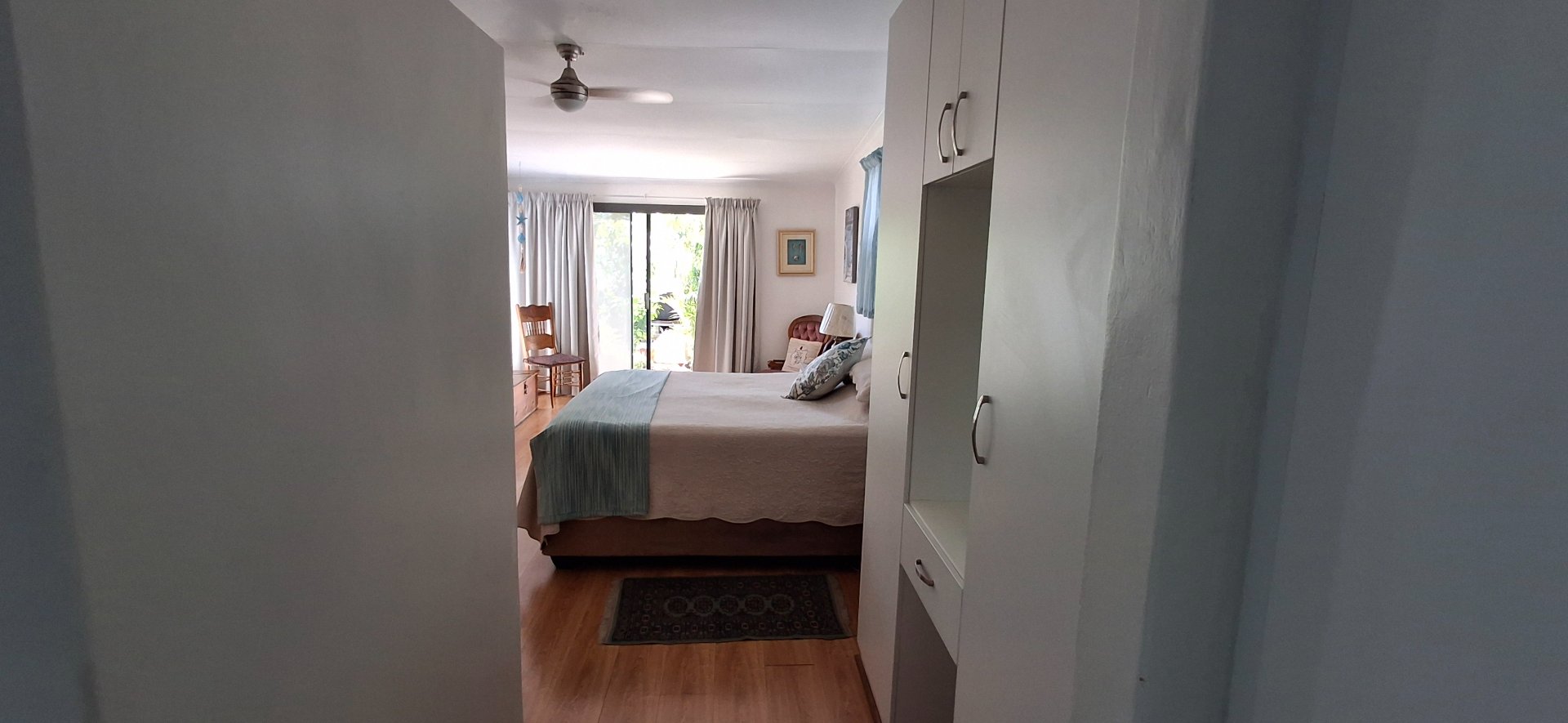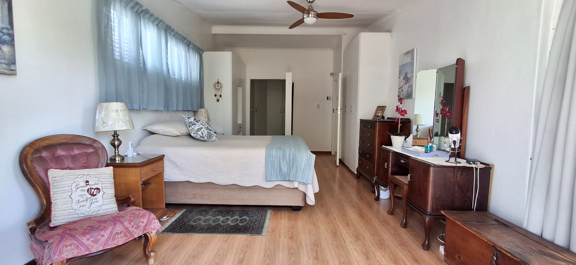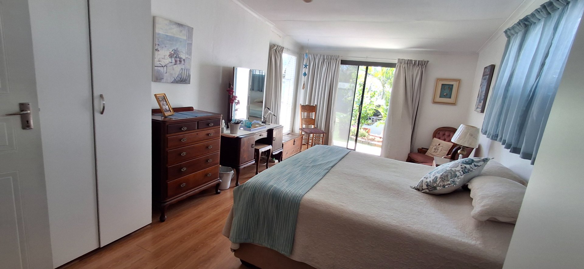 - A spacious main bedroom with a sliding door leading out onto the beautiful garden, and a separate dressing room with built-in cupboards