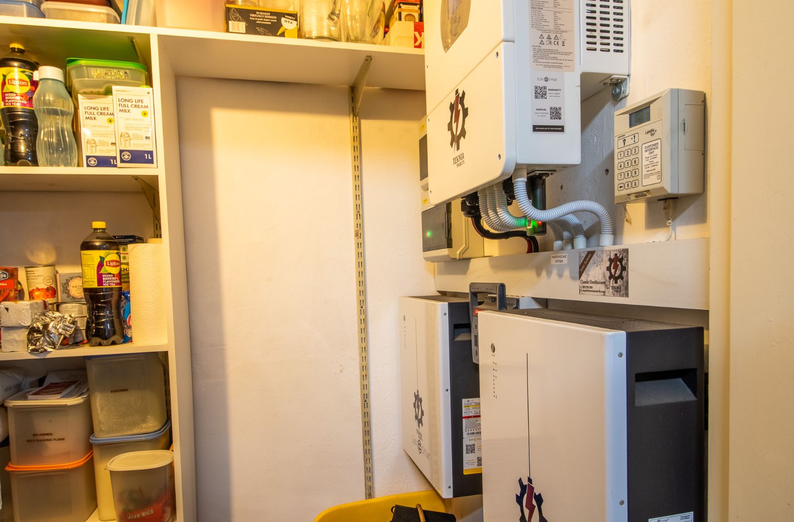 Sustainable Living: Benefit from cost-saving features including a borehole with 2400L water tanks and filters plumbed into the house, pre-paid electricity (when needed), and a solar system comprising 12 panels, an 8kW inverter, and two 5kW batteries.