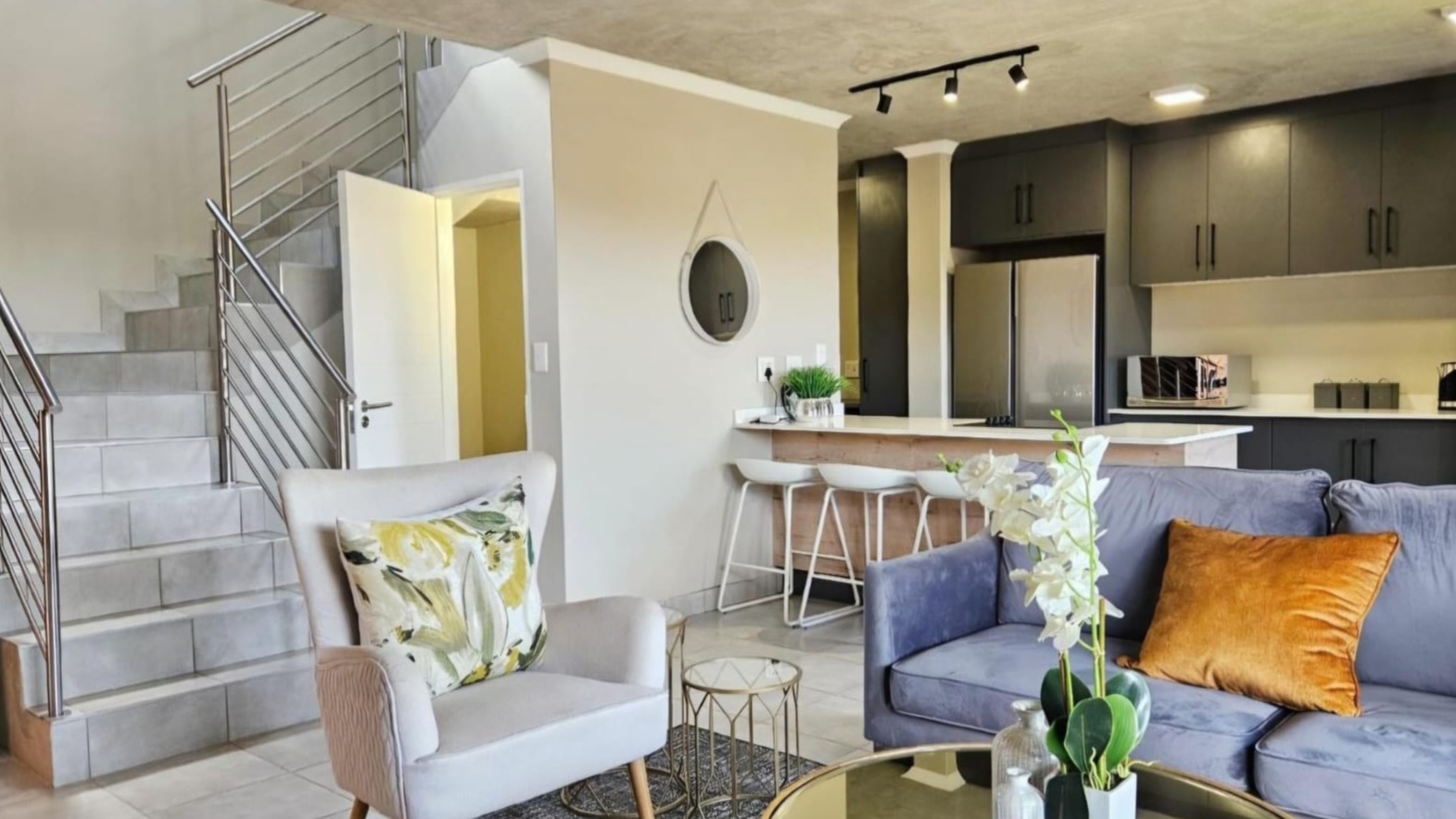 Situated in the new development called "IQ Meerendal". This fully tiled duplex has everything you need. Modern and spacious open plan living and dining room. Fabulous kitchen with granite tops, breakfast nook, floating cupboards, stove and hob and extractor fan. 3 spacious bedrooms with ample cupboard space and 2 full bathrooms, 1 en-suite and downstairs guest bathroom.