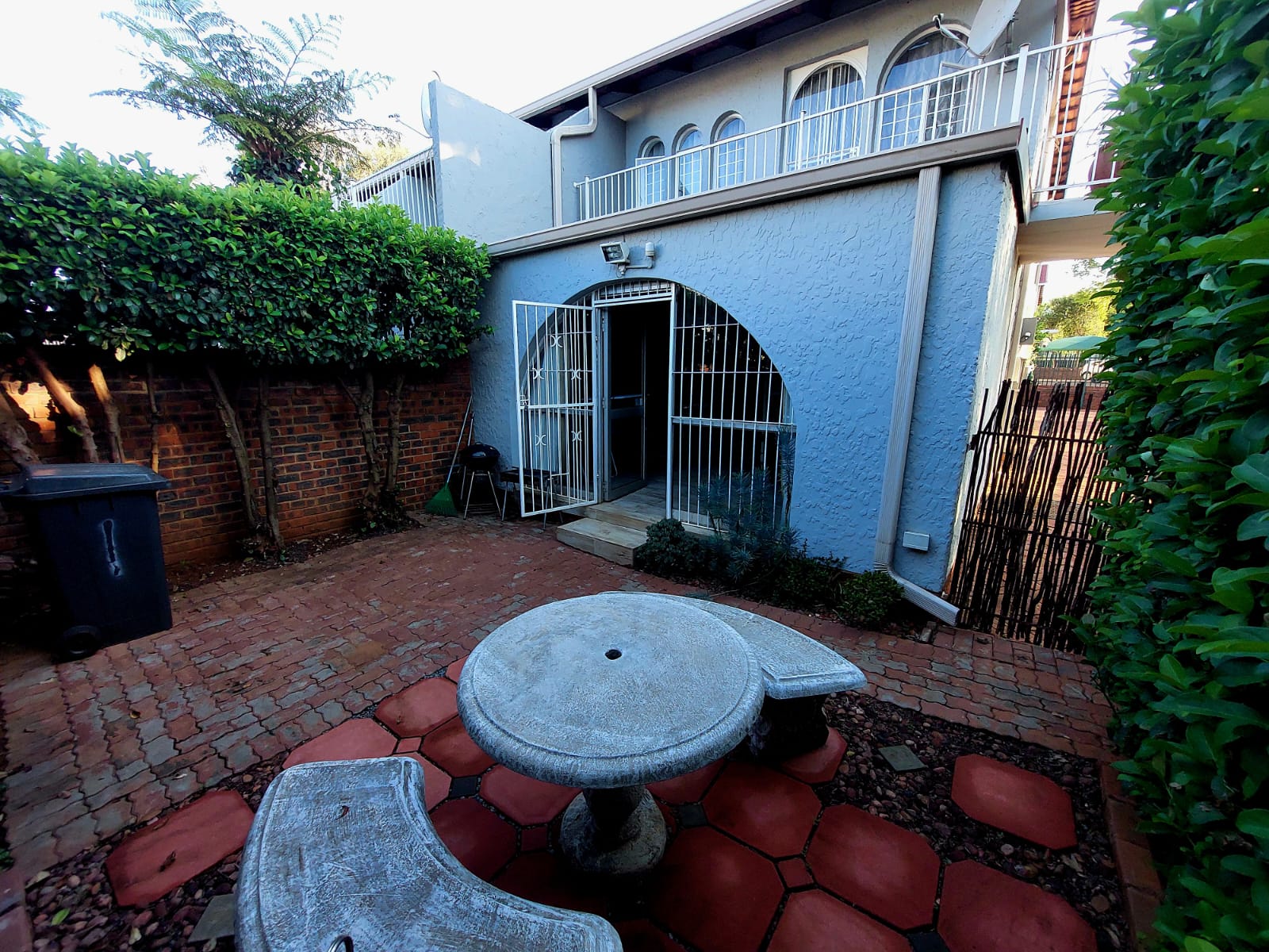 AVAILABLE 1 APRIL 2026. Monthly rent R9,900. Deposit R9,900. Once-off admin fee R2,750. Water included. Conventional electricity through City of Tshwane. 1 x small dog or cat allowed upon approval of body corporate. This spacious duplex offers everything you need for comfortable living with a very spacious open plan living area and dining area leading to the enclosed sun stoep. Guest toilet downstairs. Kitchen with ample storage space and gas stove with electric oven. Private garden area.