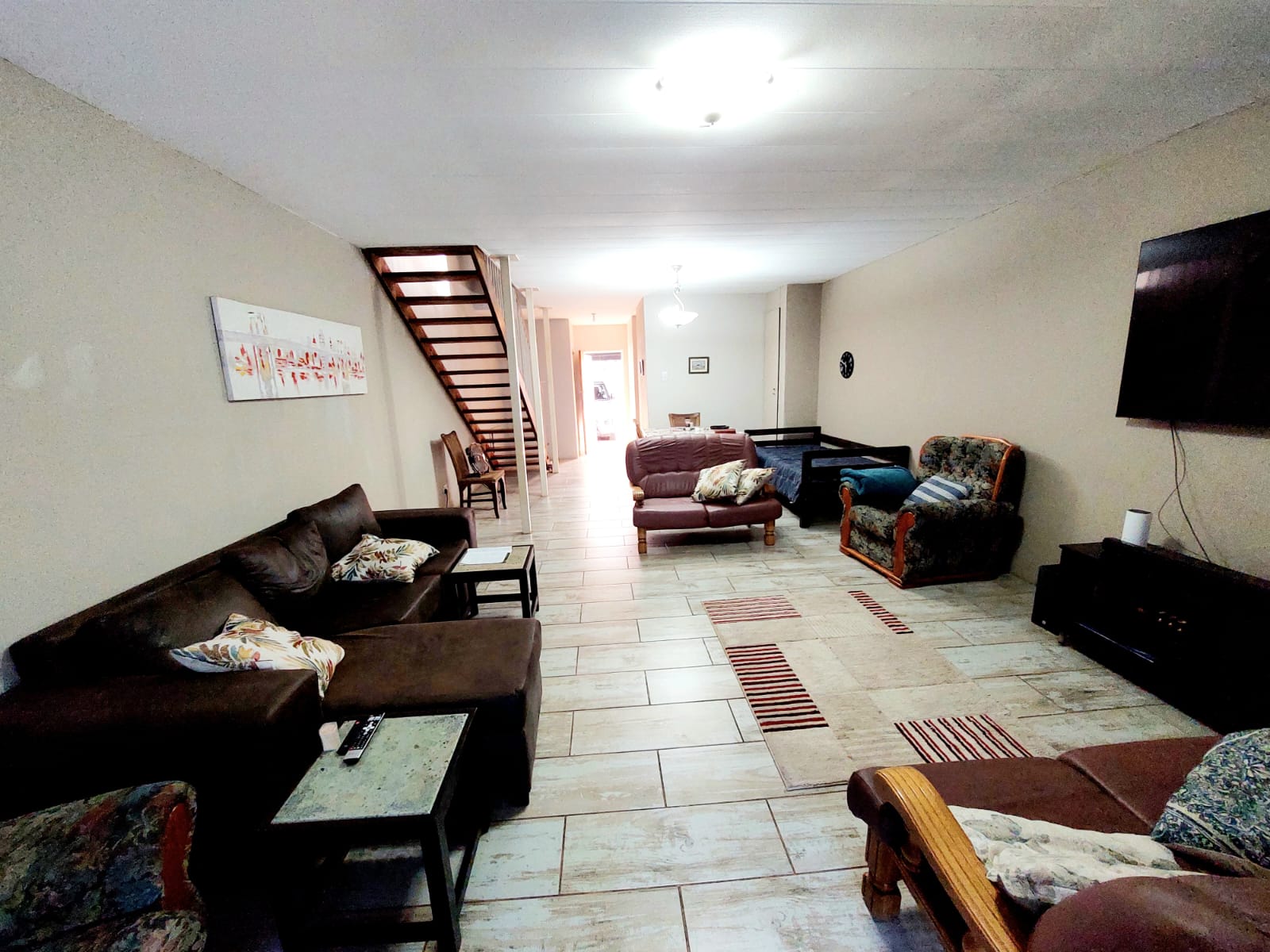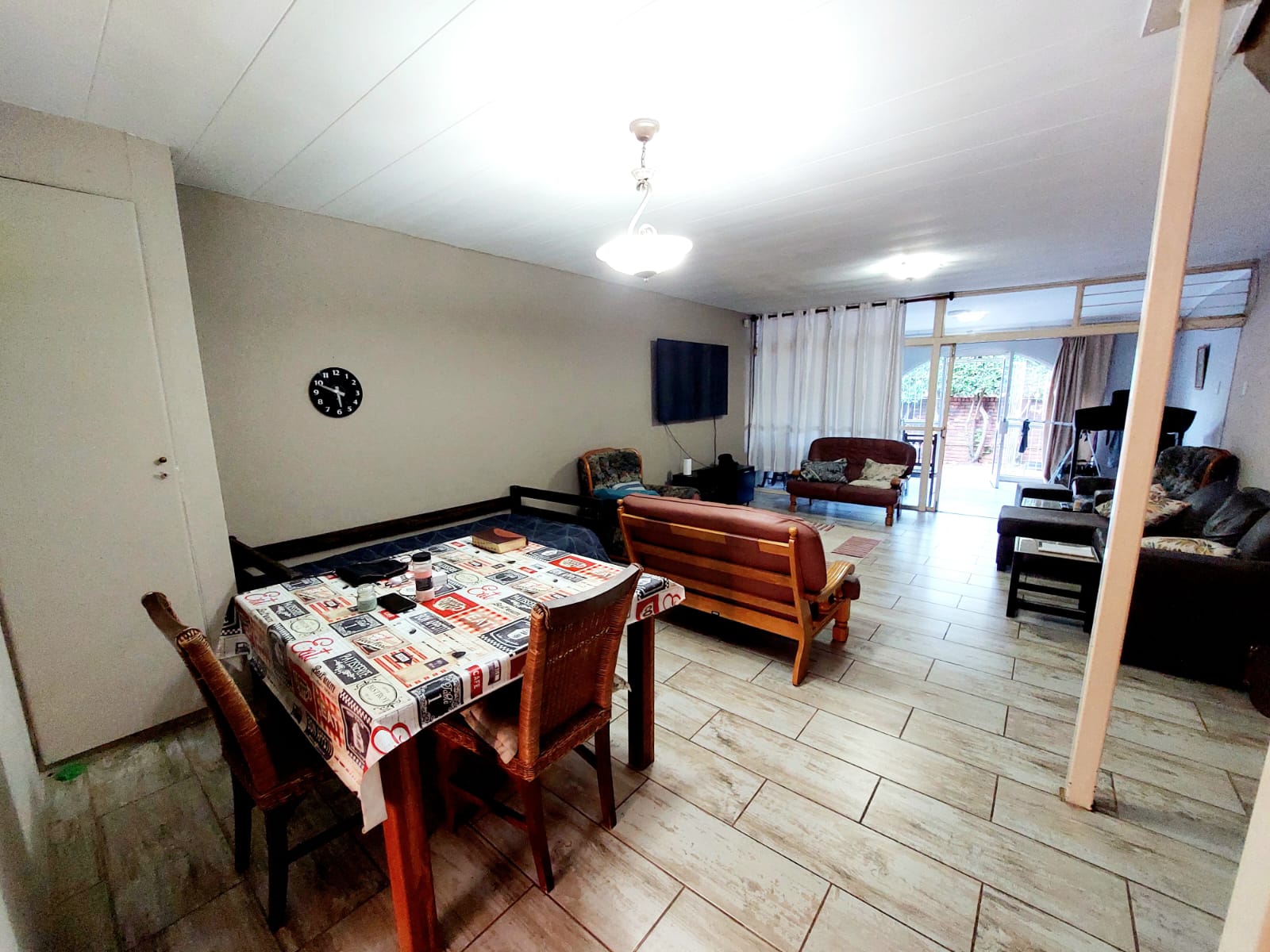 Upstairs you will find 3 spacious bedrooms with built-in cupboards. Northern bedroom with balcony. Ample additional linen cupboards. Modern bathroom with shower, toilet and basin. Additional storage room next to carport with washing machine connection. 1 x lock-up carport and 1 x open parking inside complex. Conveniently located next to the Sinoville shopping centre and Stephanus Roos Primary, this duplex offers space, practicality and everyday convenience.