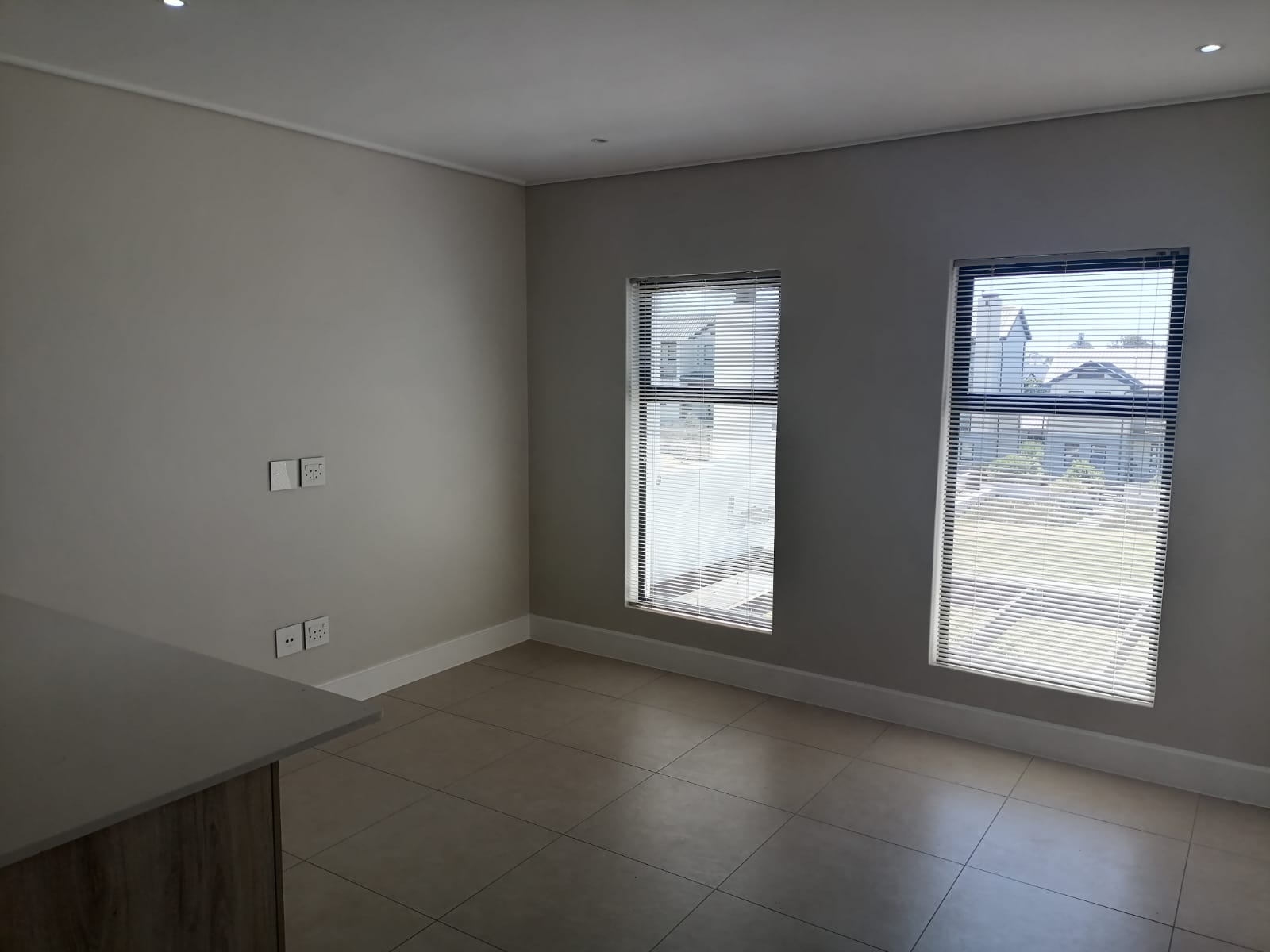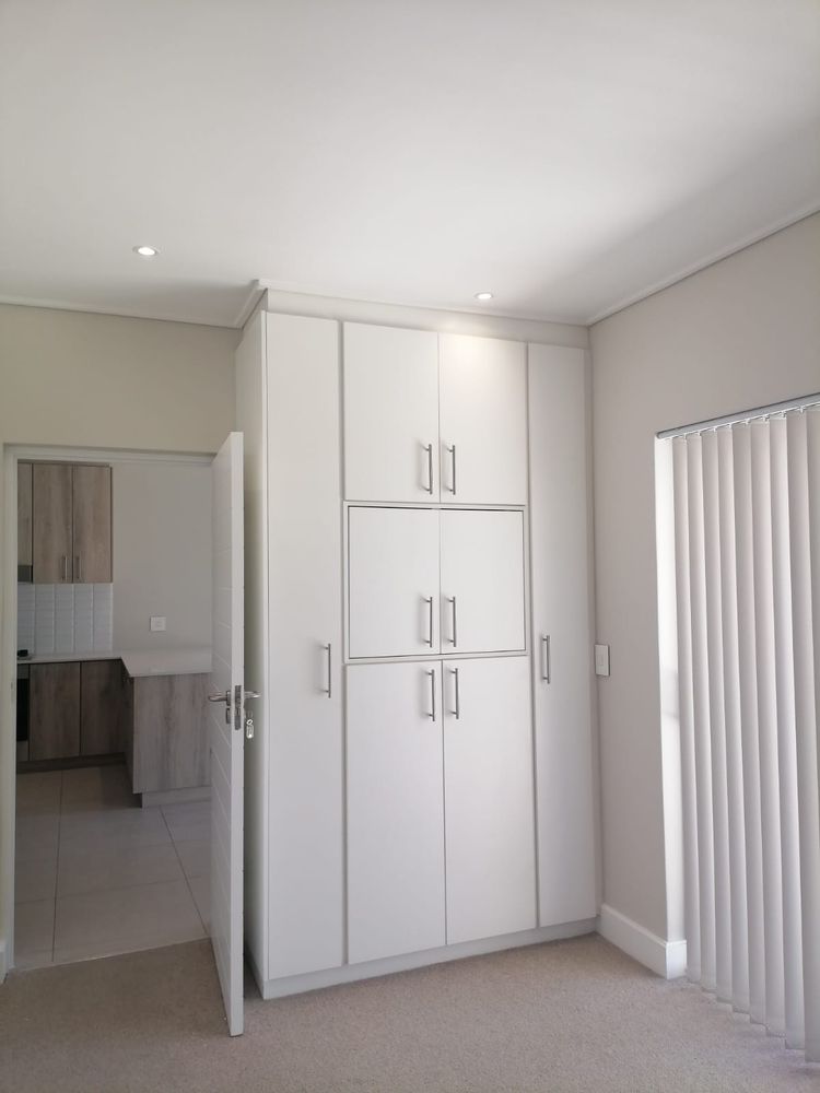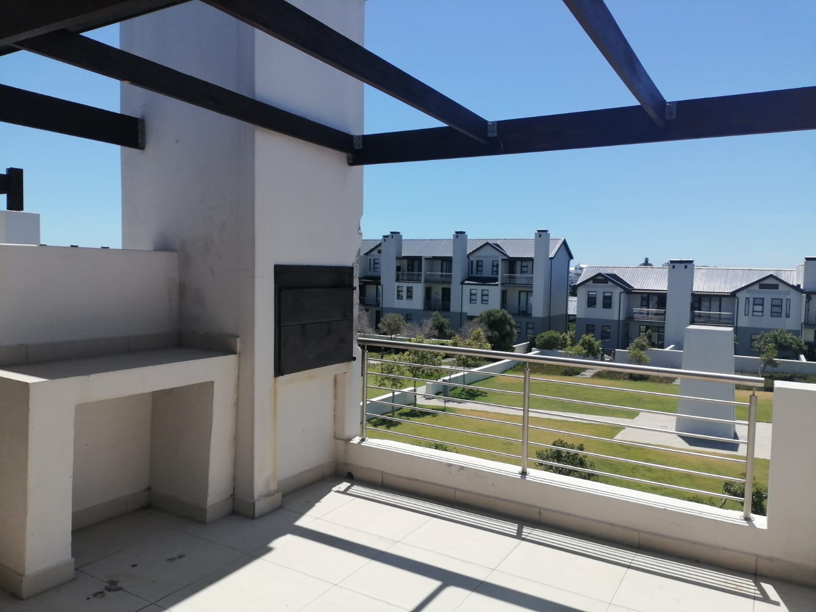The two bedrooms are well-sized and feature built-in cupboards, with one bathroom. The living area is an open-plan space connected to a well-appointed kitchen with ample built-in storage, ideal for entertaining. A balcony with a braai offers relaxed outdoor living, and the unit is on the 1st floor, providing good natural light. There is 1 dedicated parking bay, and small pets are considered.