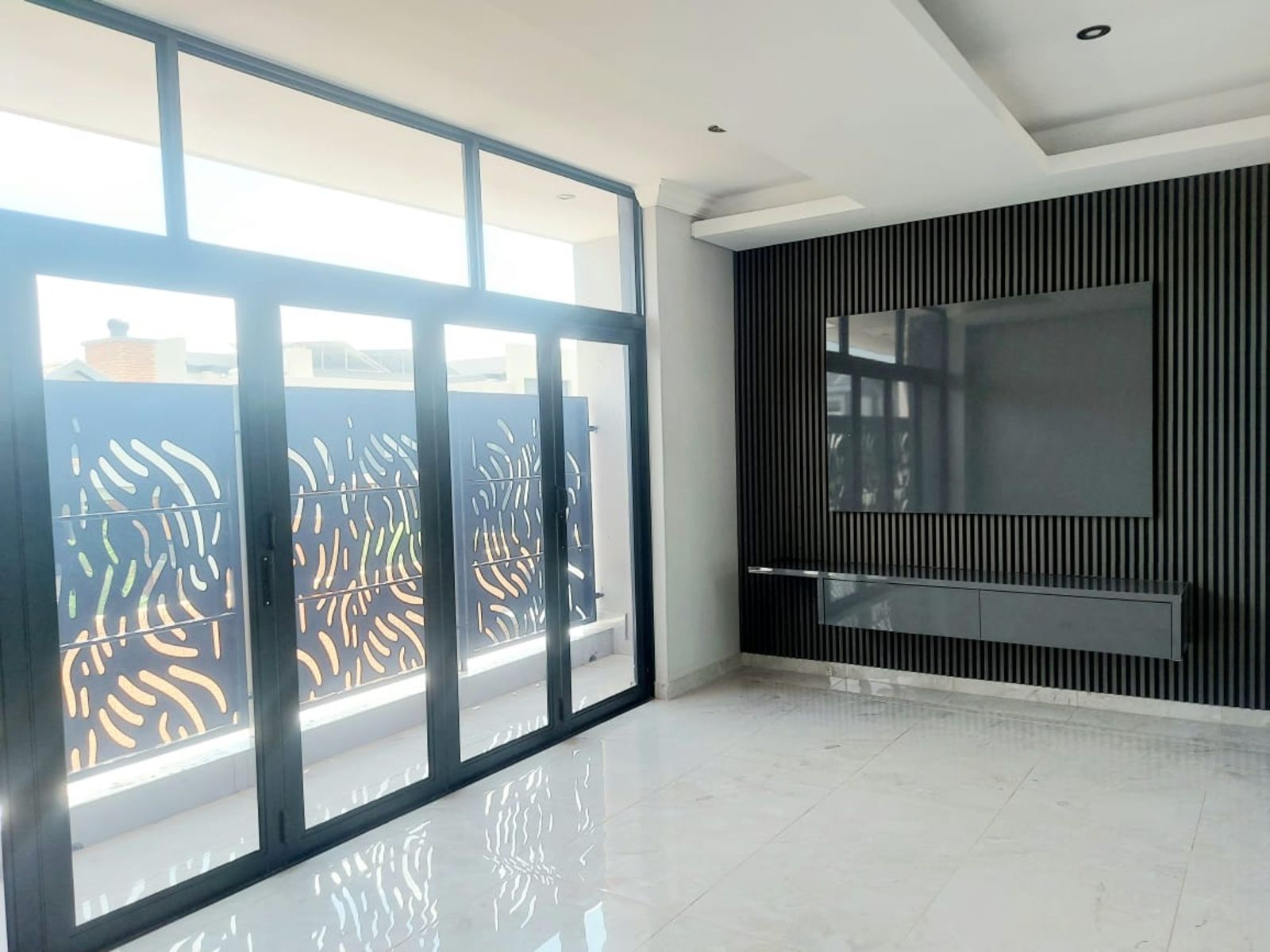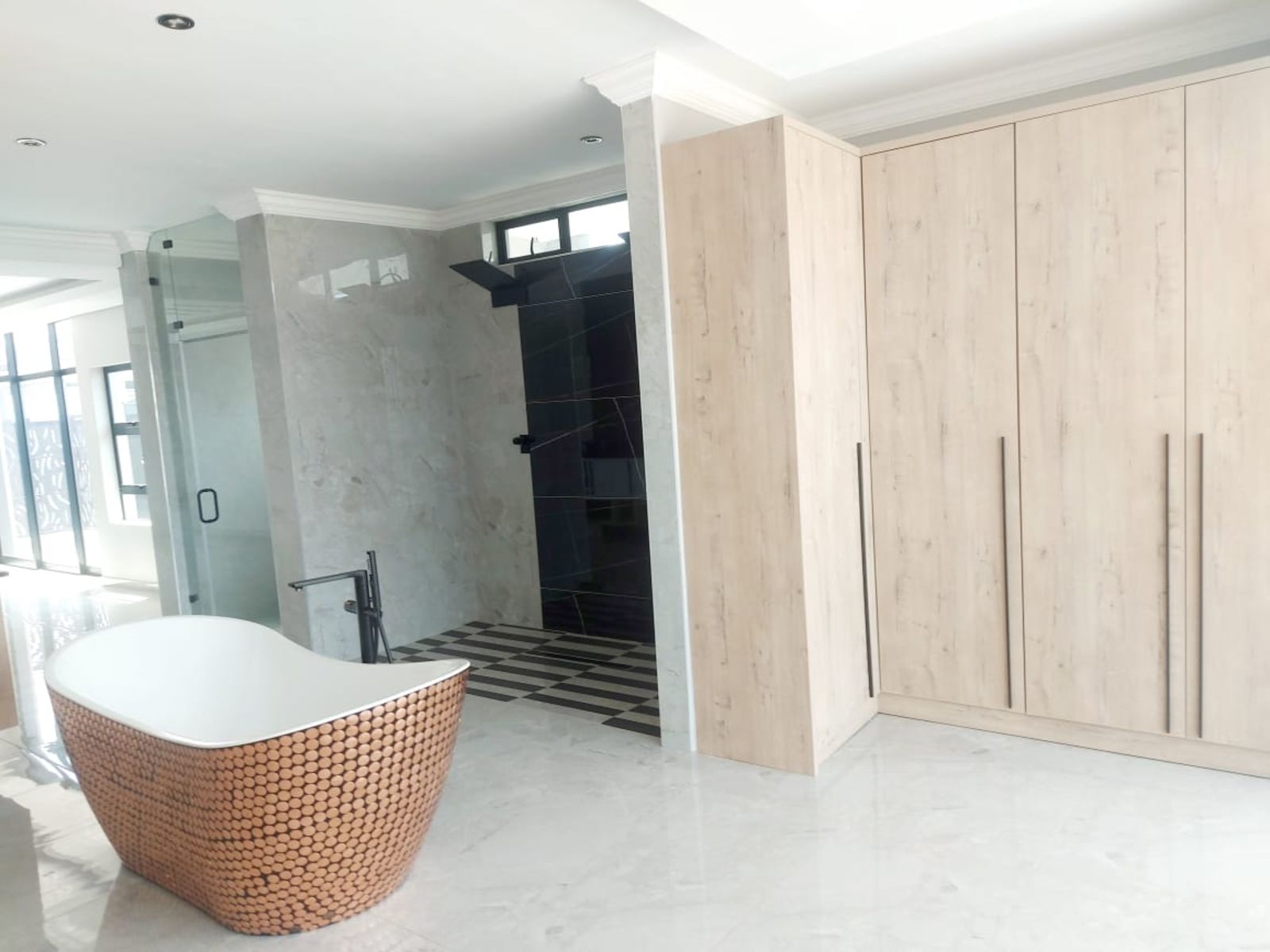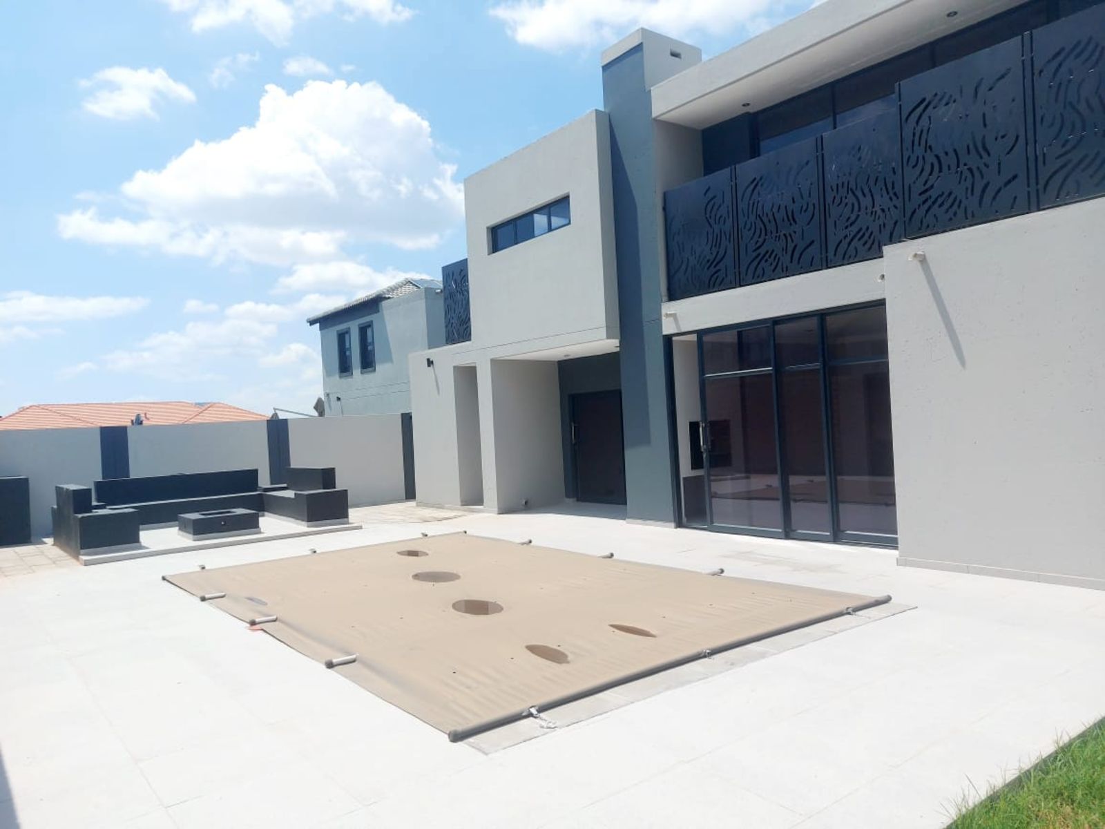 The opulent main suite boasts an open-plan luxury bathroom with serene views overlooking the patio. Designed for ultimate entertainment, the home features a stylish boma, a sparkling swimming pool, and a private, beautifully landscaped garden.