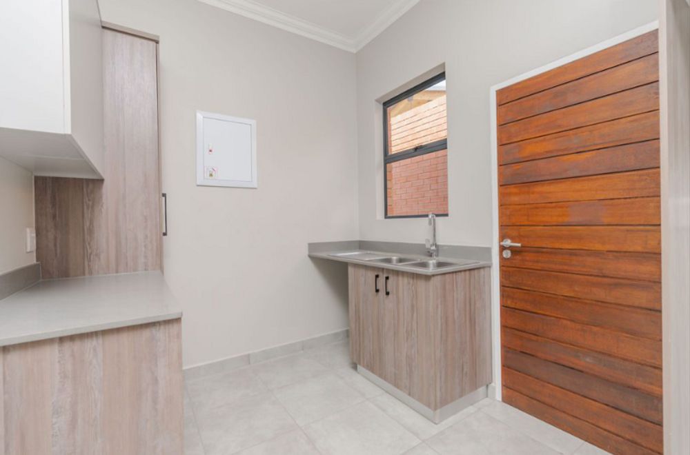 The finishes are all modern and elegant. The living areas and kitchen are open plan. The kitchen has granite countertops, gas stove and electric oven with a separate scullery area. Leading out from the living areas is a beautiful enclosed patio with a built in braai and a small, low maintenance garden. The courtyard houses a 950L JoJo tank, back up solar UPS, pre-paid electricity, water is metered and Fibre is installed. The estate has a hiking trail in the nature reserve, catch and release fishing, picnic areas and various children’s play areas.