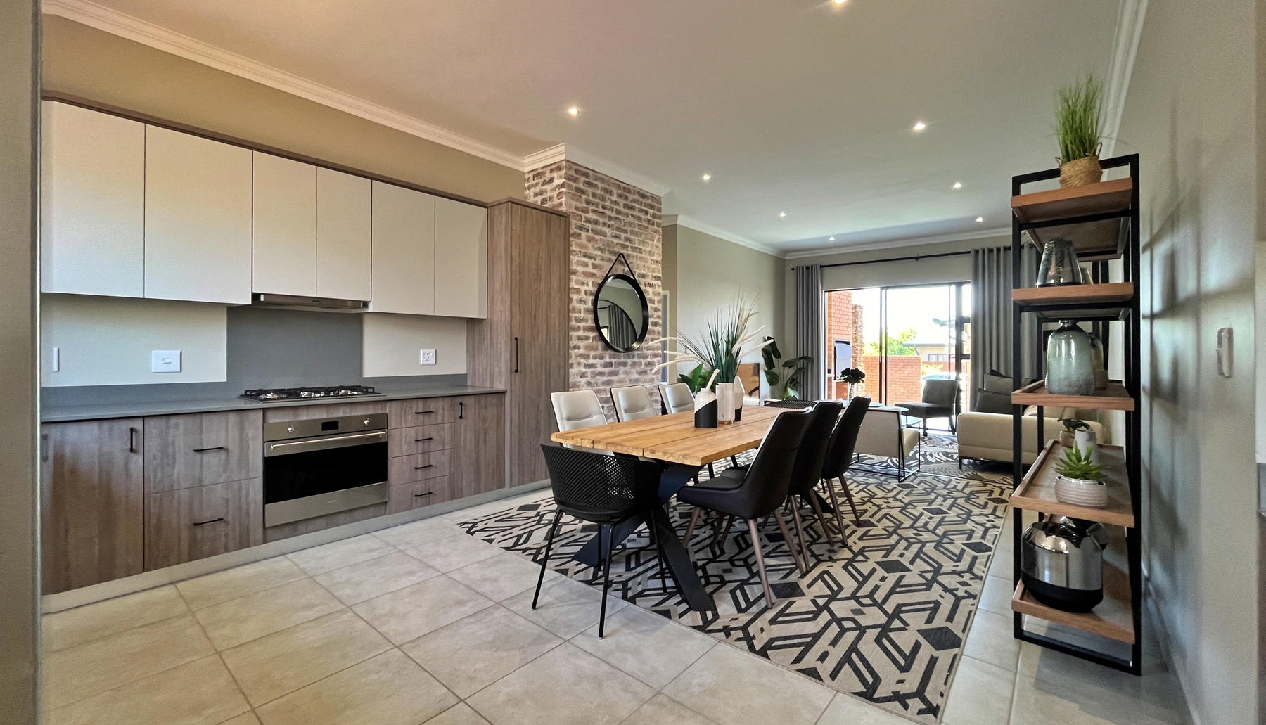 Step into a bright and airy living space featuring a modern, open-plan kitchen with quartz countertops and a gas hob.