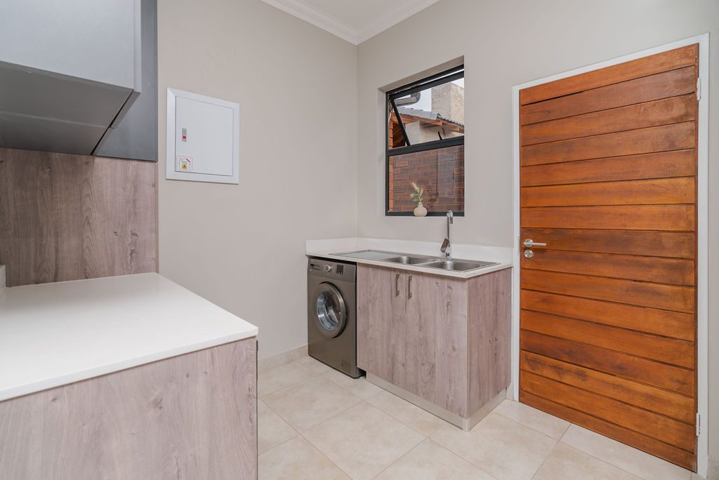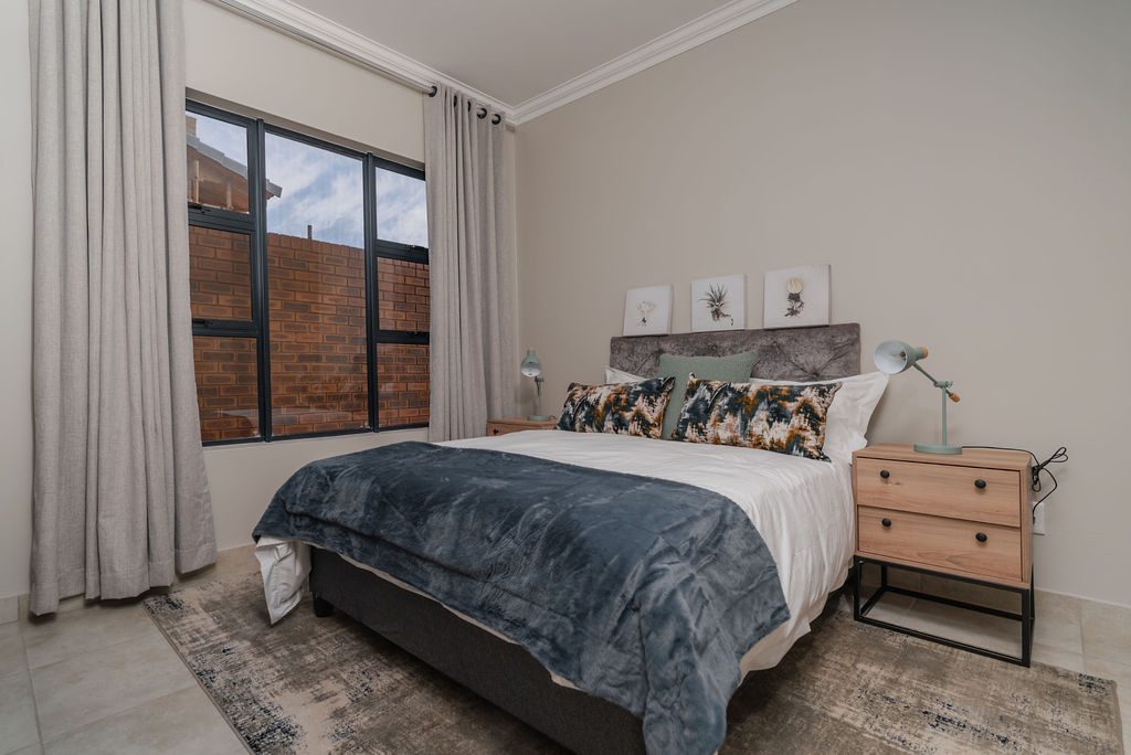 Stacking doors lead from the lounge onto a covered patio with built-in braai, overlooking your private garden. Whether it’s relaxed Sunday lunches or quiet evenings under the roofed patio, this is where memories are made.