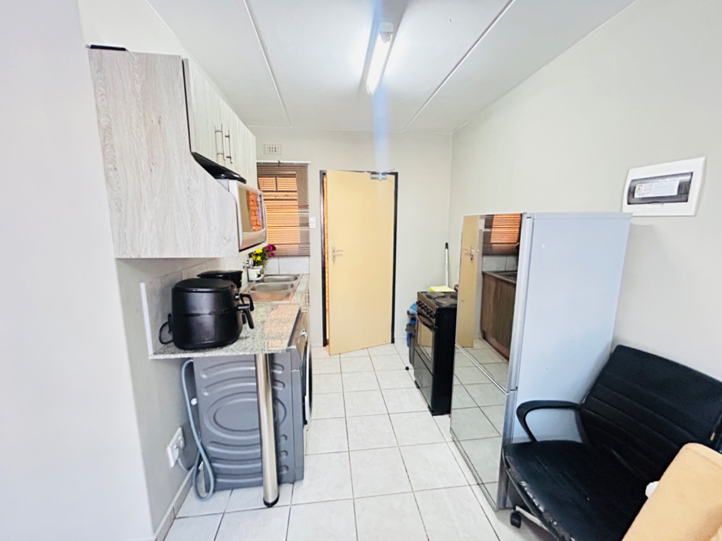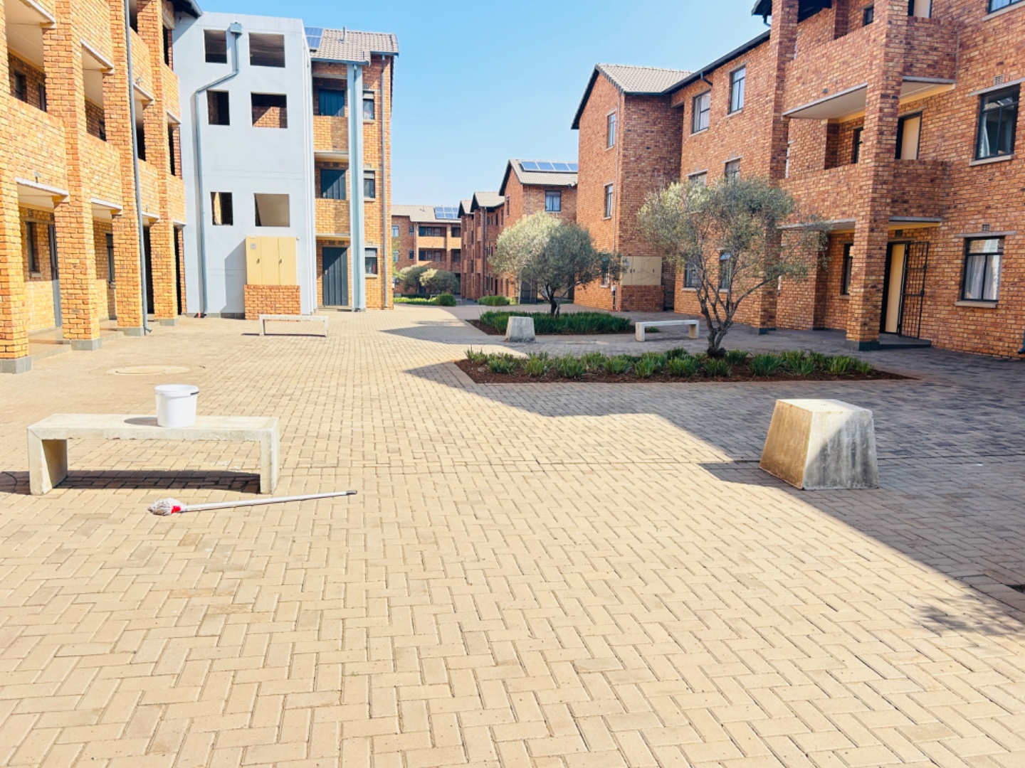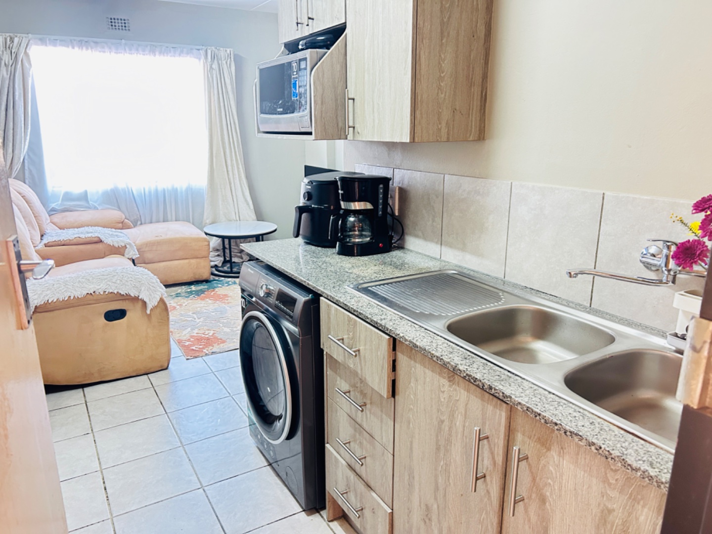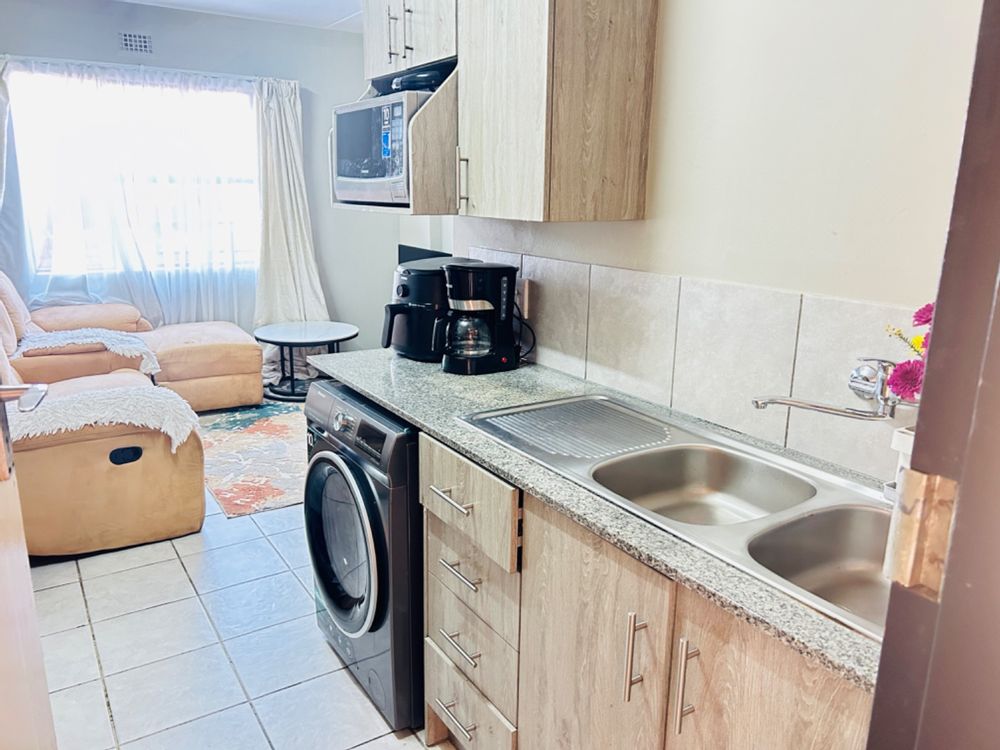 This unit offers an open-plan lounge and kitchen with fitted units, built-in wardrobes, and tiled finishes throughout.