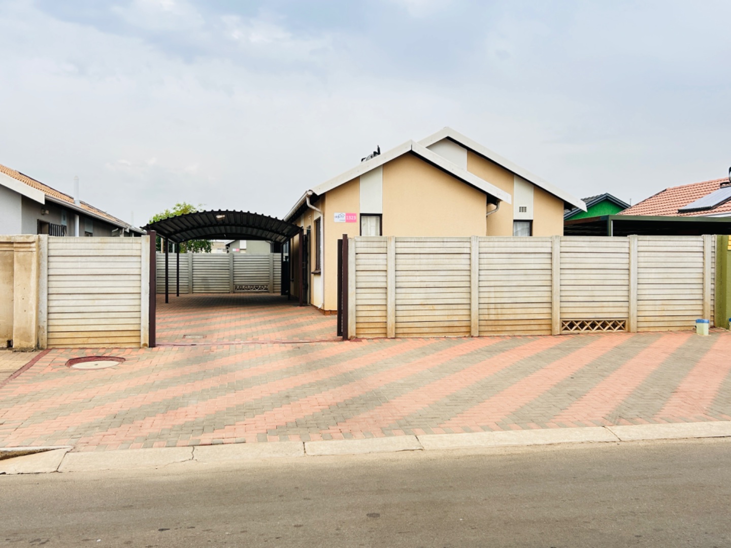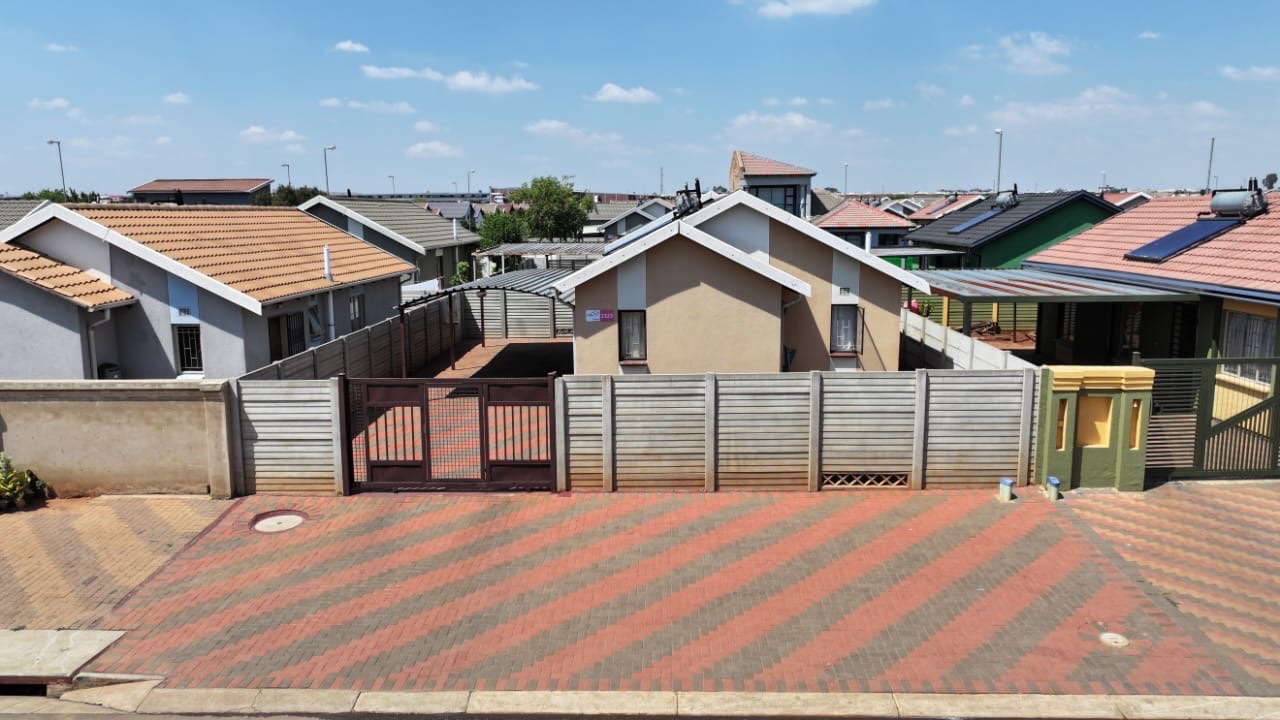 This spacious and charming 3-bedroom, 2-bathroom home in Sky City offers a modern suburban lifestyle at an unbeatable price. The free-standing 60m2 house sits on a 260m2 stand and is designed with comfort and convenience in mind, featuring prepaid electricity, fibre internet availability, and no deposit with a 100% bond application option. Buyers can enjoy immediate occupation, with the added benefit of combined applicants being accepted. The property comes equipped with desirable features such as a conventional roof, solar geyser, roof insulation, tiled floors, burglar bars, security doors, and a sliding vehicle gate. The kitchen includes a built in kitchen units,double sink unit, stove with hob, and a washing machine point, while the bathrooms feature a sleek glass shower for a modern touch.