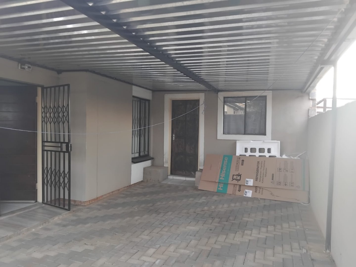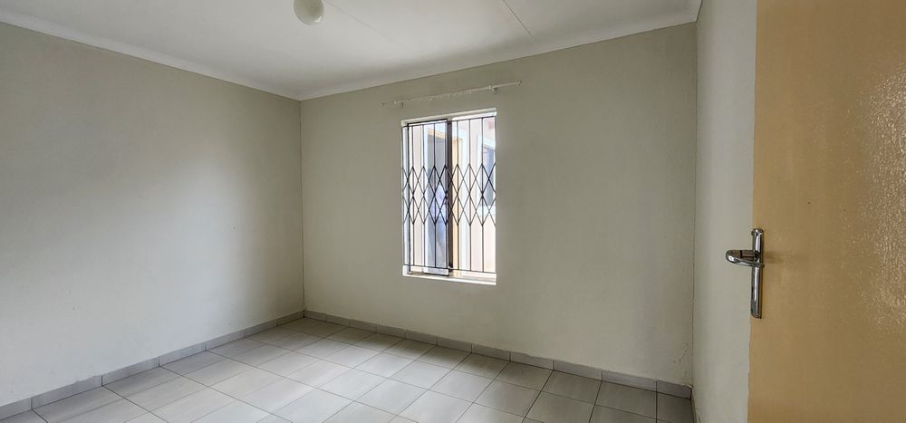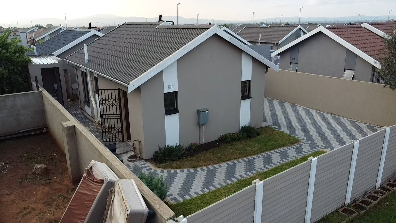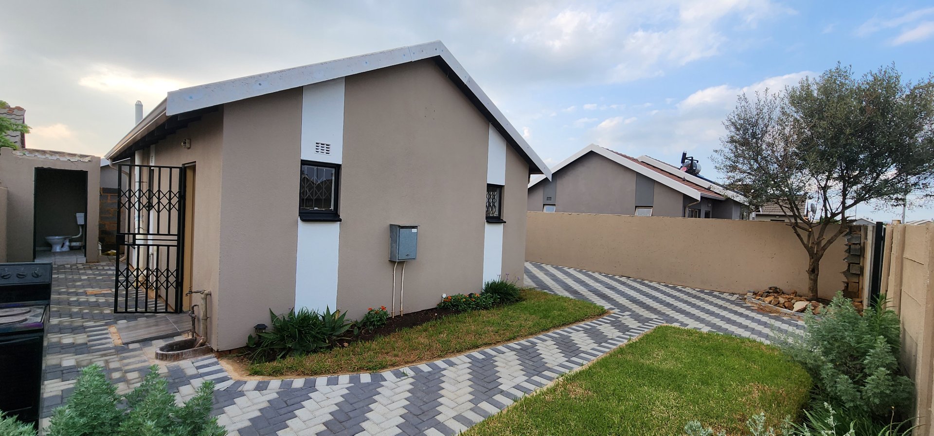 This modern freestanding home boasts a decent land size of 180m2, with private walled pet friendly gardens. Upon entry, you are welcomed by a spacious open plan lounge and kitchen, from the attractive lounge entrance to the bedrooms, this house offers you a comfortable living, a lifestyle of peace and tranquillity. There is nice cozy backroom attached to the main house making it a magnifiscent 3bedroom house. There is also a spacious outside bathroom awaiting esteemed guests. This sunshiny home awaits a buyer that is inquisitive about what makes Sky City the ultimate Alberton address.