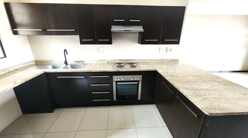 This stylish 2-bedroom flat offers 75 m2 of modern, open-plan living in a secure, well-maintained complex. The unit features a contemporary kitchen with granite countertops, under-counter oven, hob, extractor, and washing machine connection. A breakfast nook and spacious lounge create a comfortable, functional living space.