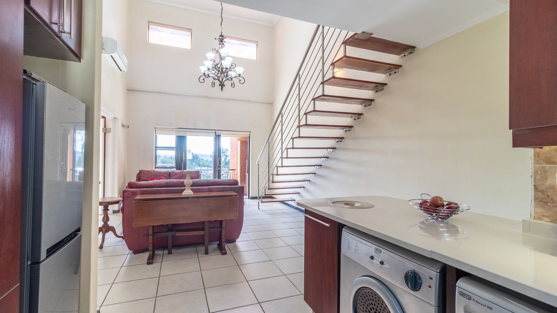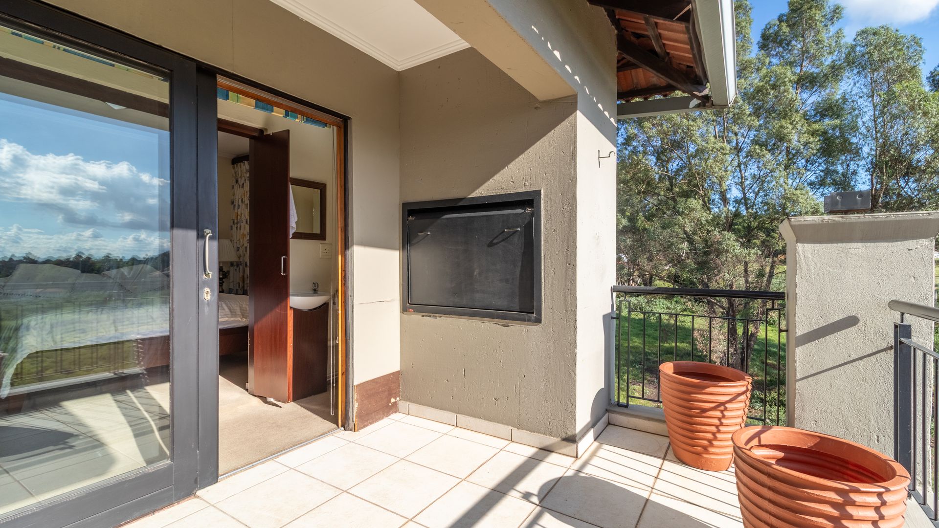 Discover an inviting loft area that serves as a lounge. This space leads to an additional bedroom complete with a private toilet and basin, making it perfect for guests. The loft opens up to another balcony featuring a built-in braai, perfect for outdoor gatherings. The bedroom upstairs includes cozy underfloor heating and plush carpeting for ultimate comfort.